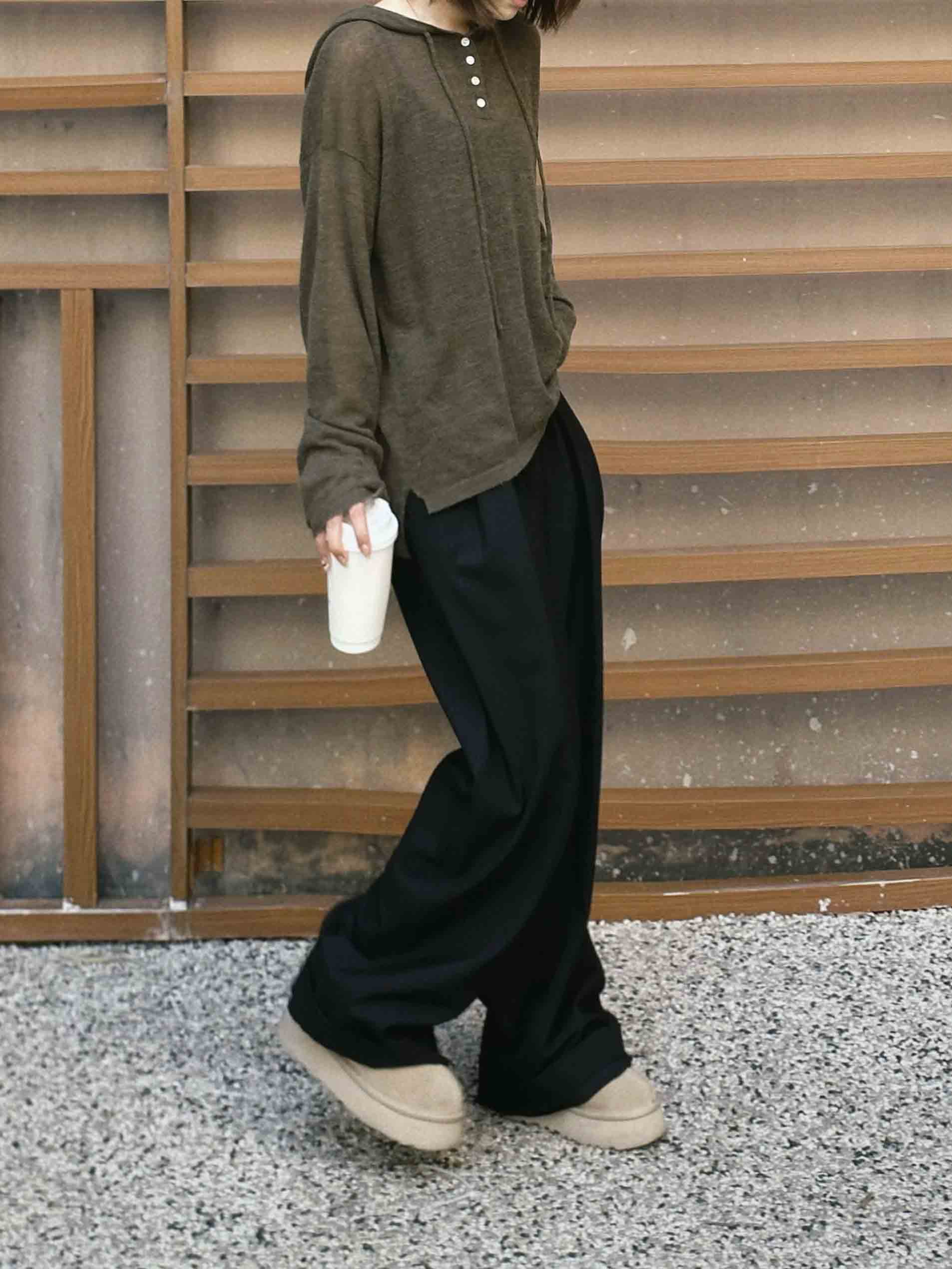 看看那些懂得穿衣技巧的女士就会发现,小个子尤其爱这种长度及地的阔腿裤。