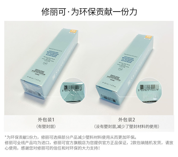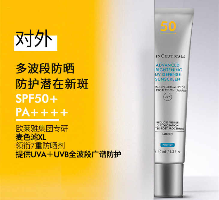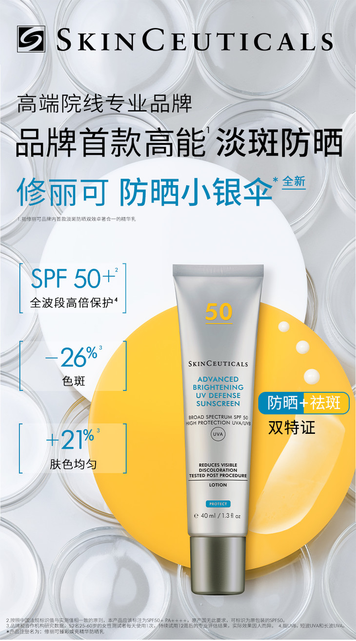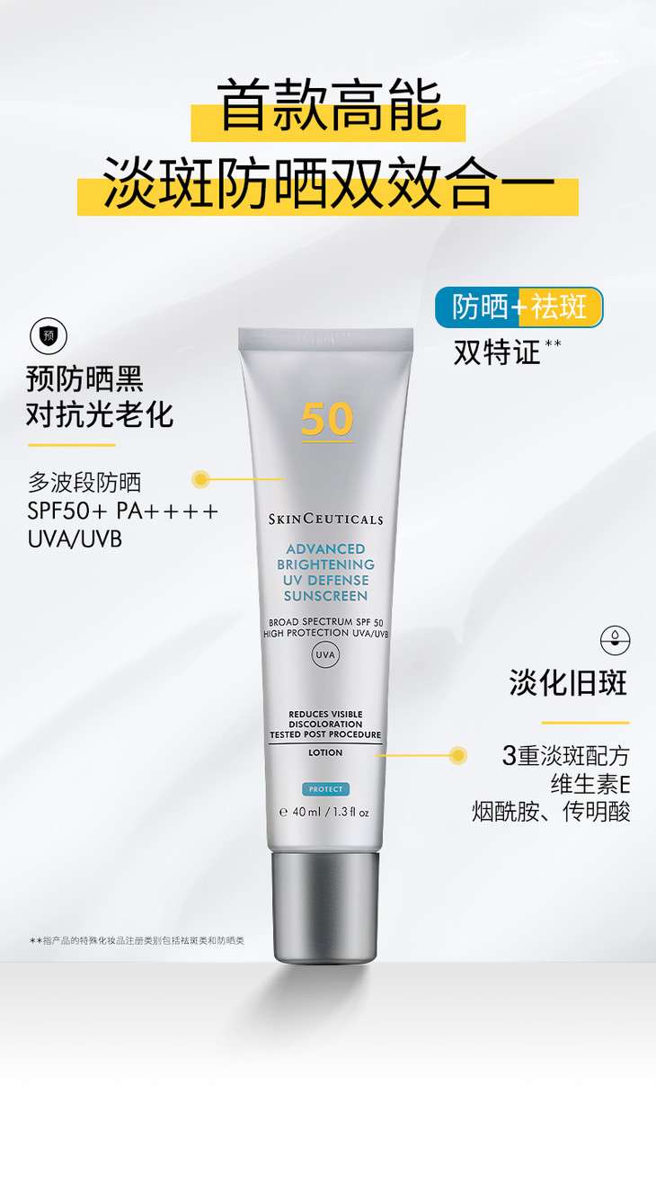 【官方防伪】Skinceuticals 修丽可 小银伞防晒乳霜 40ml SPF50+ 美白淡斑清爽焕亮双效加强焕彩亮白日光防护