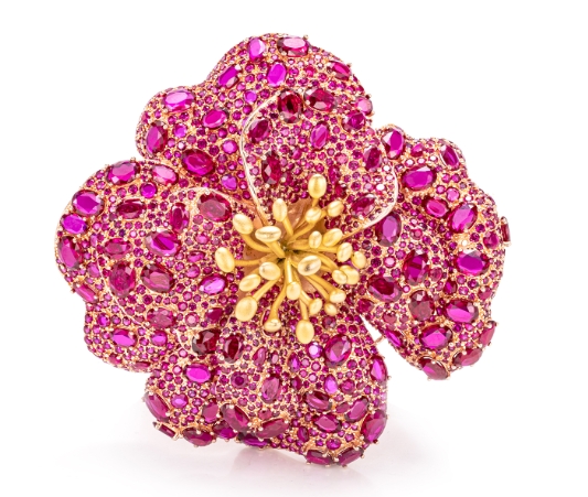 GAONAS高纳仕 新中式国风华贵气质红色牡丹花胸针