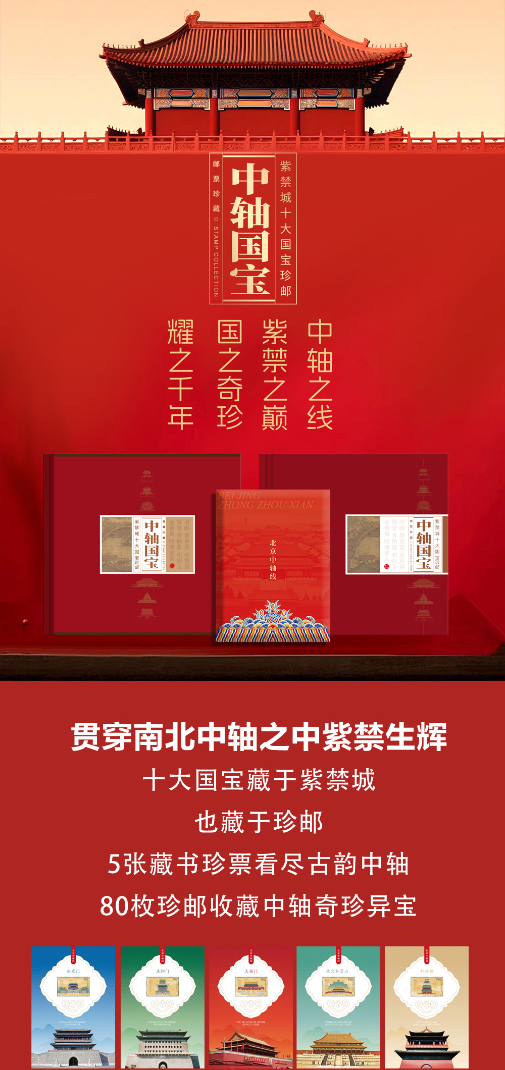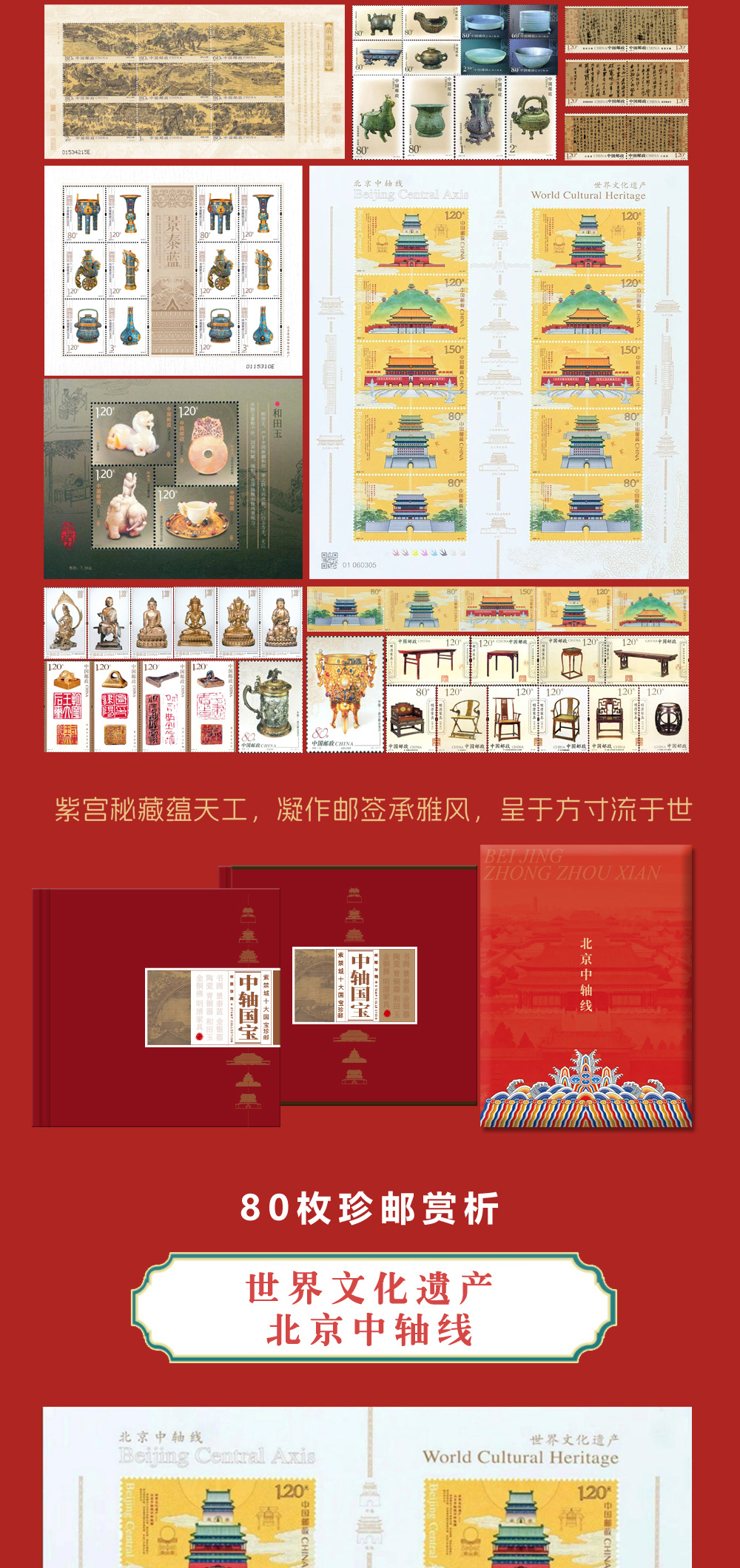 《中轴国宝》紫禁城十大国宝珍邮册,珍邮册首发 80枚绝版邮票+AR黑科技,把7.8公里中轴线捧回家!