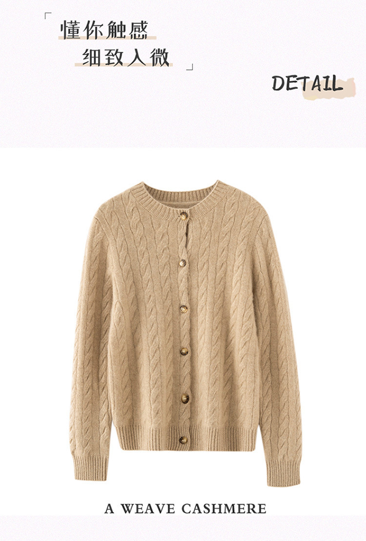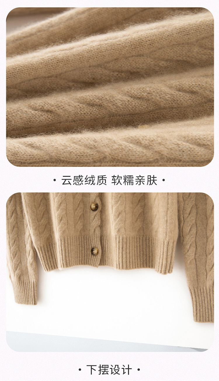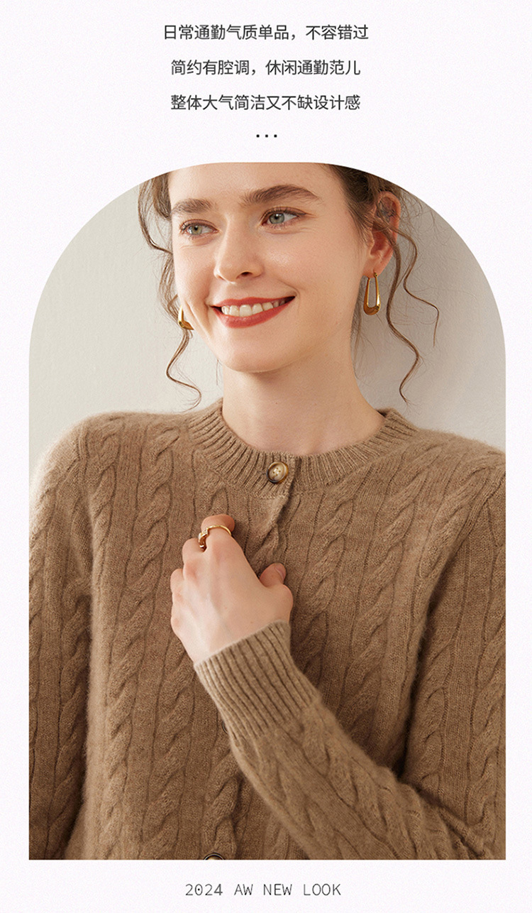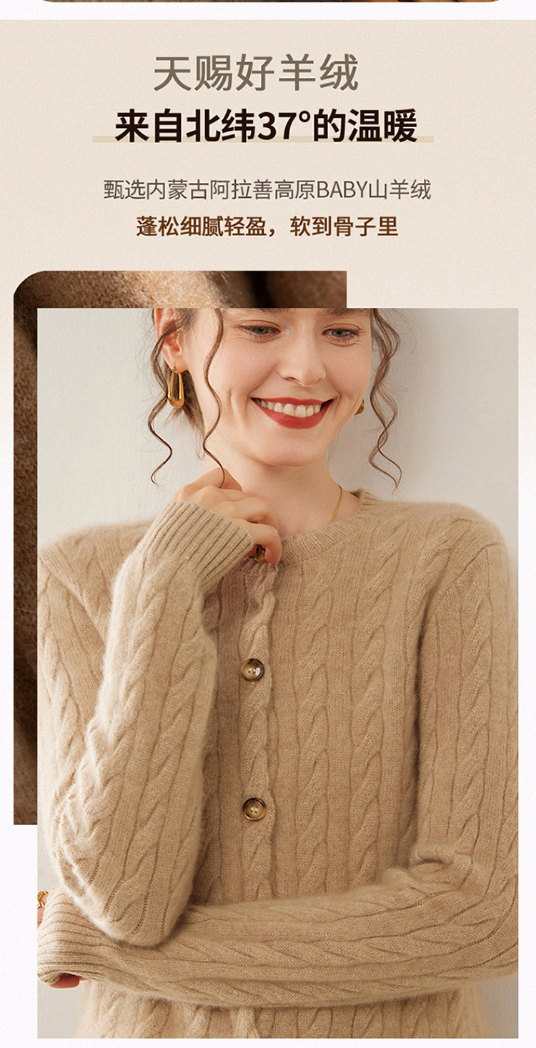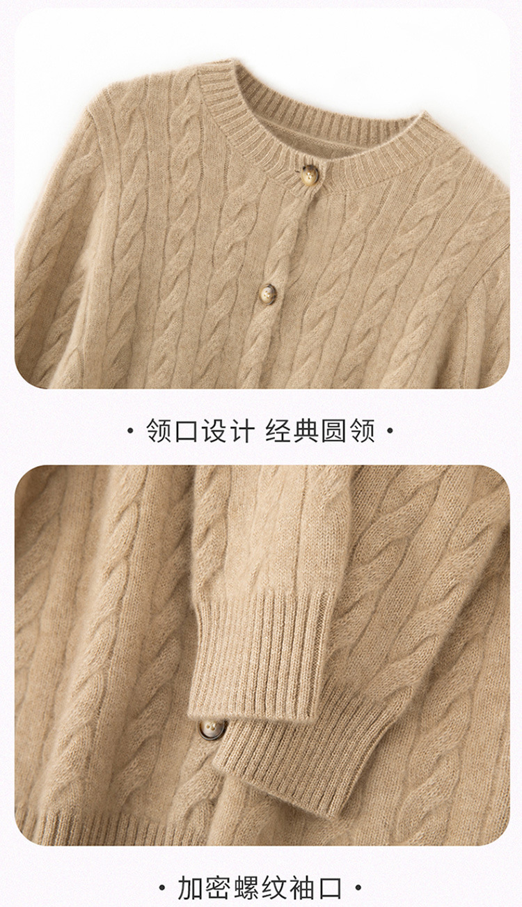 【自】全新升级【铂金会员441/天猫589/差价148】(82500) 洛诗琳秋冬新款山羊绒加厚针织开衫女长袖宽松百搭绞花外套