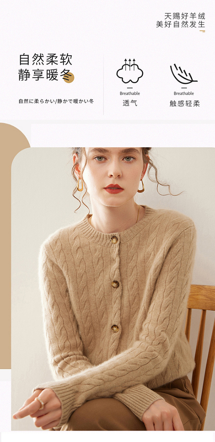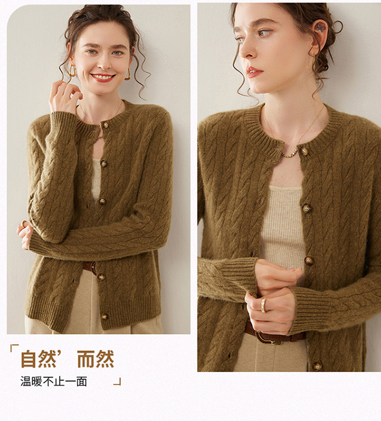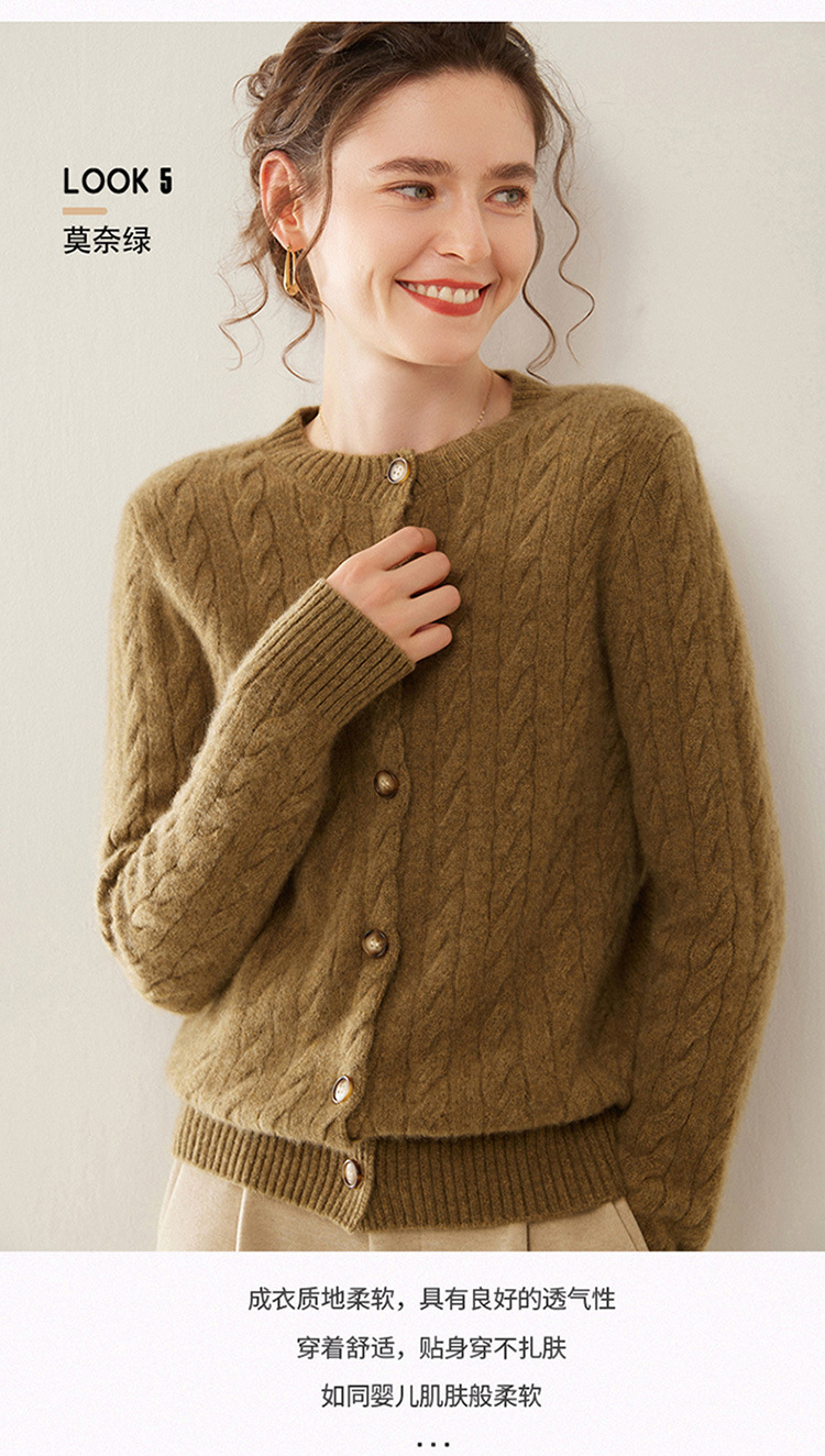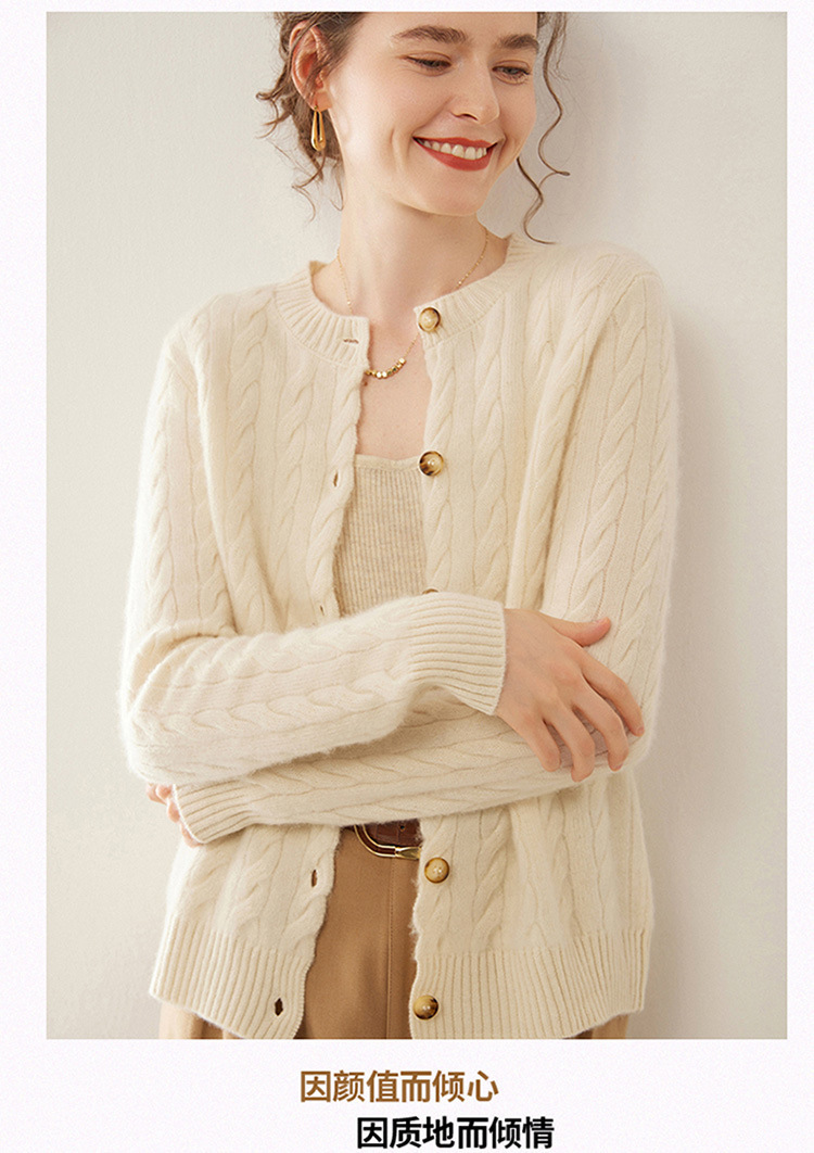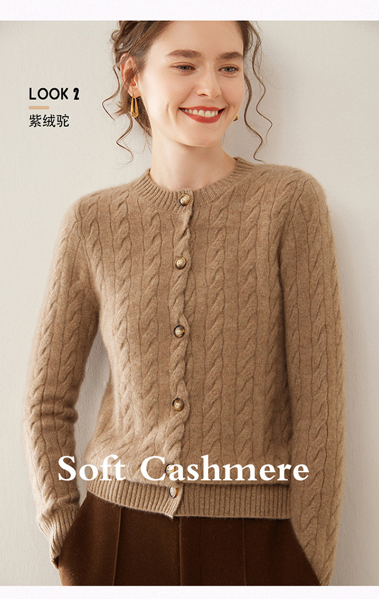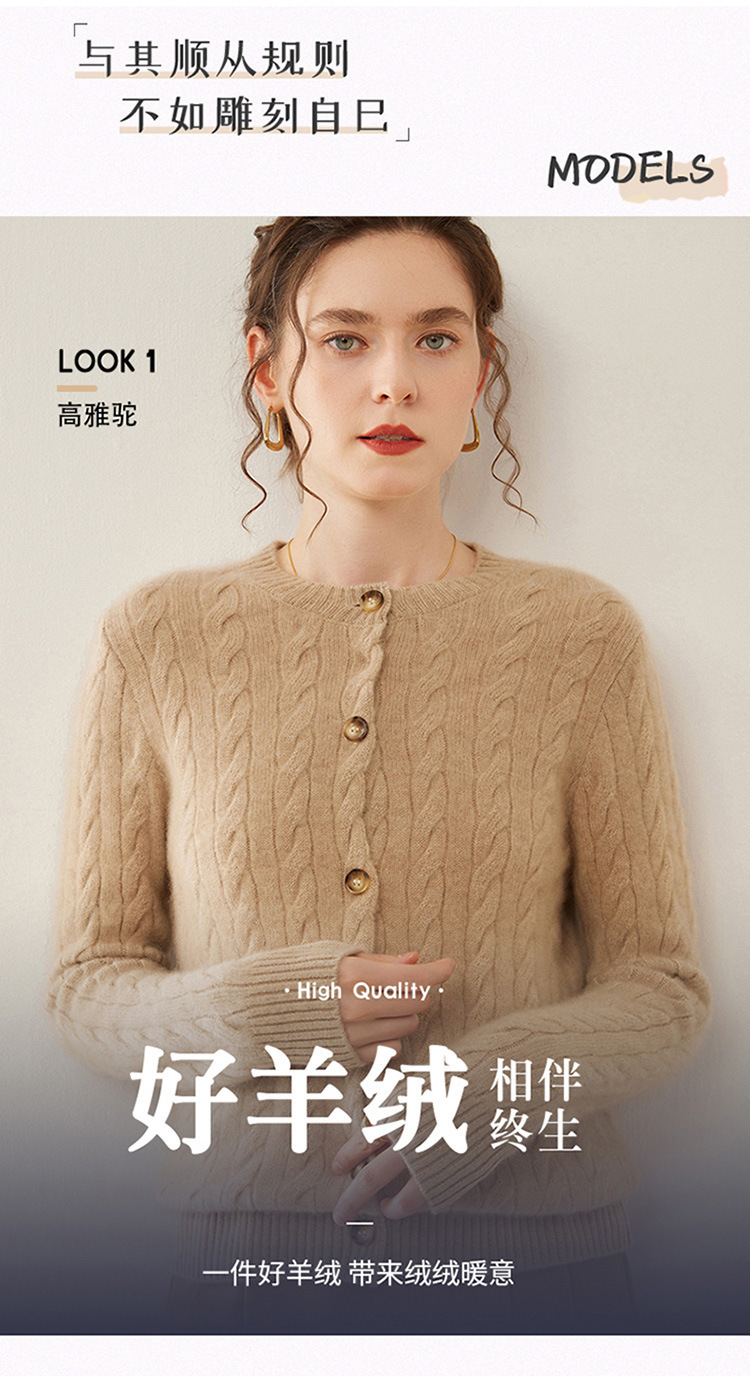 【自】全新升级【铂金会员441/天猫589/差价148】(82500) 洛诗琳秋冬新款山羊绒加厚针织开衫女长袖宽松百搭绞花外套