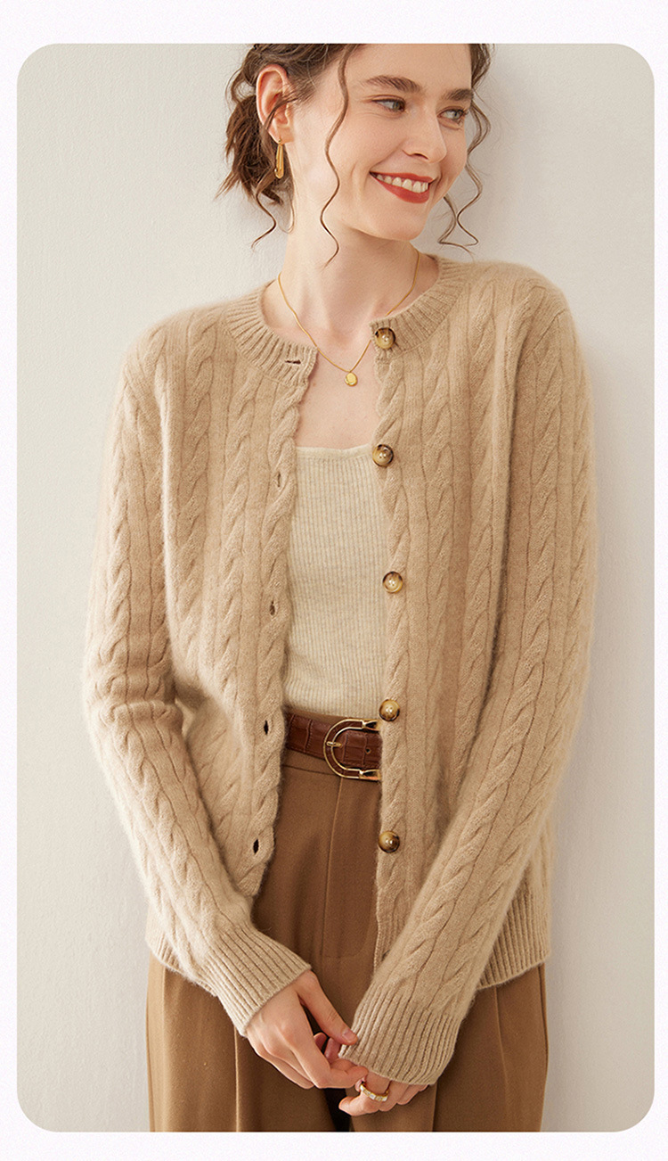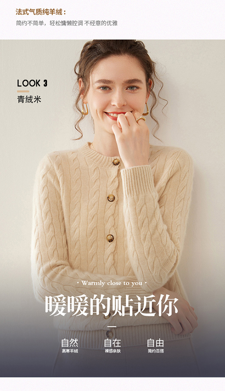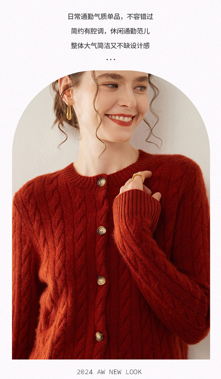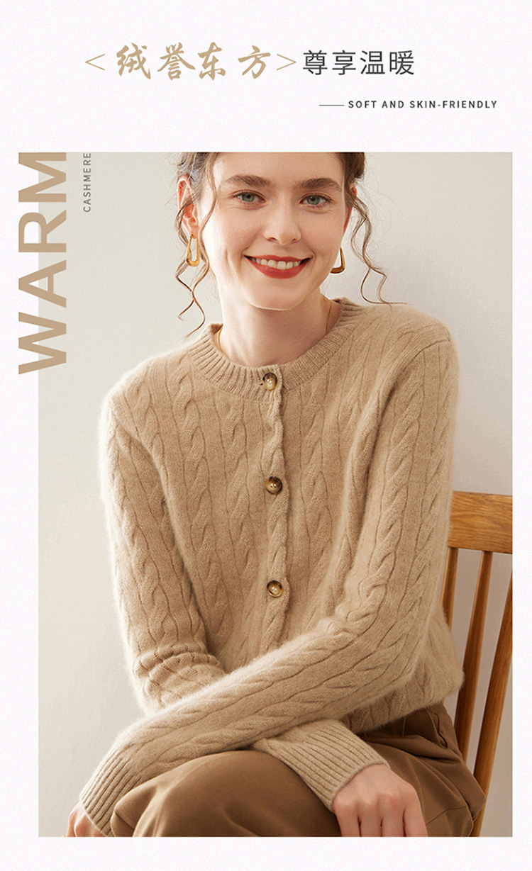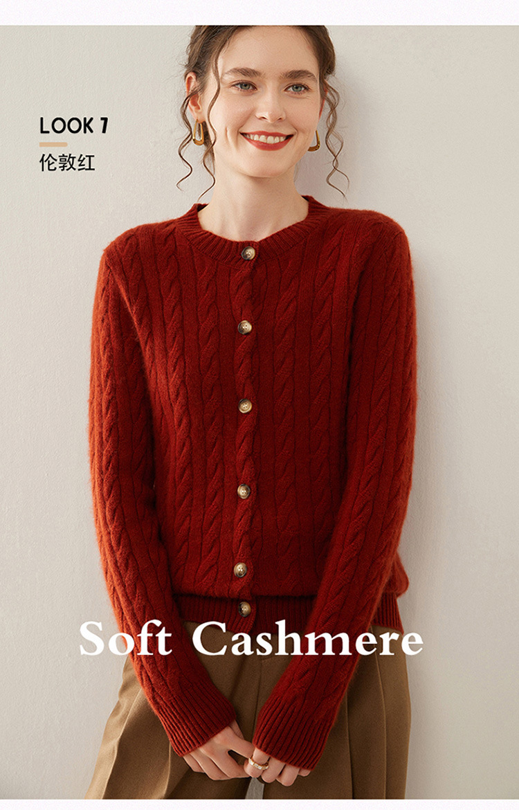 【自】全新升级【铂金会员441/天猫589/差价148】(82500) 洛诗琳秋冬新款山羊绒加厚针织开衫女长袖宽松百搭绞花外套