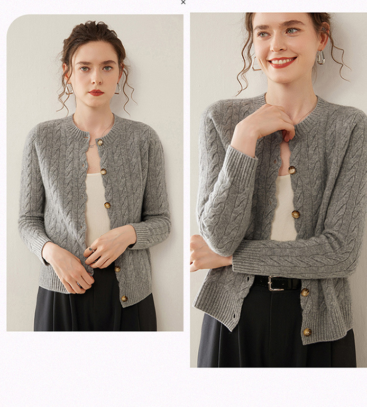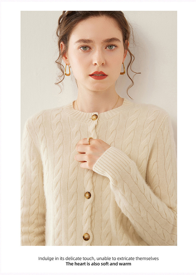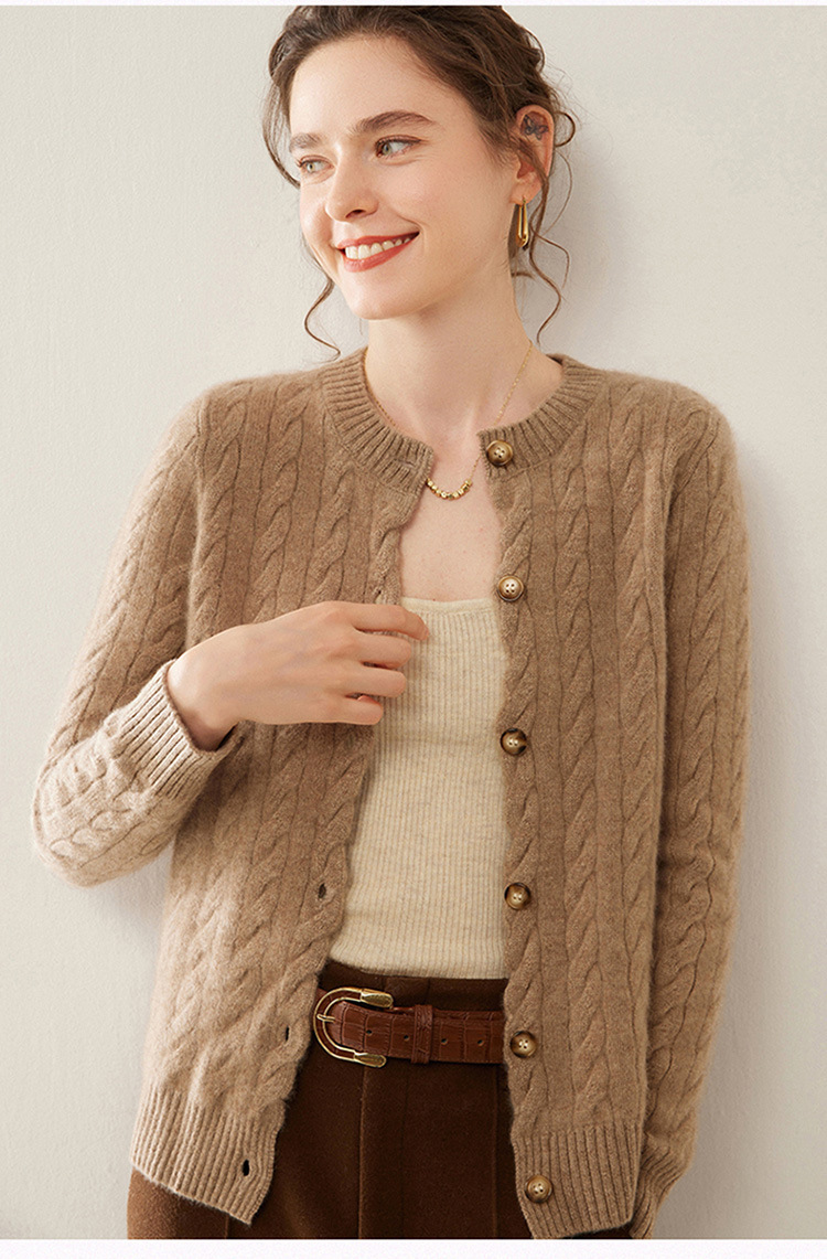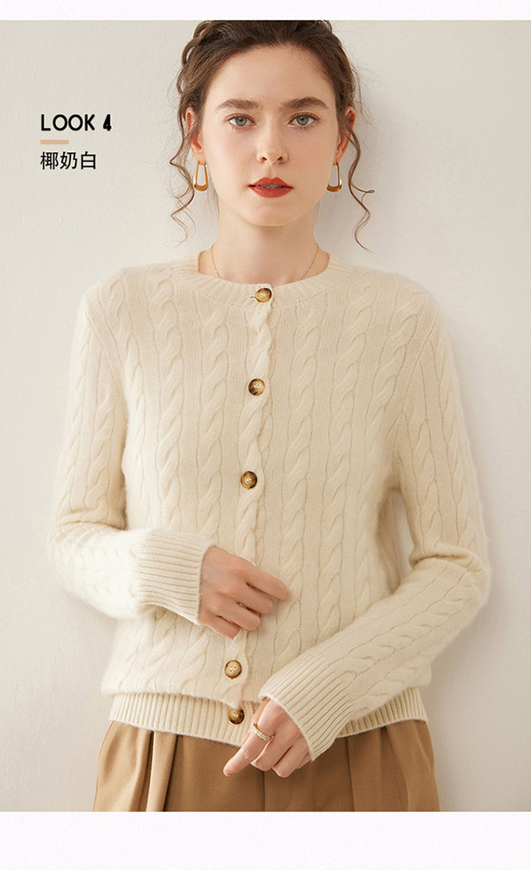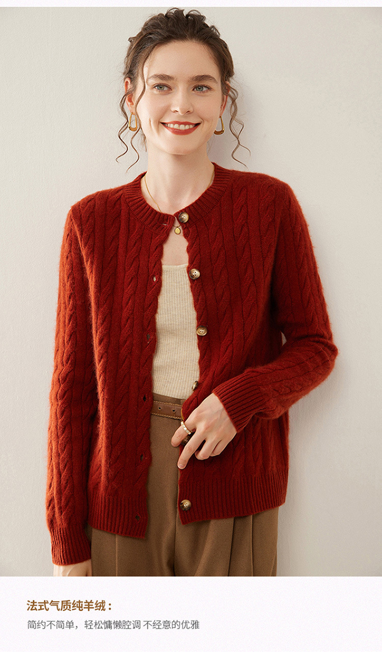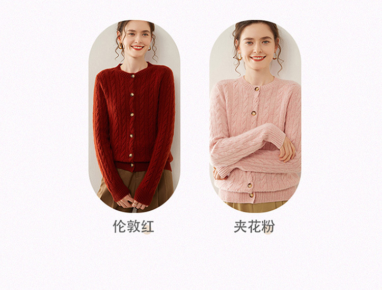 【自】全新升级【铂金会员441/天猫589/差价148】(82500) 洛诗琳秋冬新款山羊绒加厚针织开衫女长袖宽松百搭绞花外套