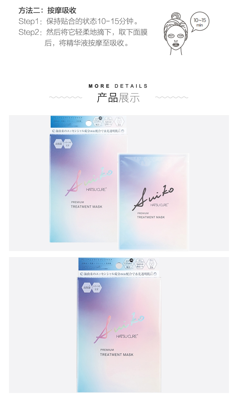 SUIKO HATSU CURE 水光启舒臻贵滋养面膜3枚入