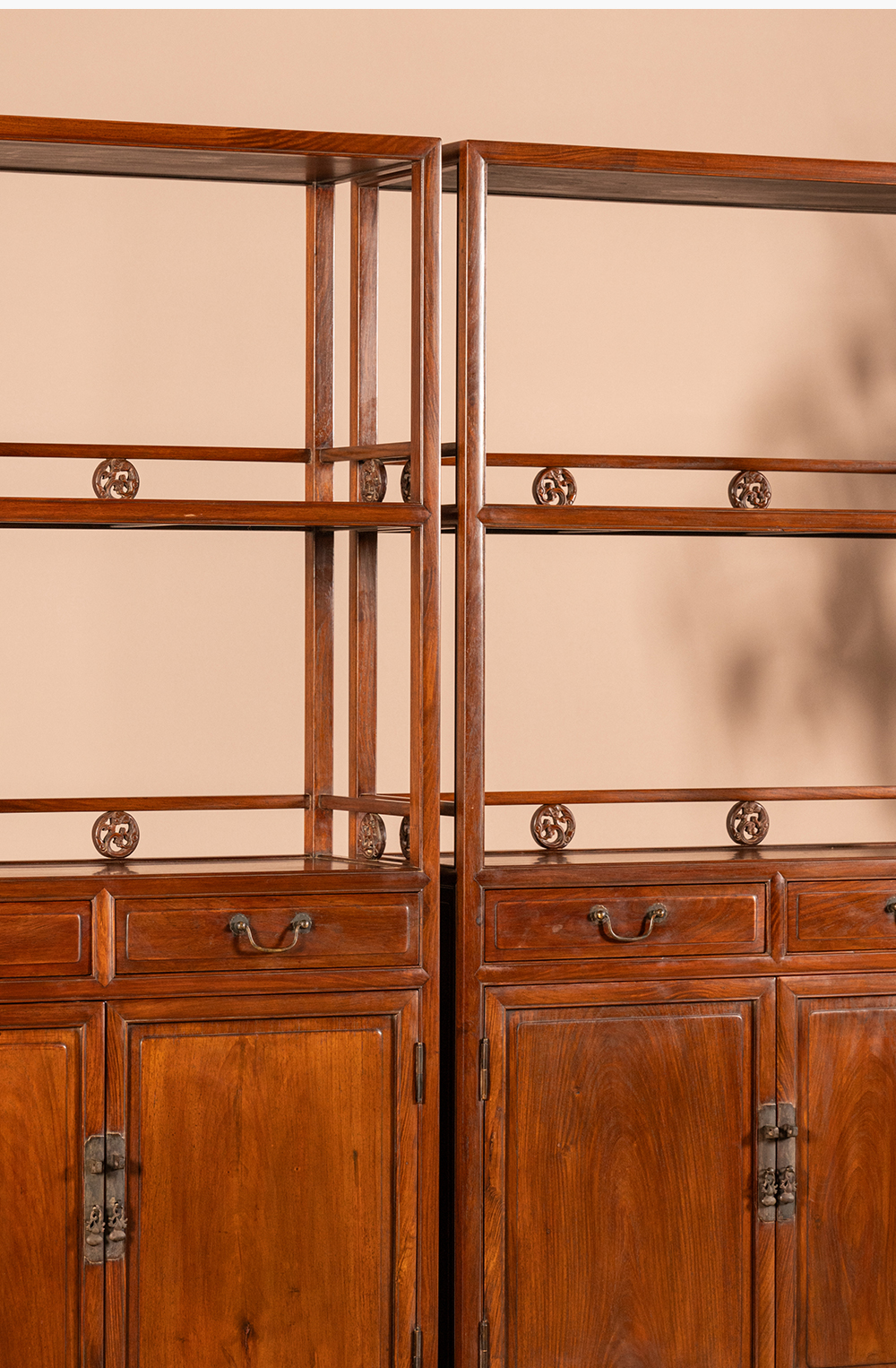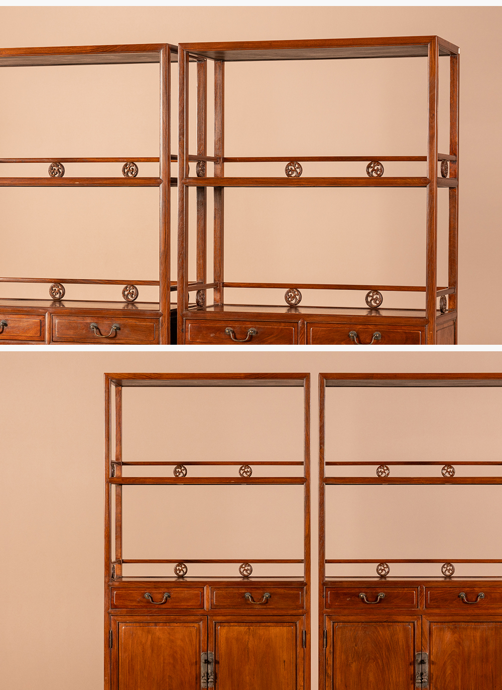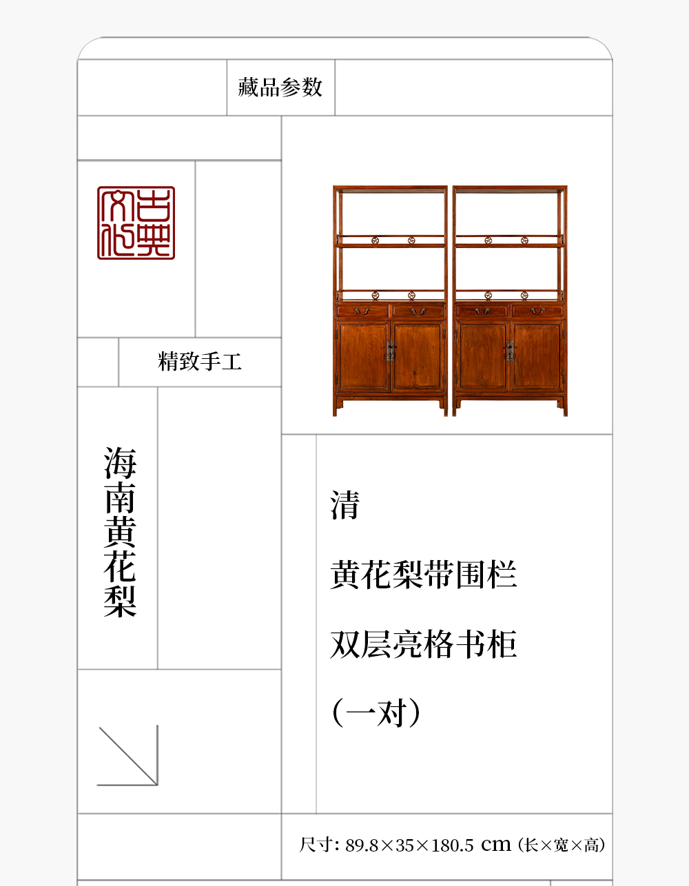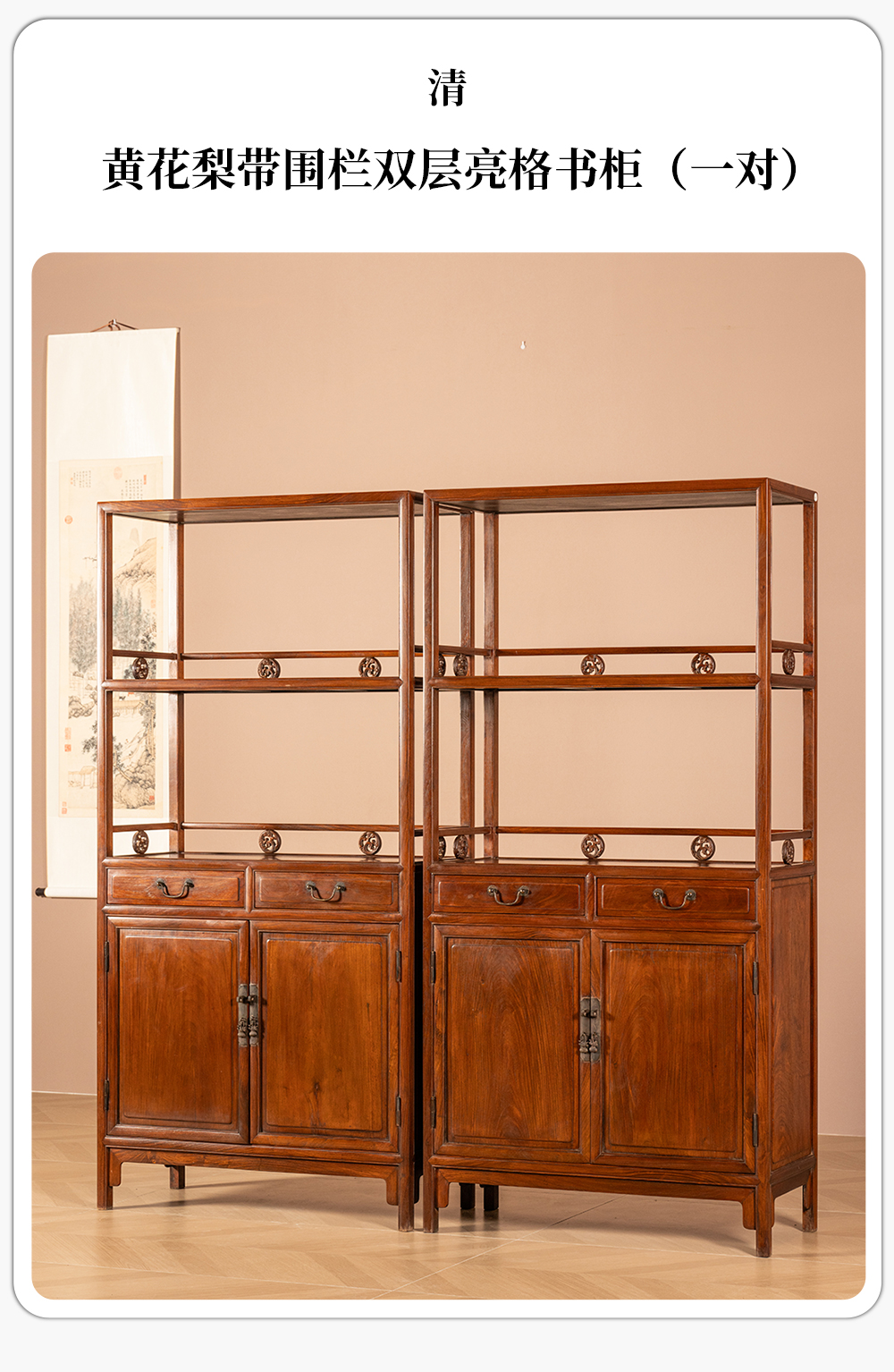 清 黄花梨带围栏双层亮格书柜(一对)