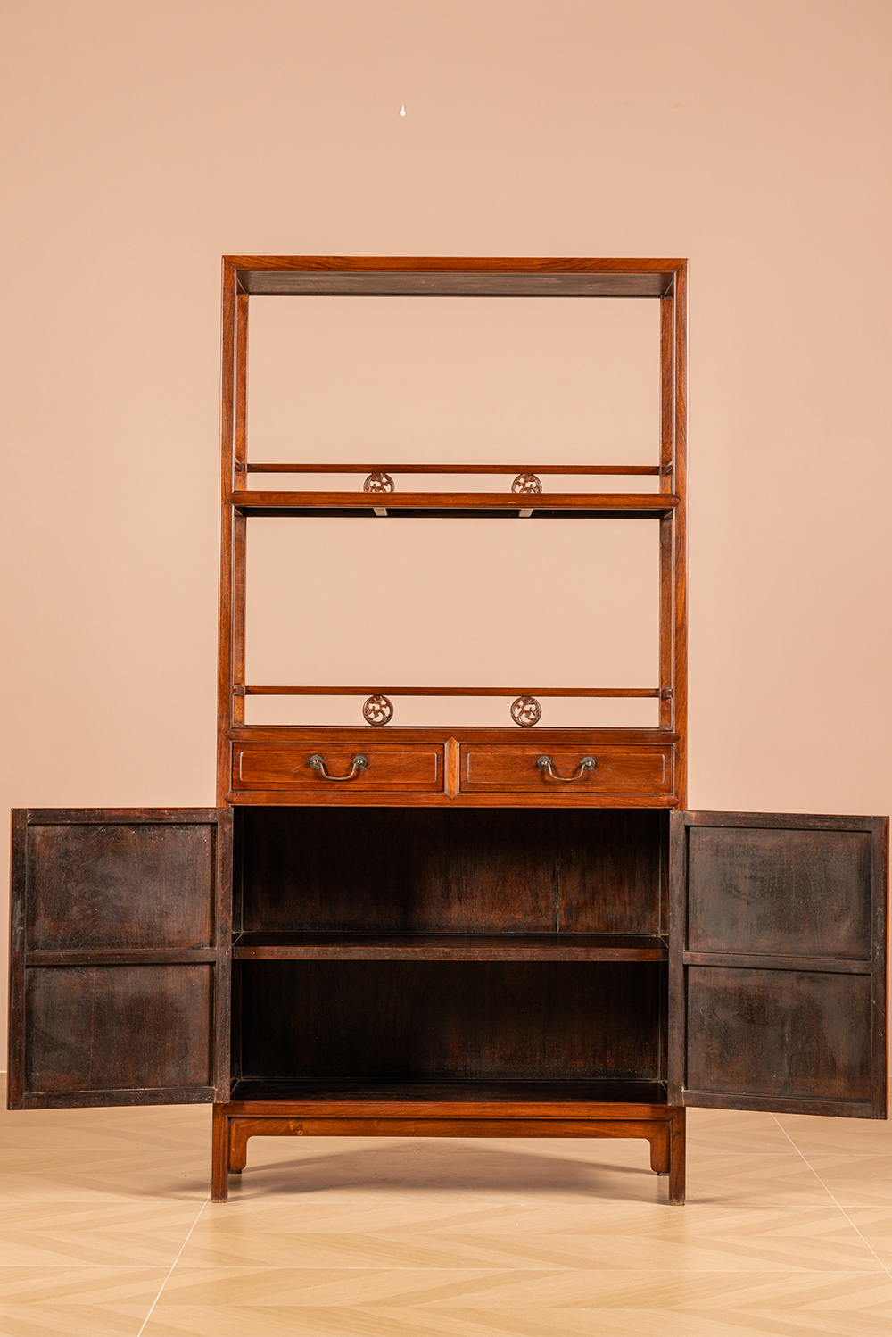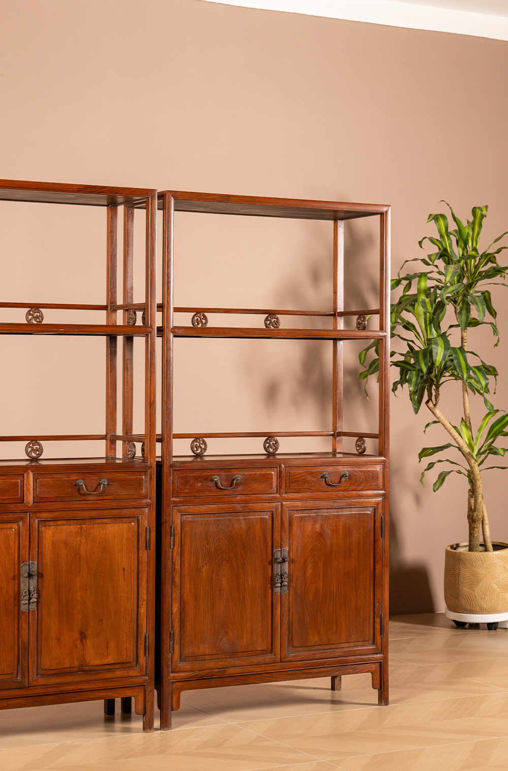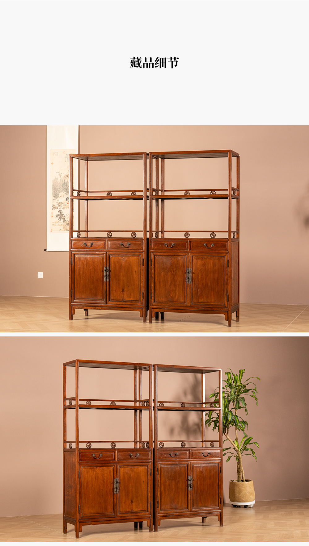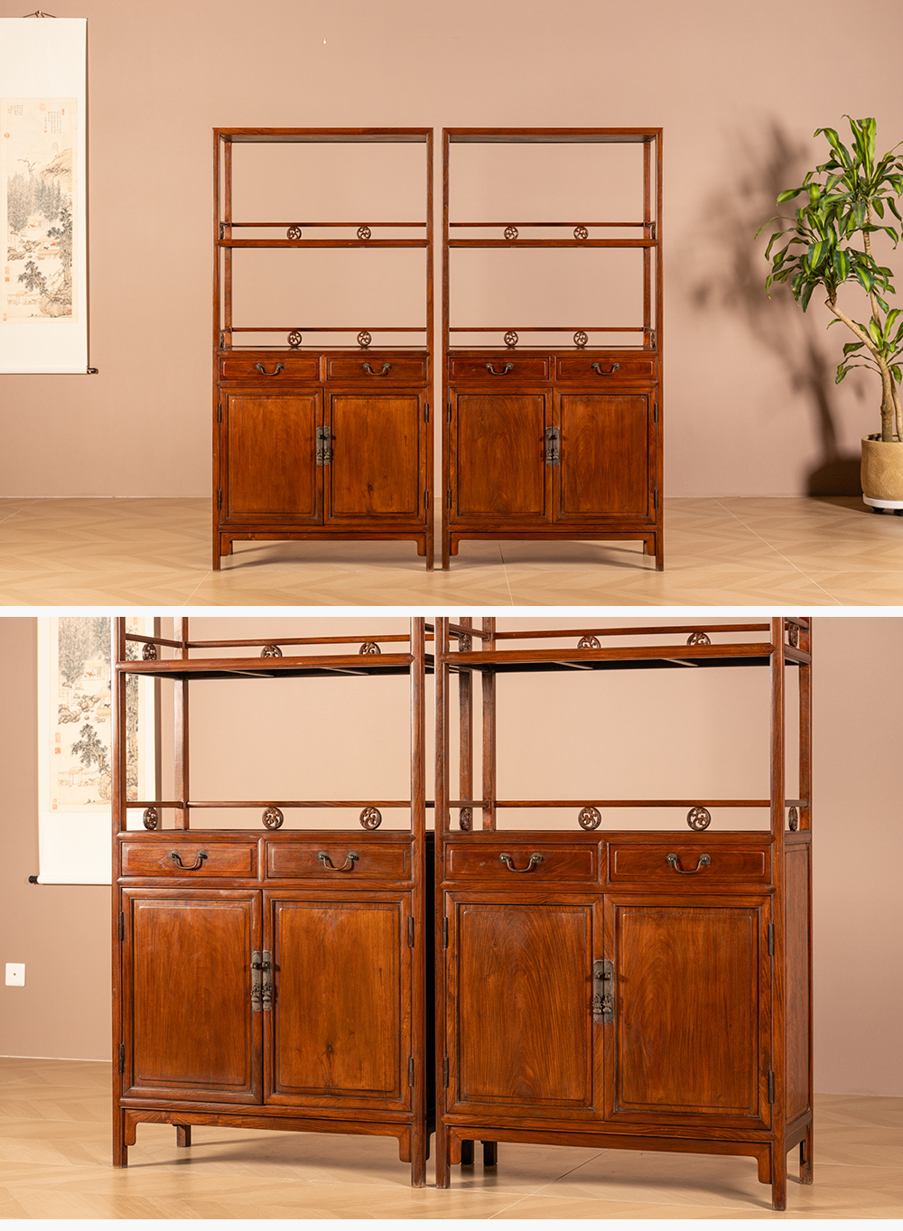 清 黄花梨带围栏双层亮格书柜(一对)