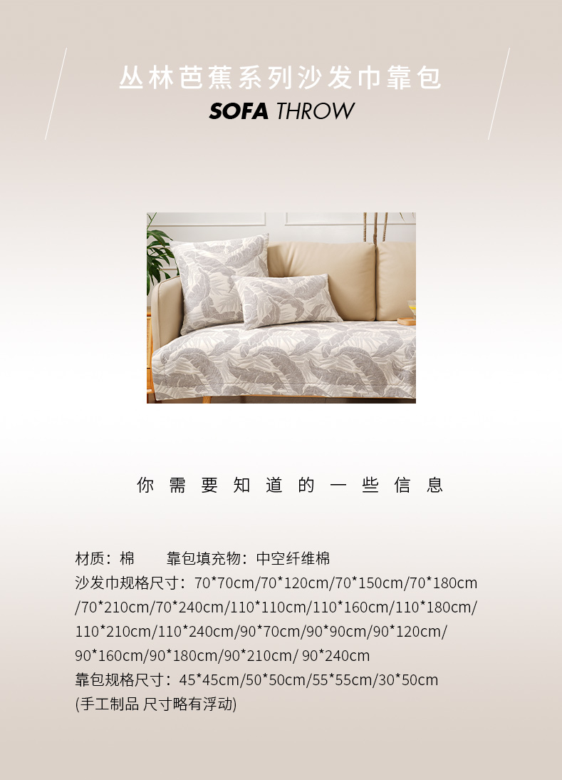 丛林芭蕉系列沙发巾靠包棉四季通用高端轻奢防滑高级感高档靠包定制