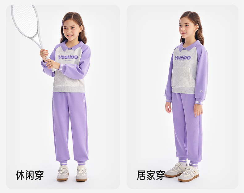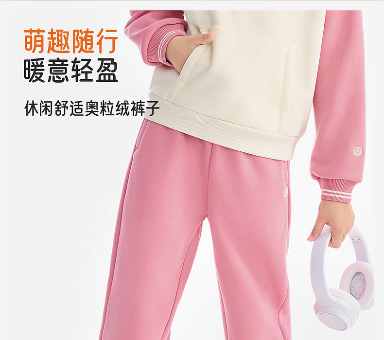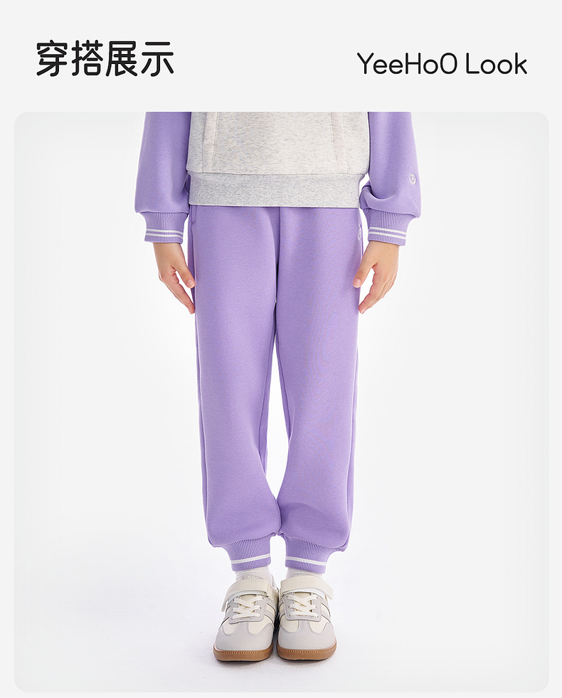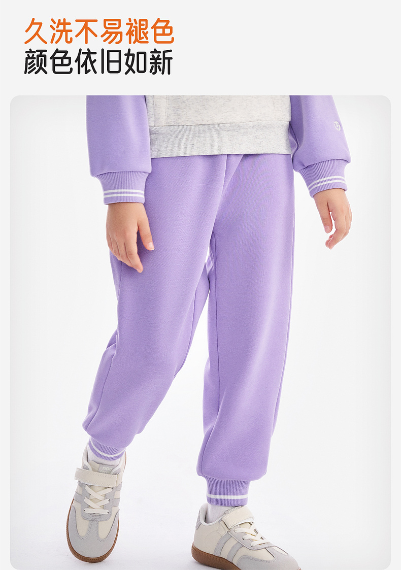 英氏儿童长裤女童针织长裤秋冬保暖加绒裤子中童纯色百搭外出