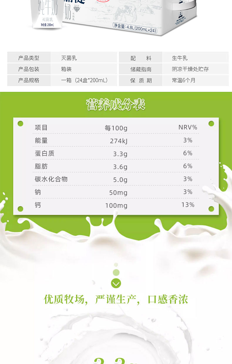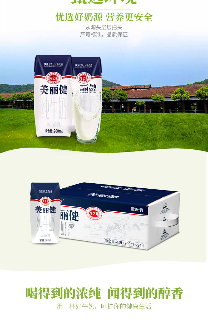 【快递直达】美丽健纯之道钻石包纯牛奶200ml*24盒