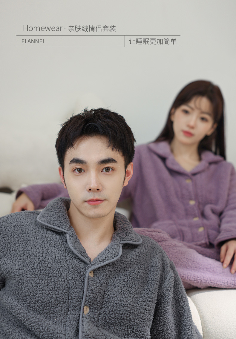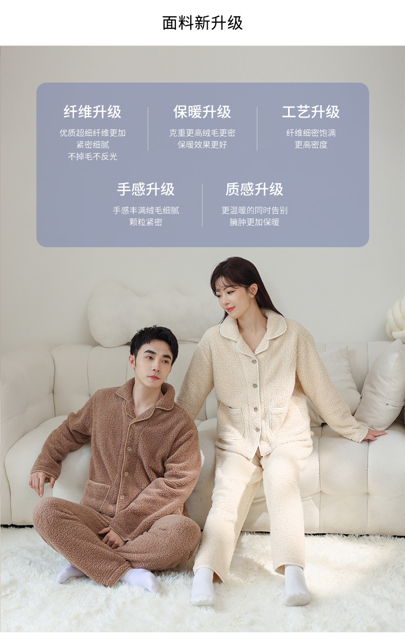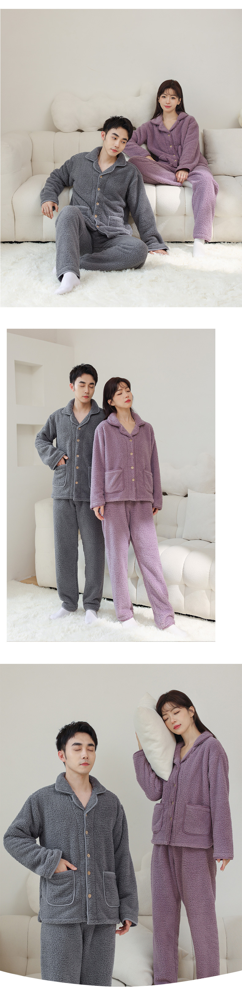 雀说 睡衣双面绒翻领男女款加厚珊瑚绒保暖家居服3Z22
