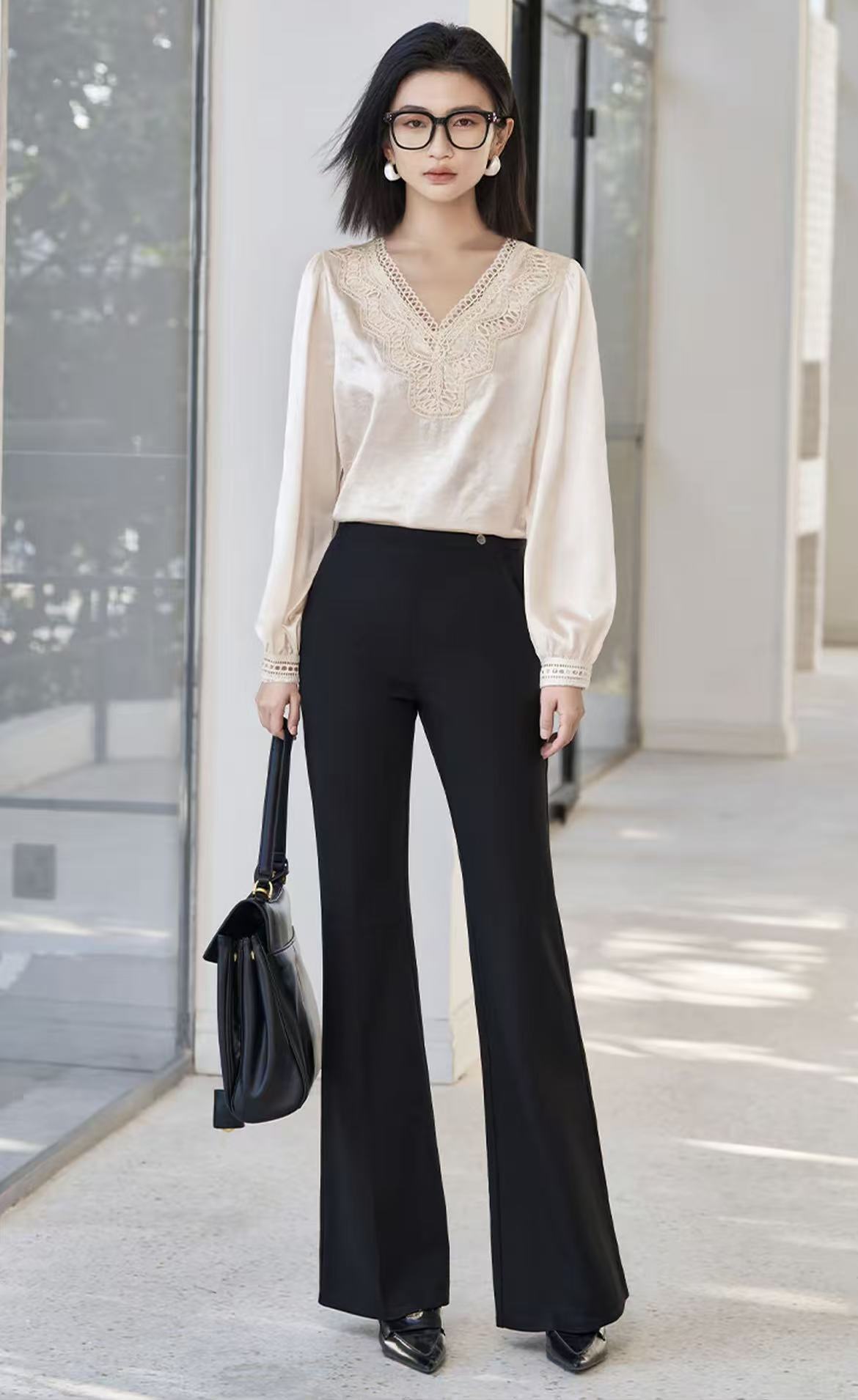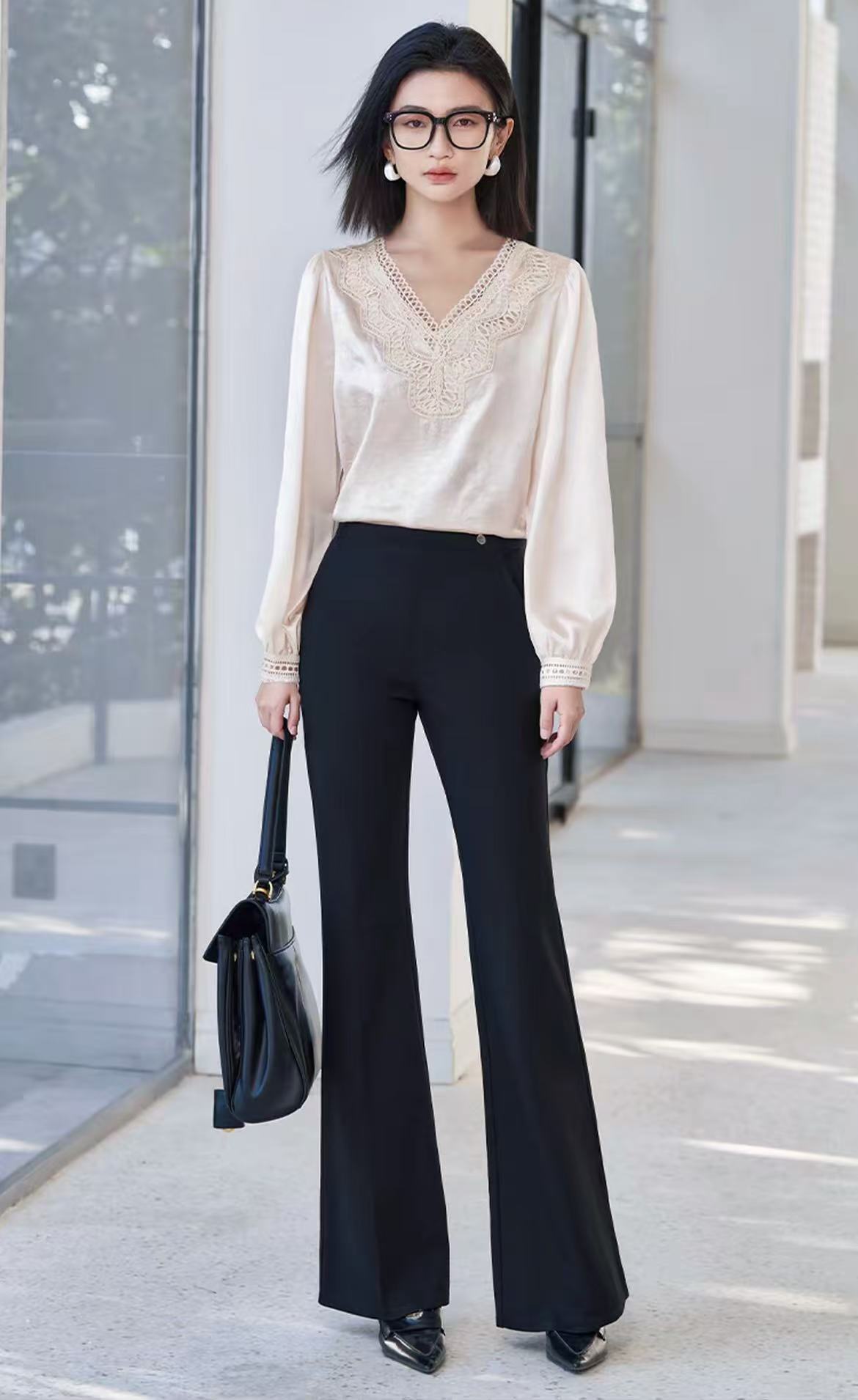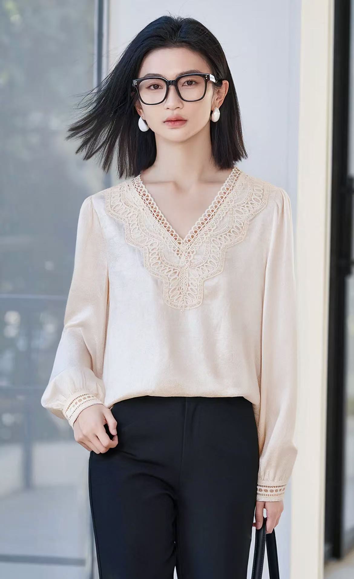 手工钉珠【秋上新】2636丝滑光泽顺滑手抓纹缎面长袖衫-喜出
