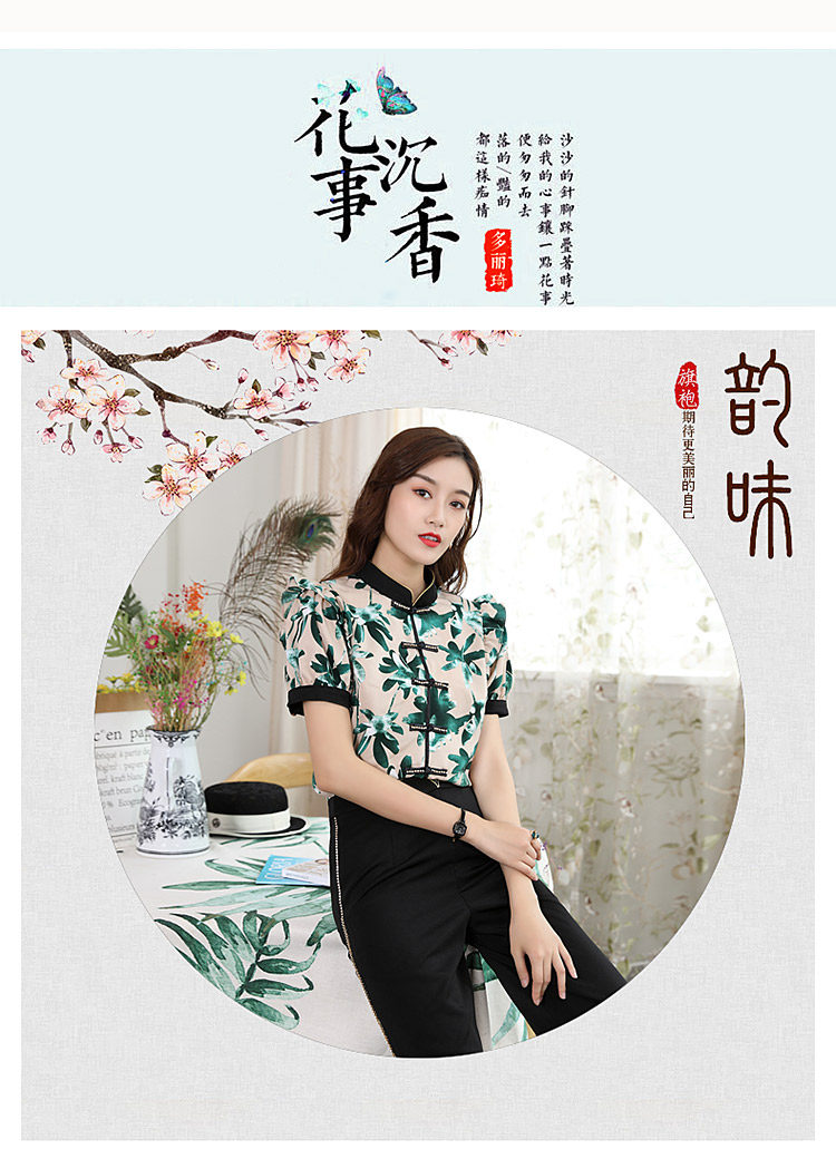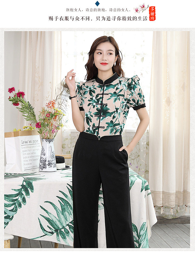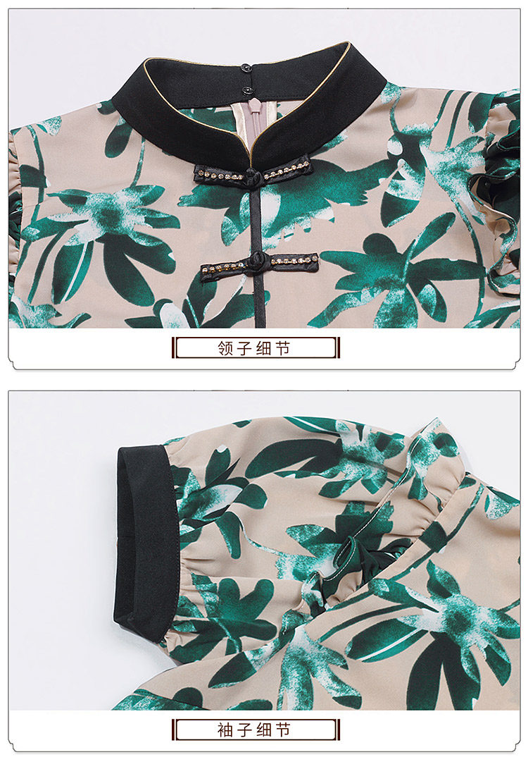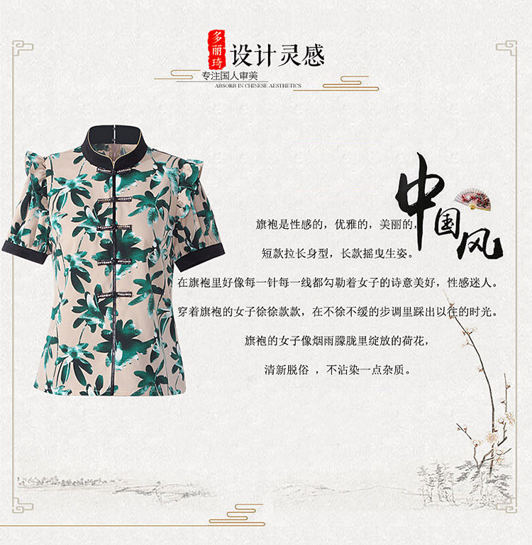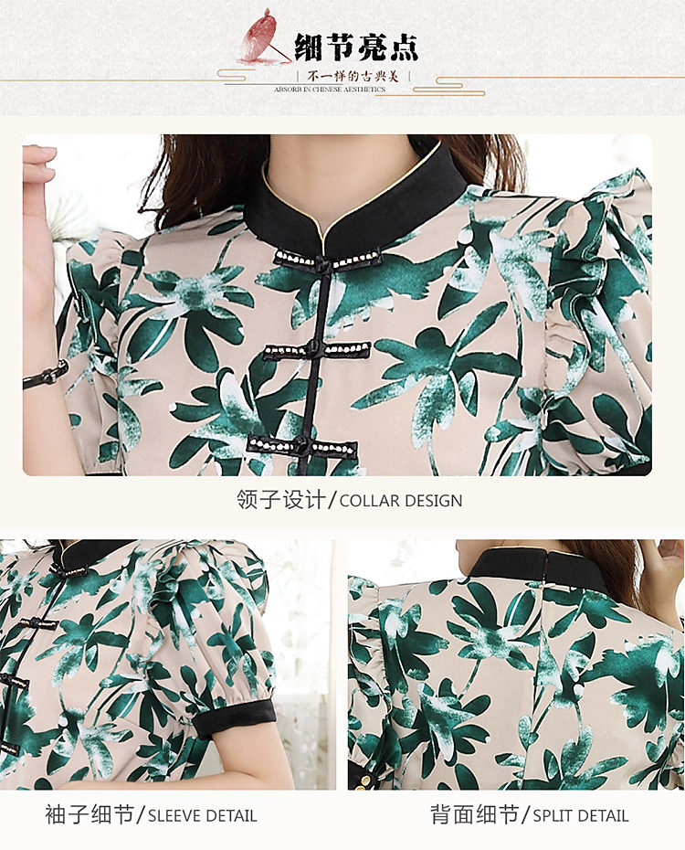 DLQ-A2569妈妈碎花小衫新款上衣洋气气质复古短袖雪纺衫