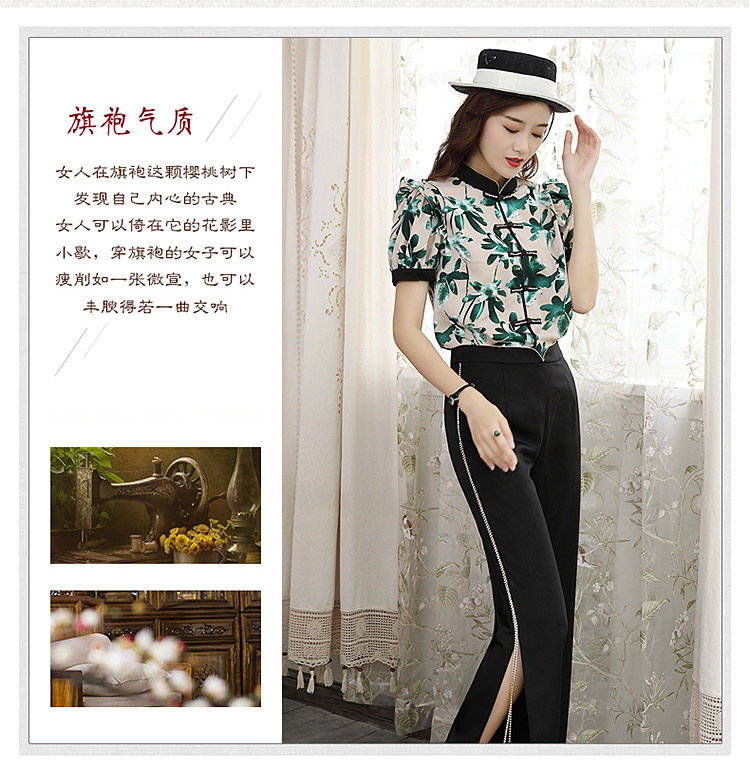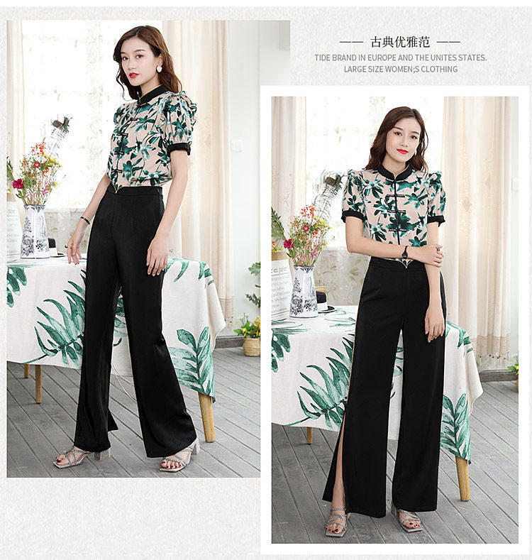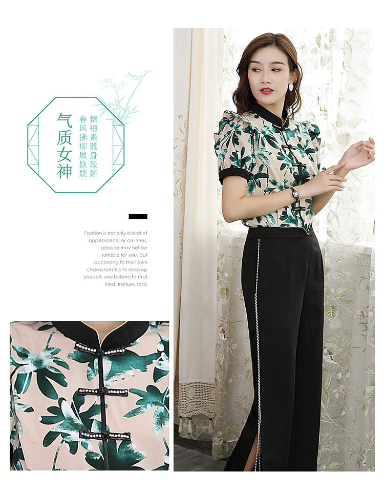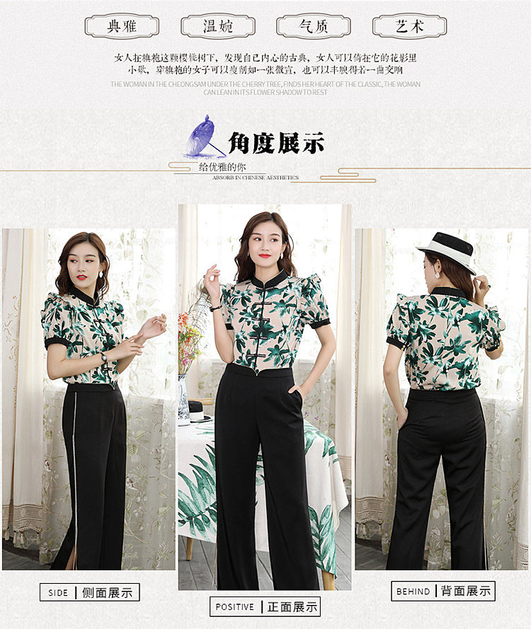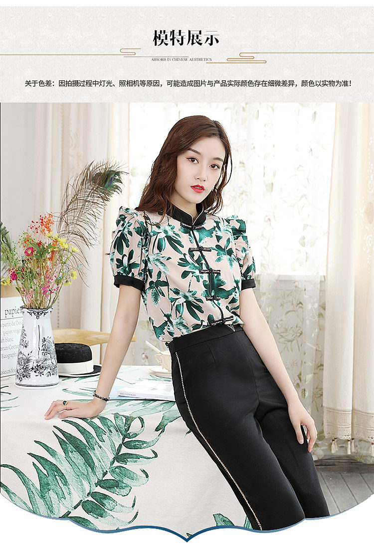 DLQ-A2569妈妈碎花小衫新款上衣洋气气质复古短袖雪纺衫