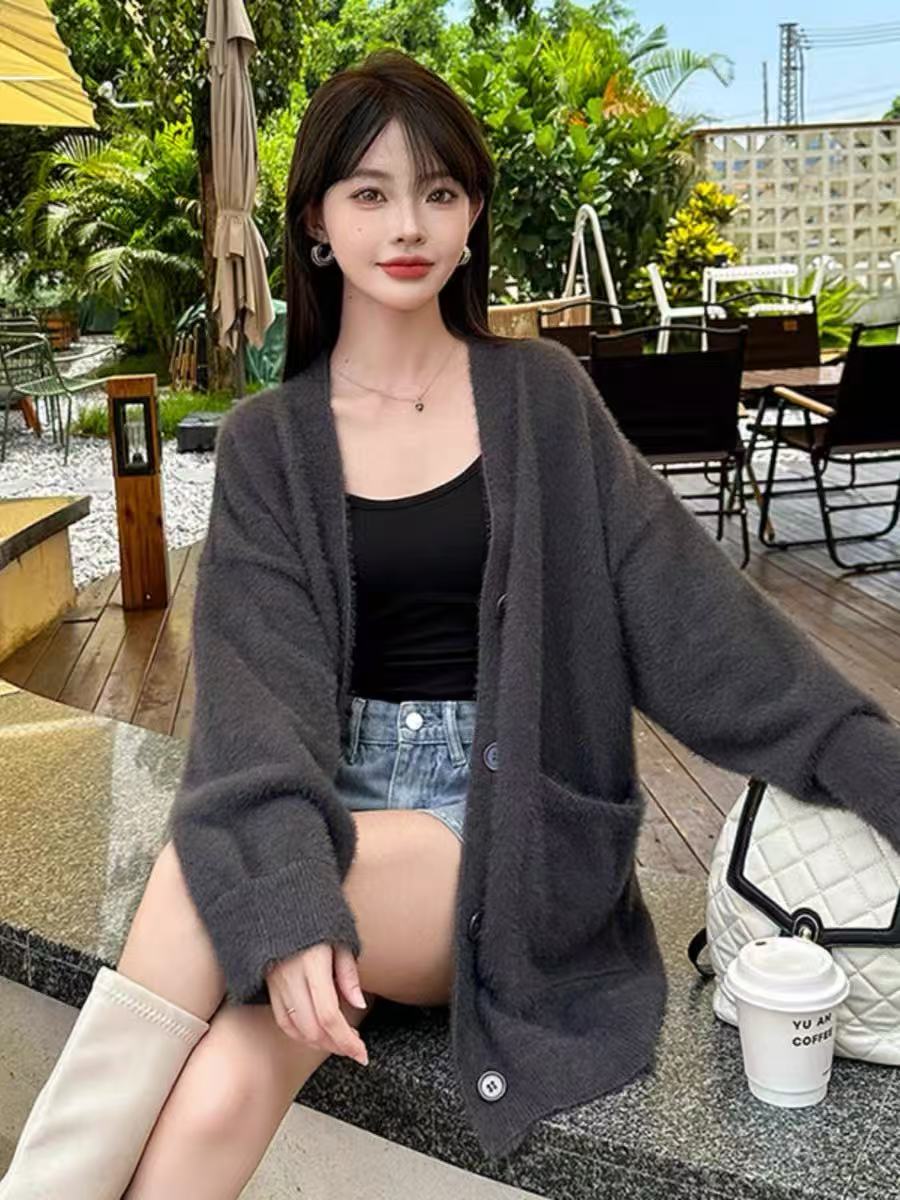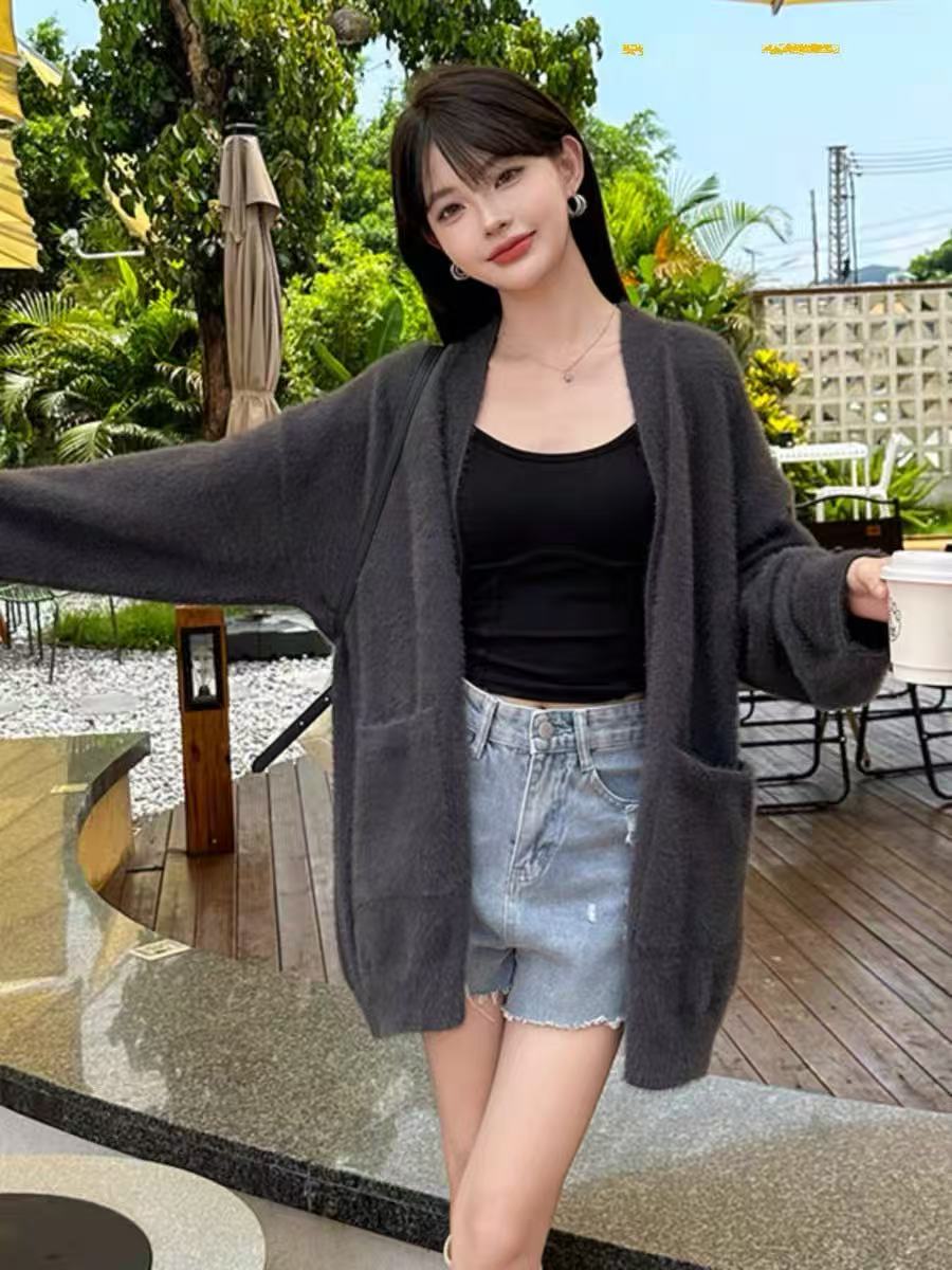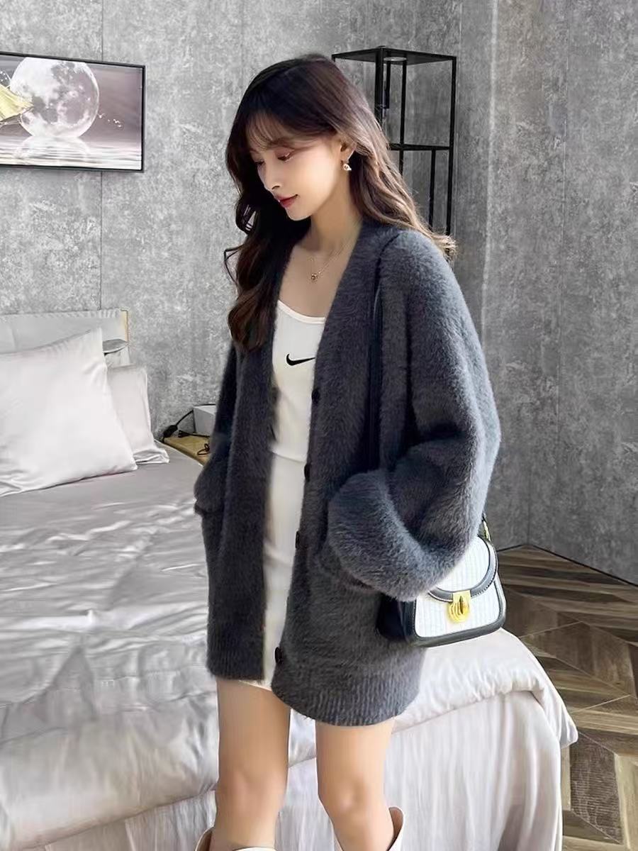【孤品捡漏】G38深灰仿水貂毛针织开衫外套-喜出