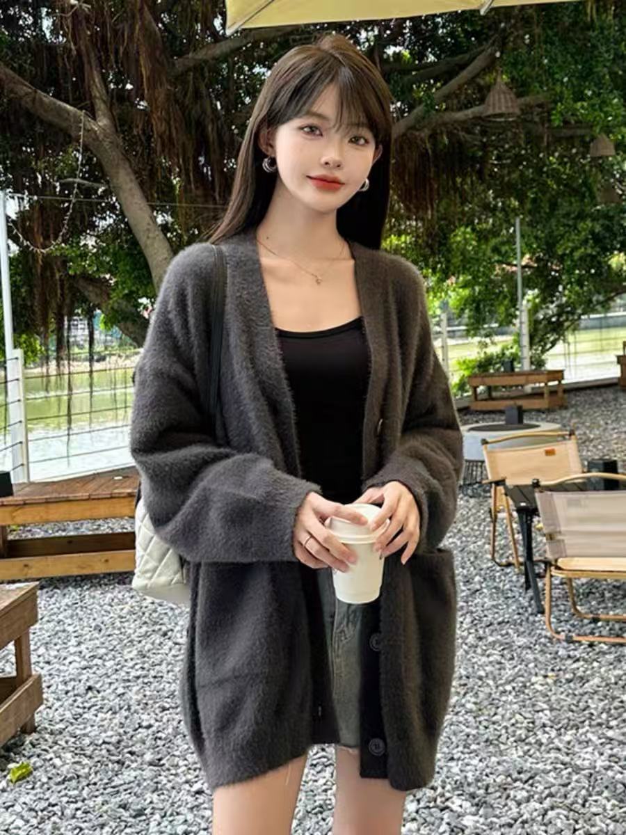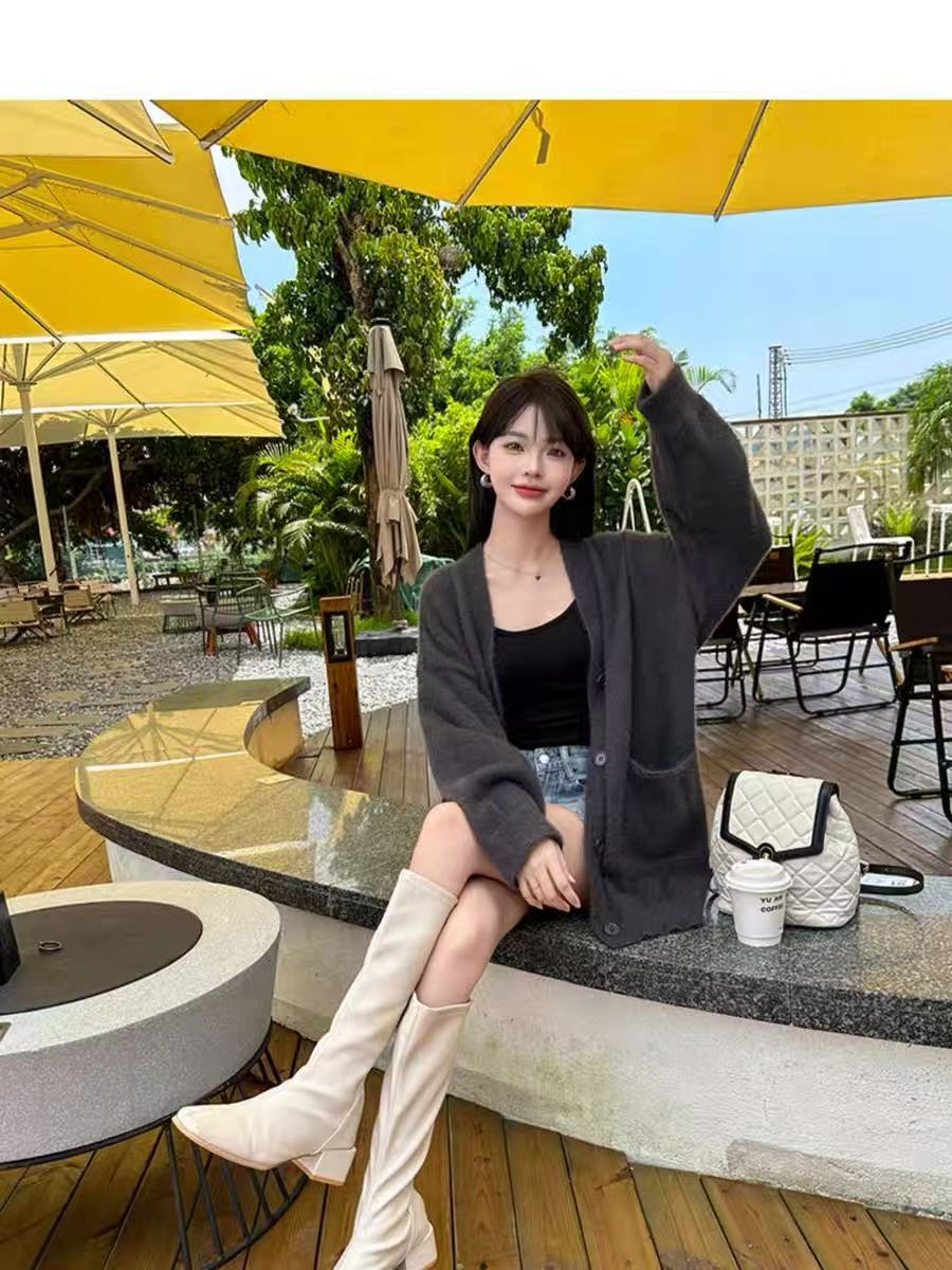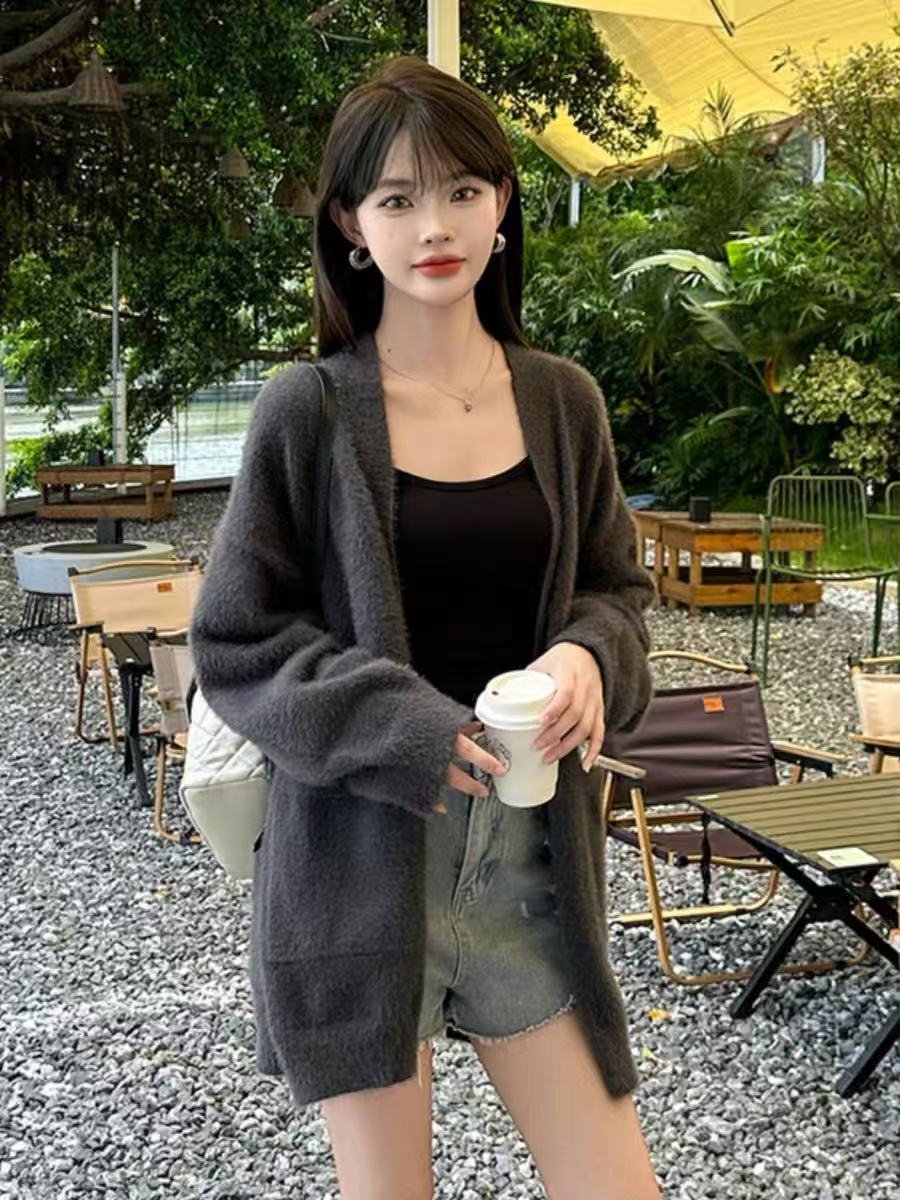 【孤品捡漏】G38深灰仿水貂毛针织开衫外套-喜出