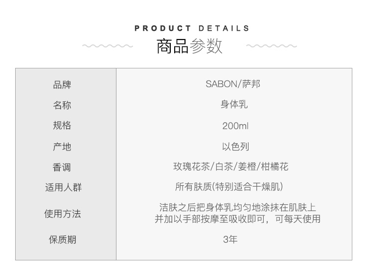【保税直邮 福州海关】SABON身体乳瓶装-200ml