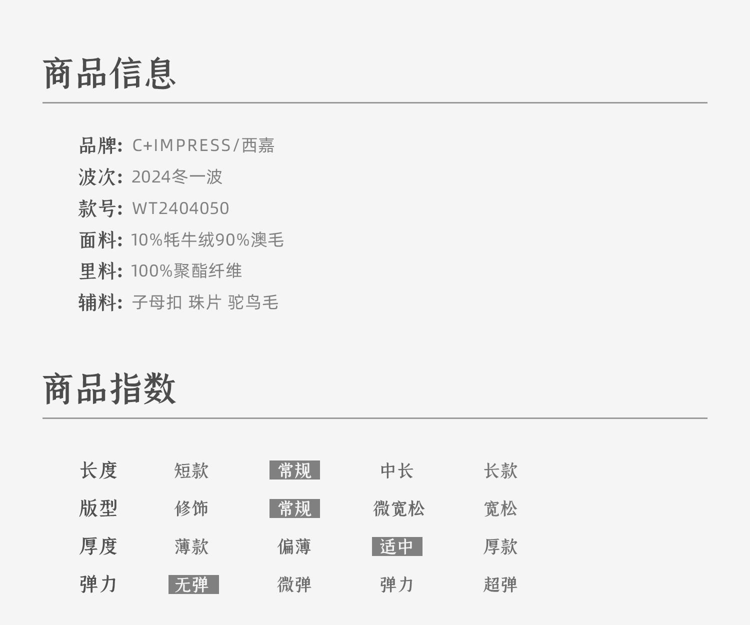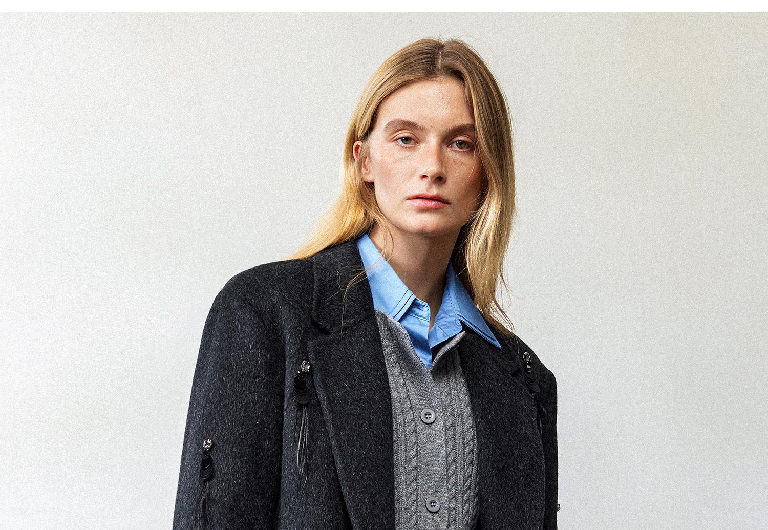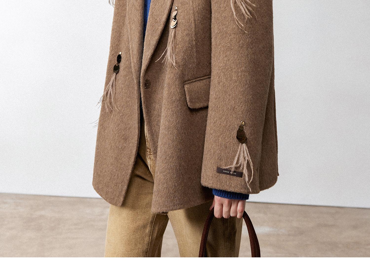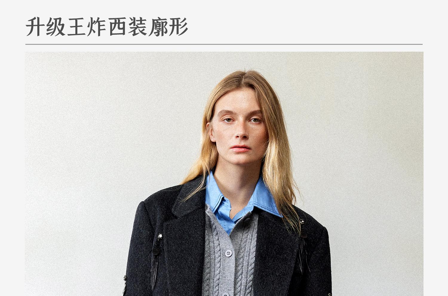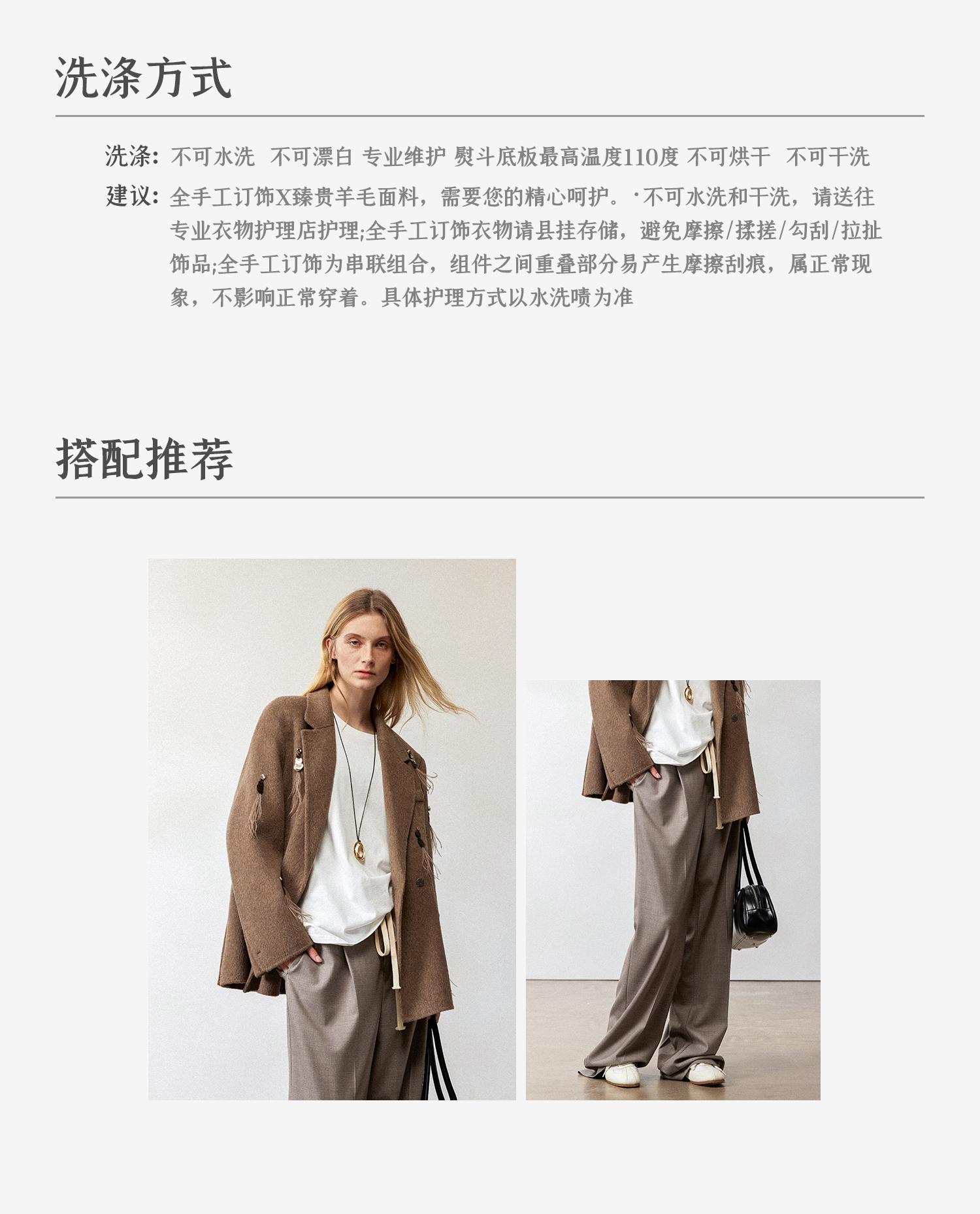 西嘉牦牛绒澳毛混纺 手工钉饰双面呢大衣女2024秋冬毛呢西装外套(货号:WT2404050)