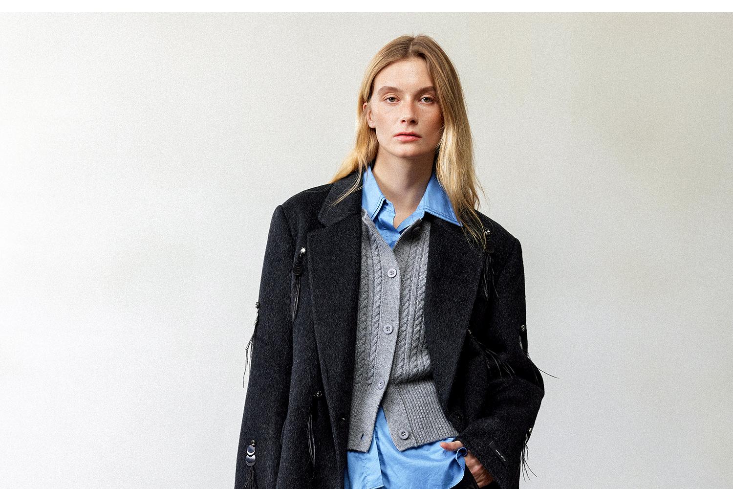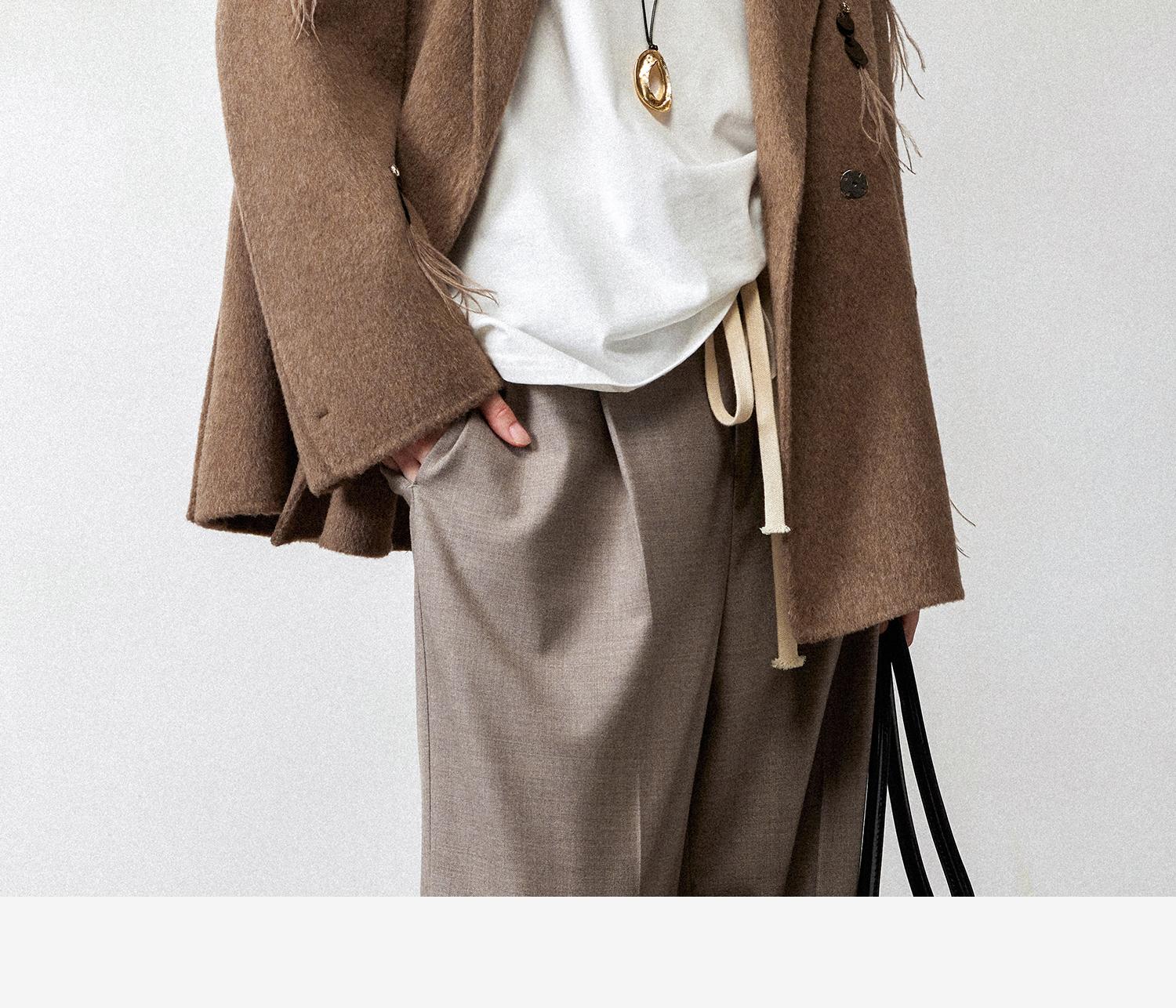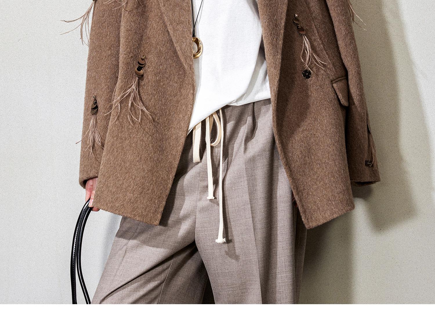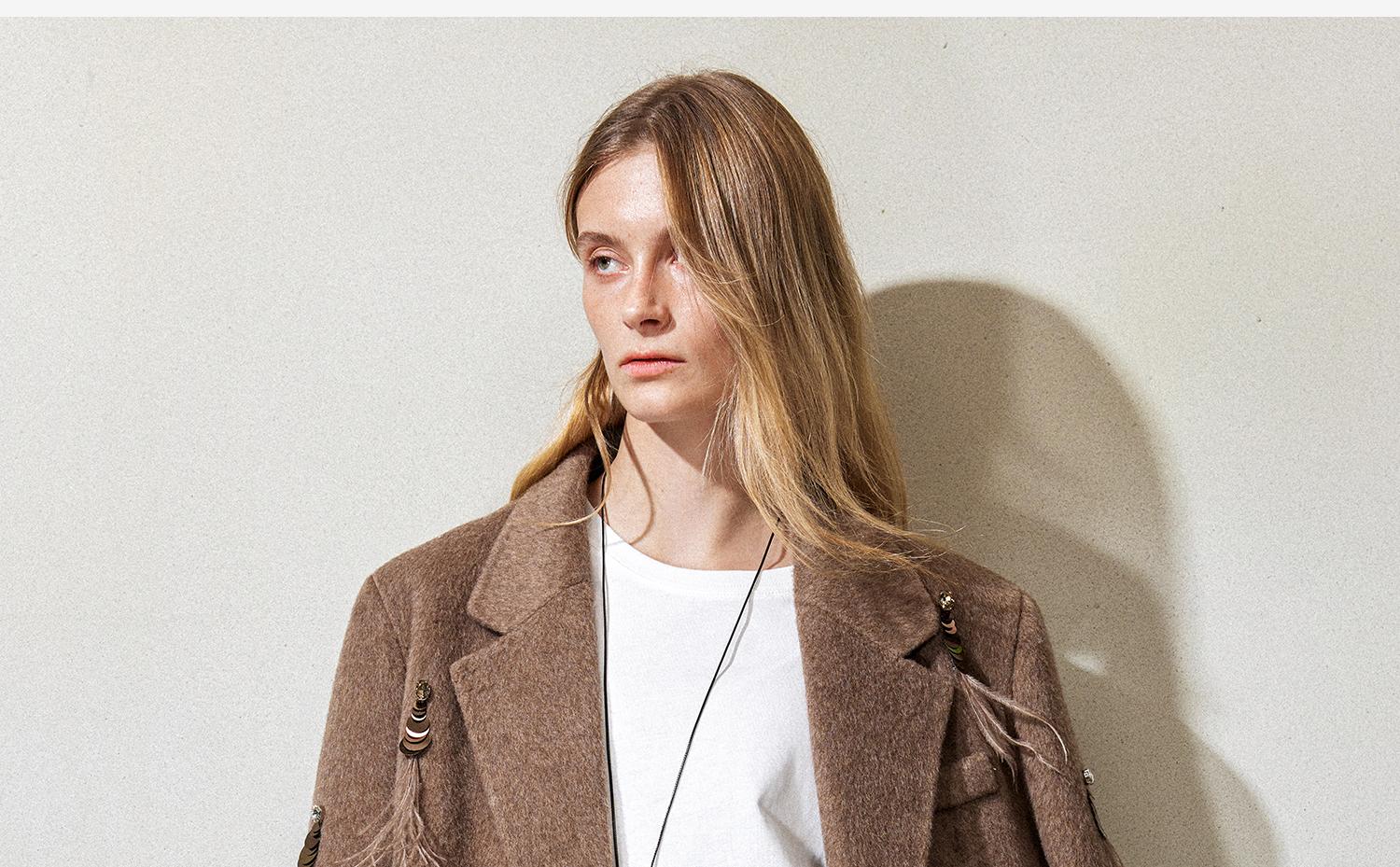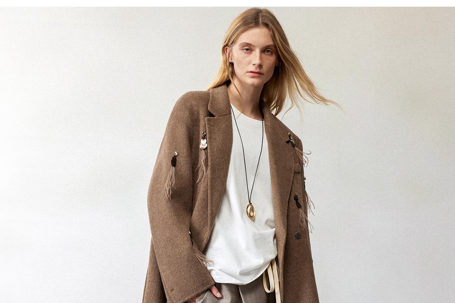 西嘉牦牛绒澳毛混纺 手工钉饰双面呢大衣女2024秋冬毛呢西装外套(货号:WT2404050)
