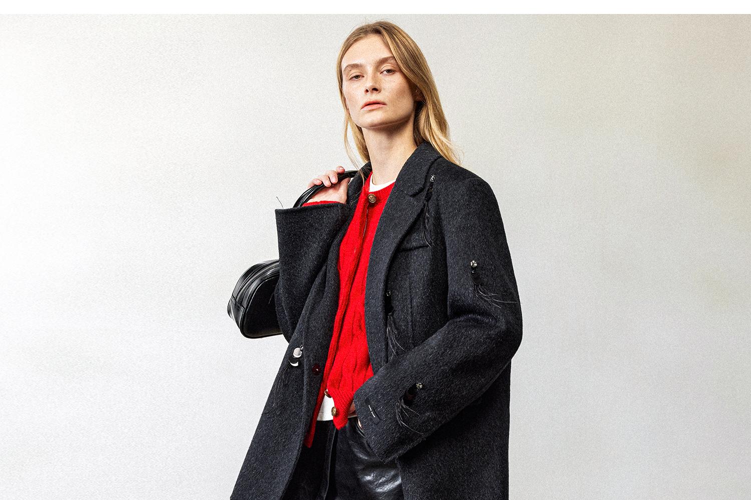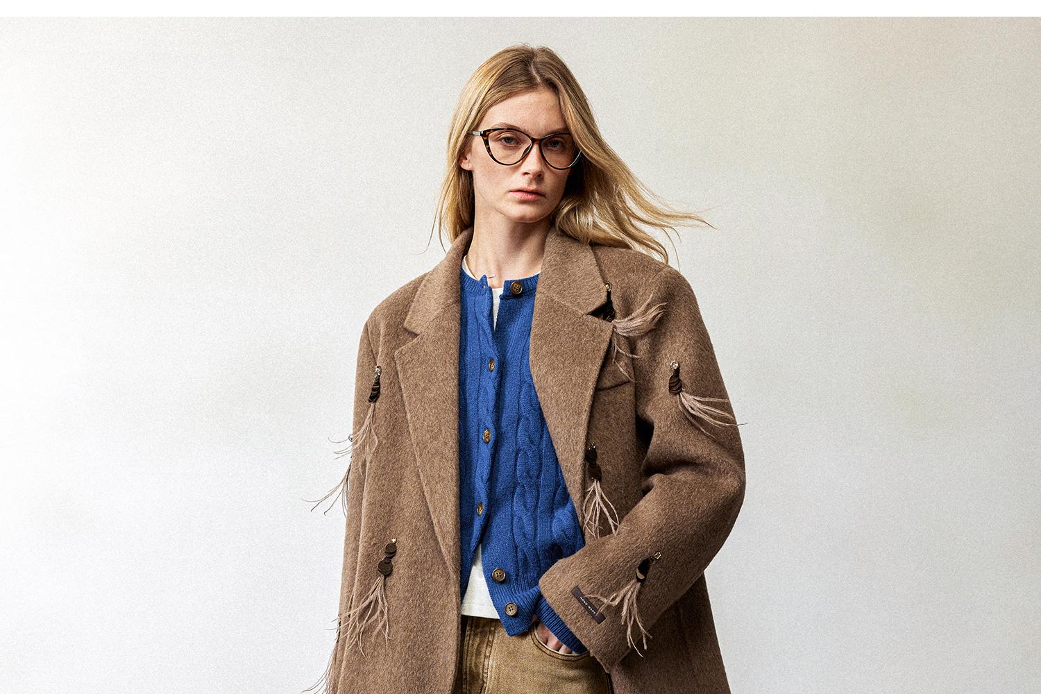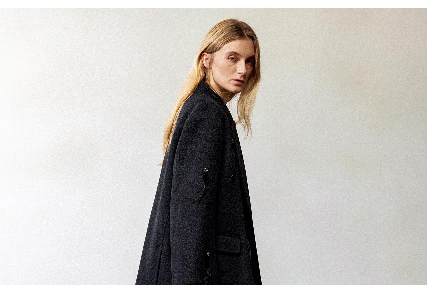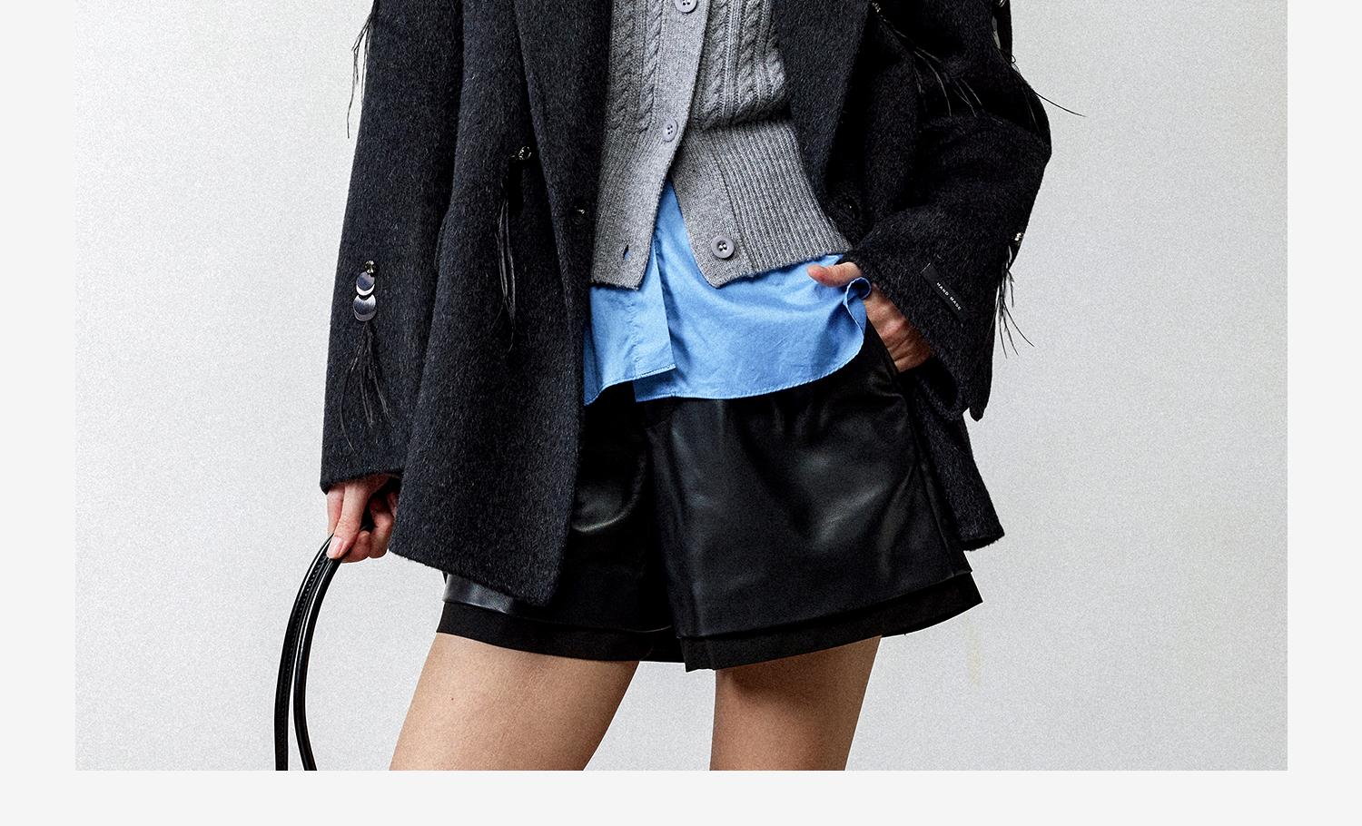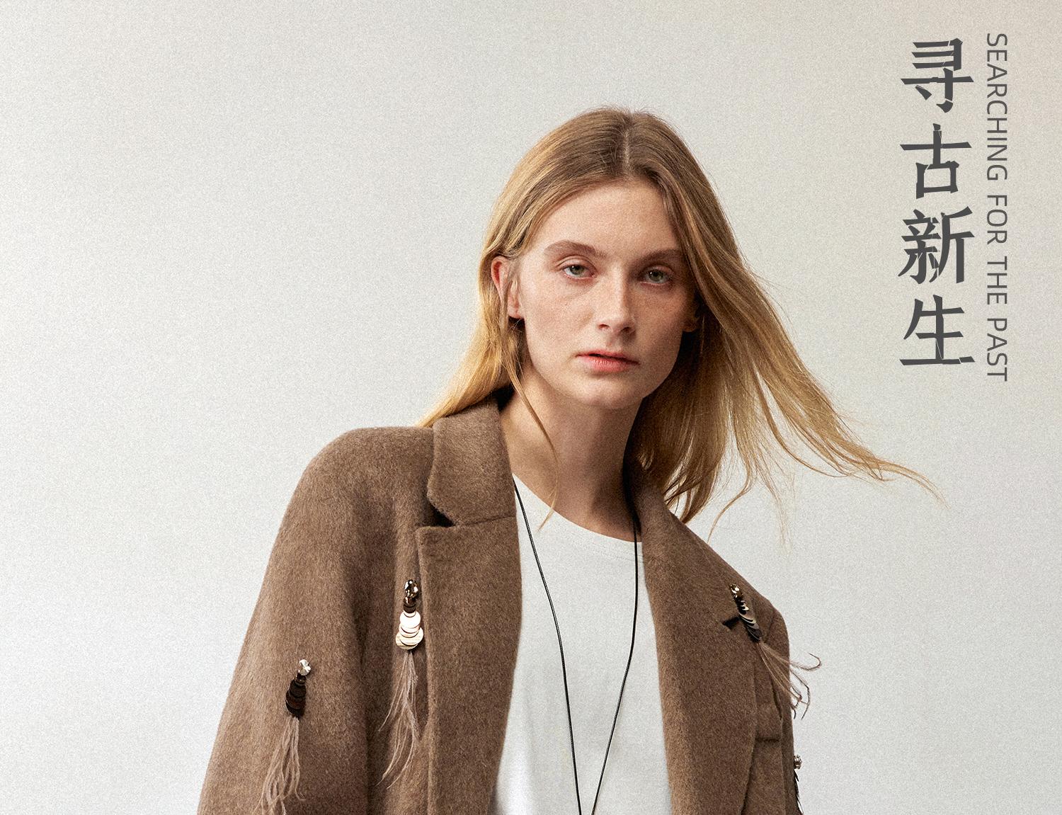 西嘉牦牛绒澳毛混纺 手工钉饰双面呢大衣女2024秋冬毛呢西装外套(货号:WT2404050)