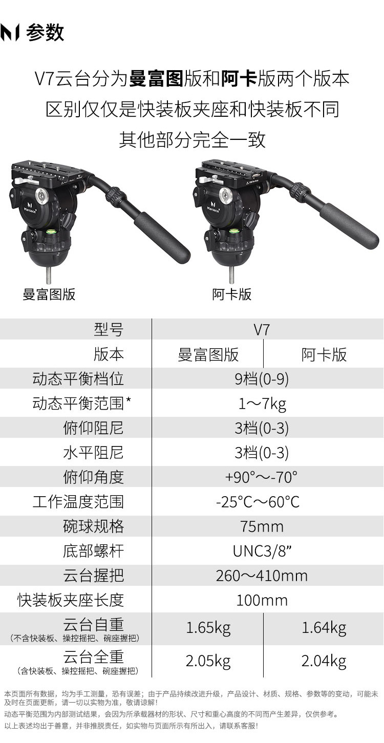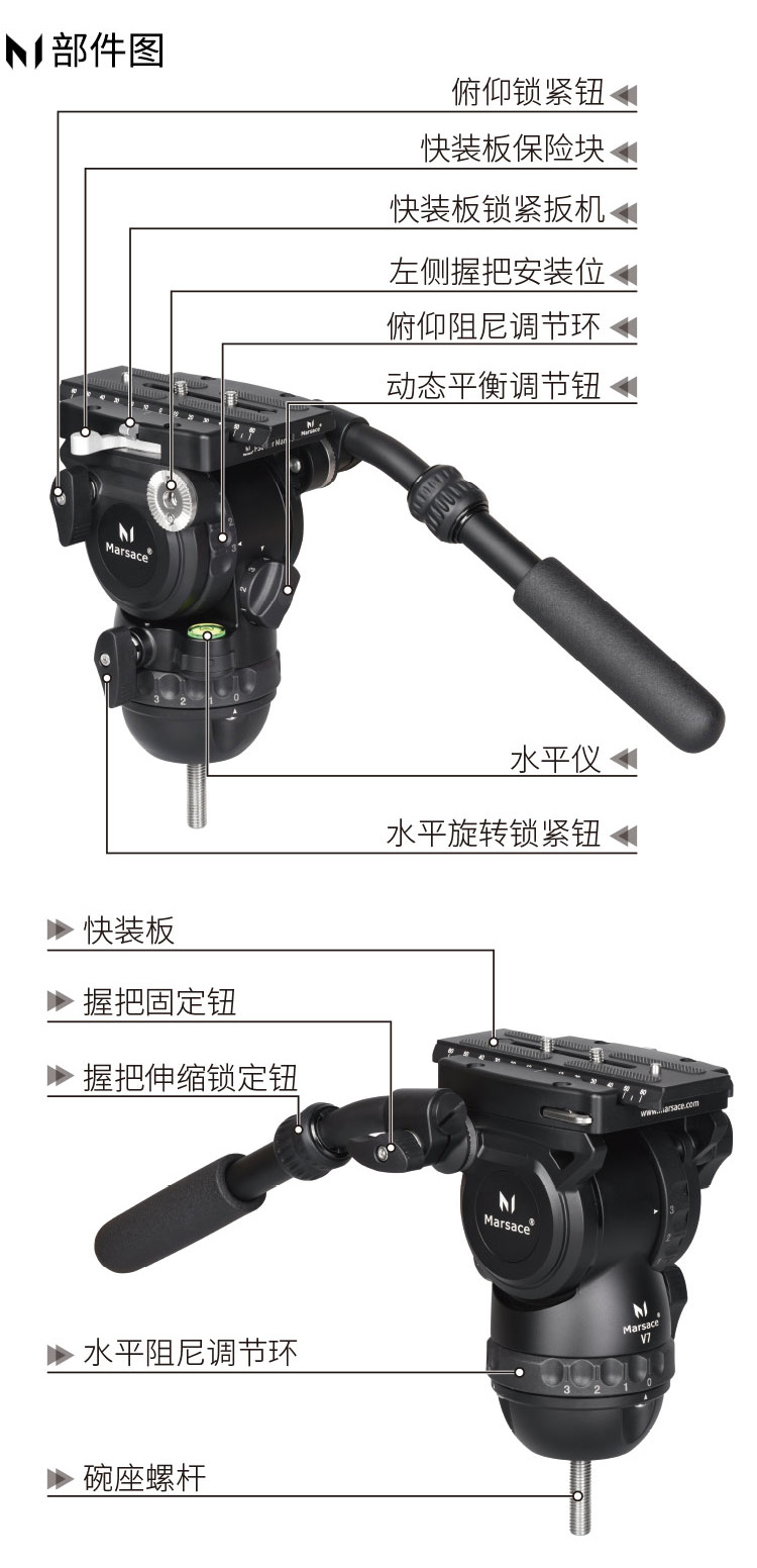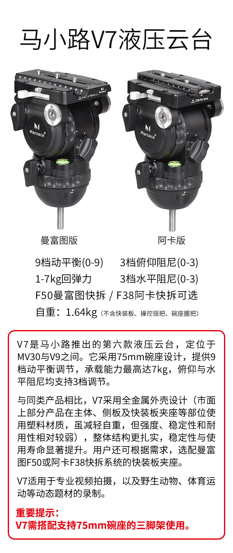 马小路(marsace)V7液压云台,9档1-7kg动平衡,曼富图/阿卡板可选