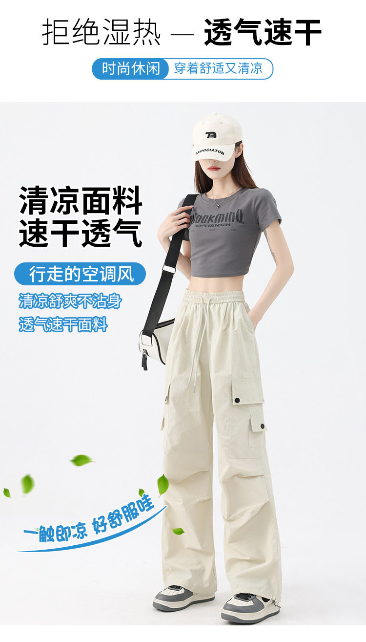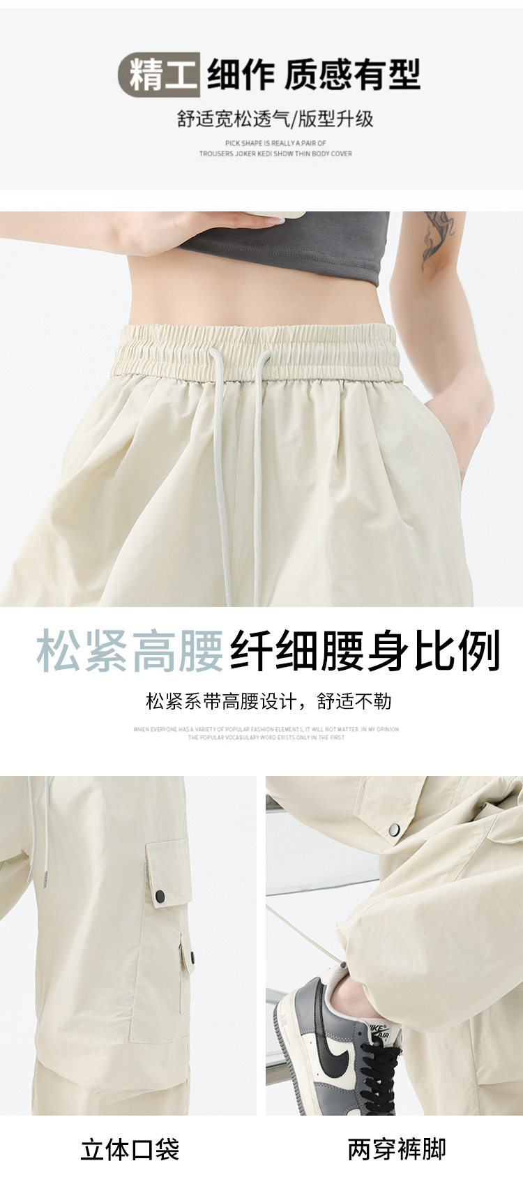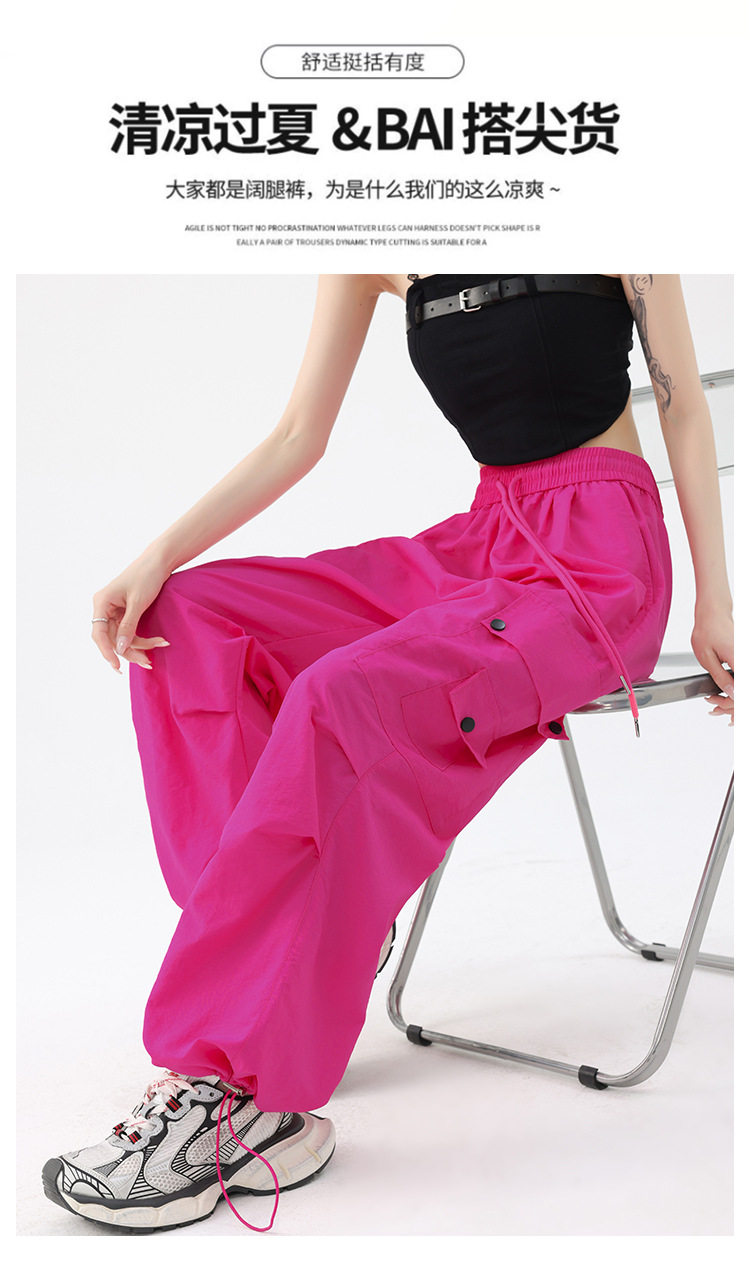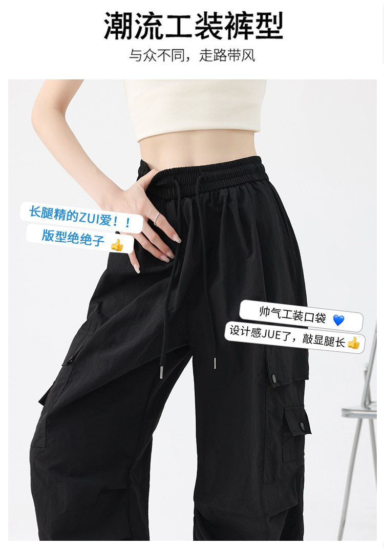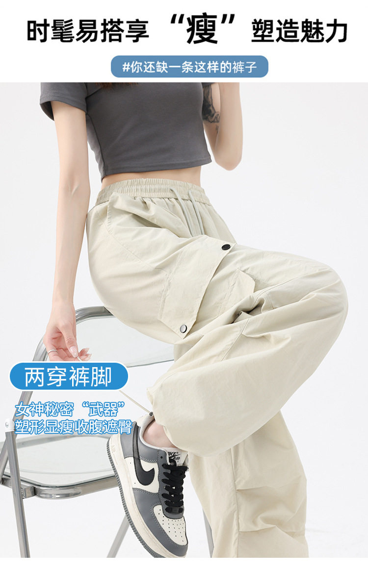 直筒运动裤女夏季薄款2026新款高腰阔腿降落伞裤子休闲显瘦工装裤 NDK-J6003