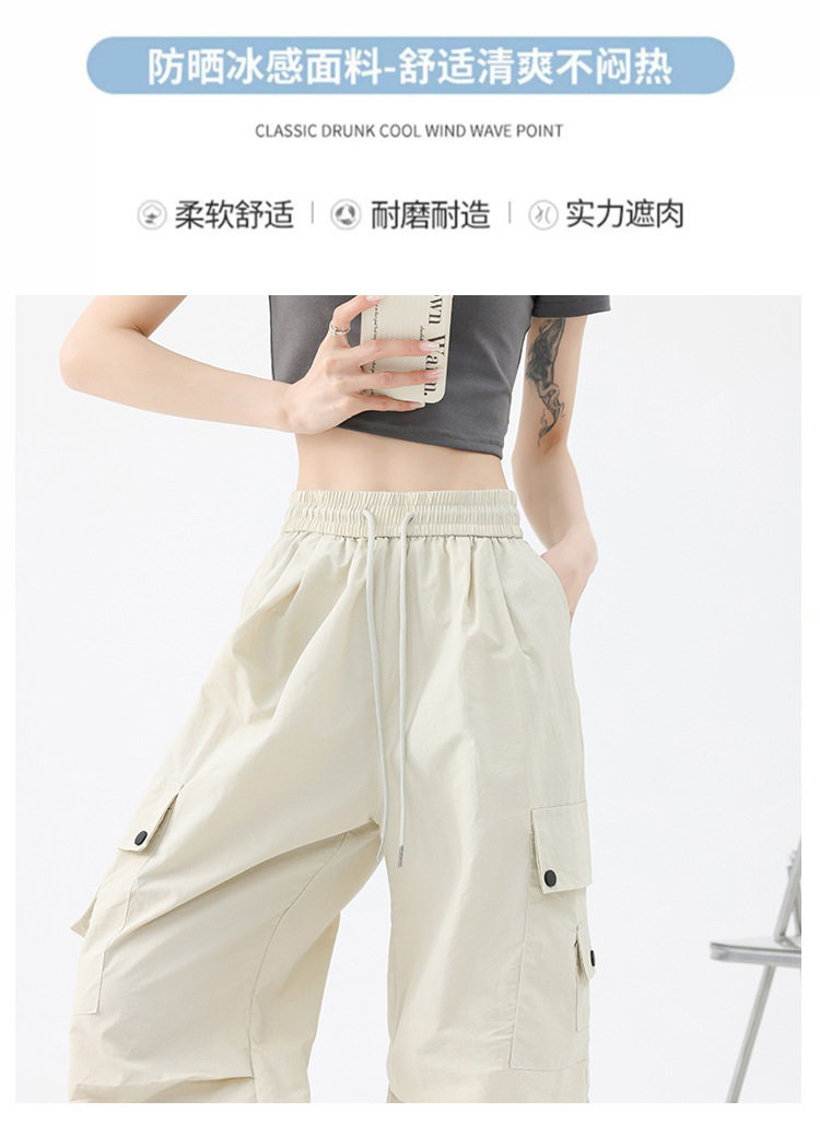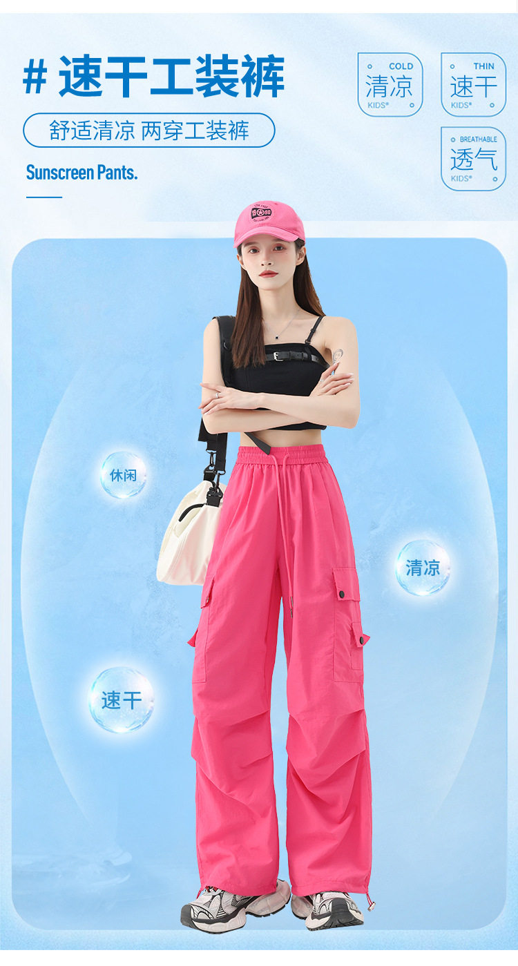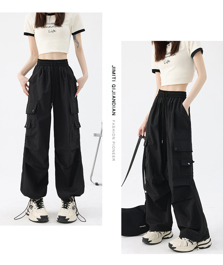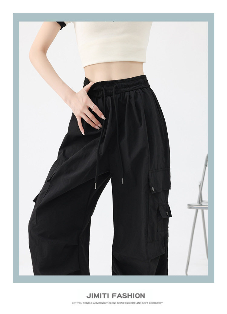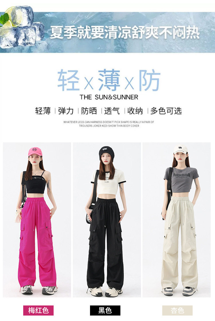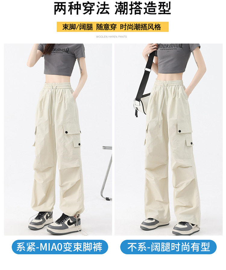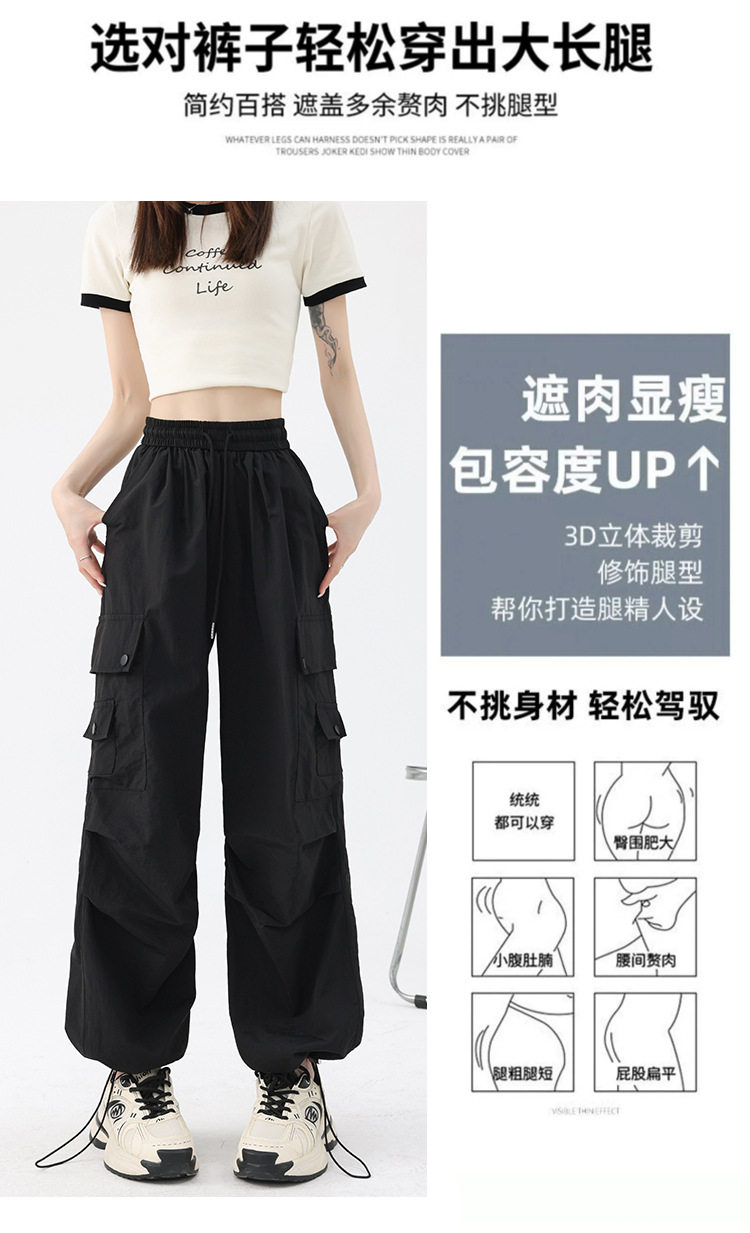 直筒运动裤女夏季薄款2026新款高腰阔腿降落伞裤子休闲显瘦工装裤 NDK-J6003
