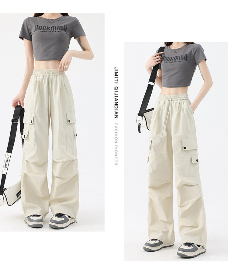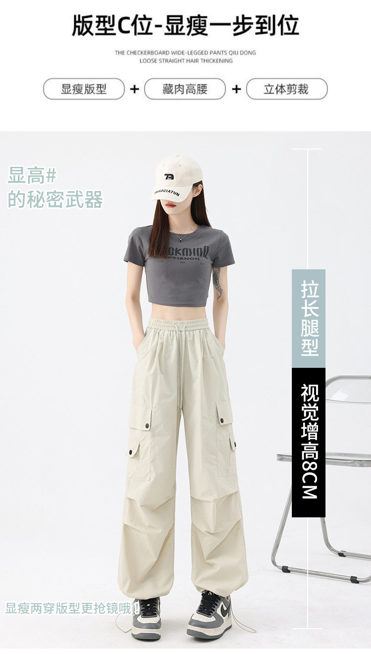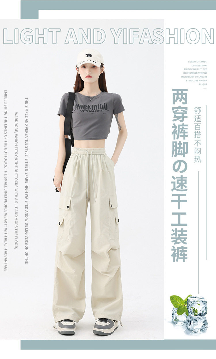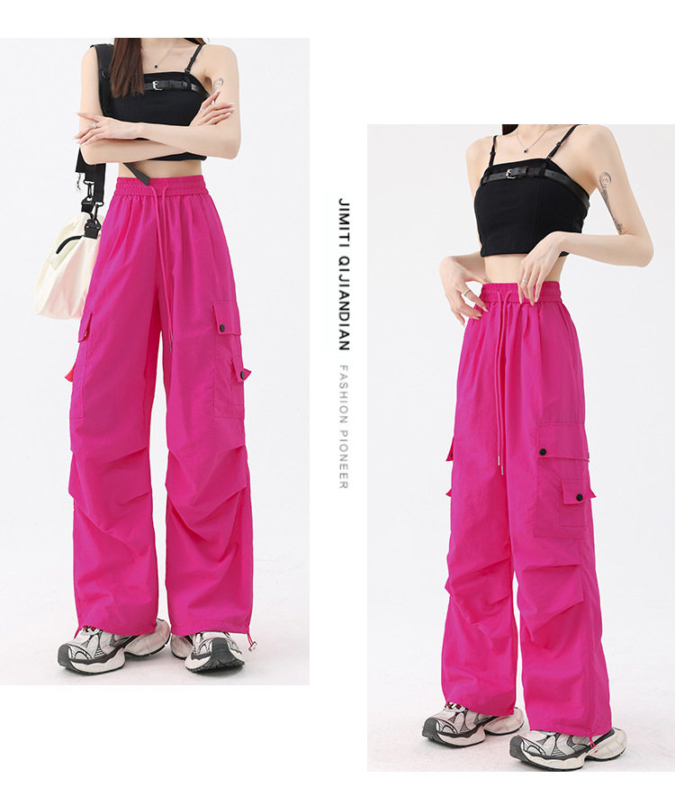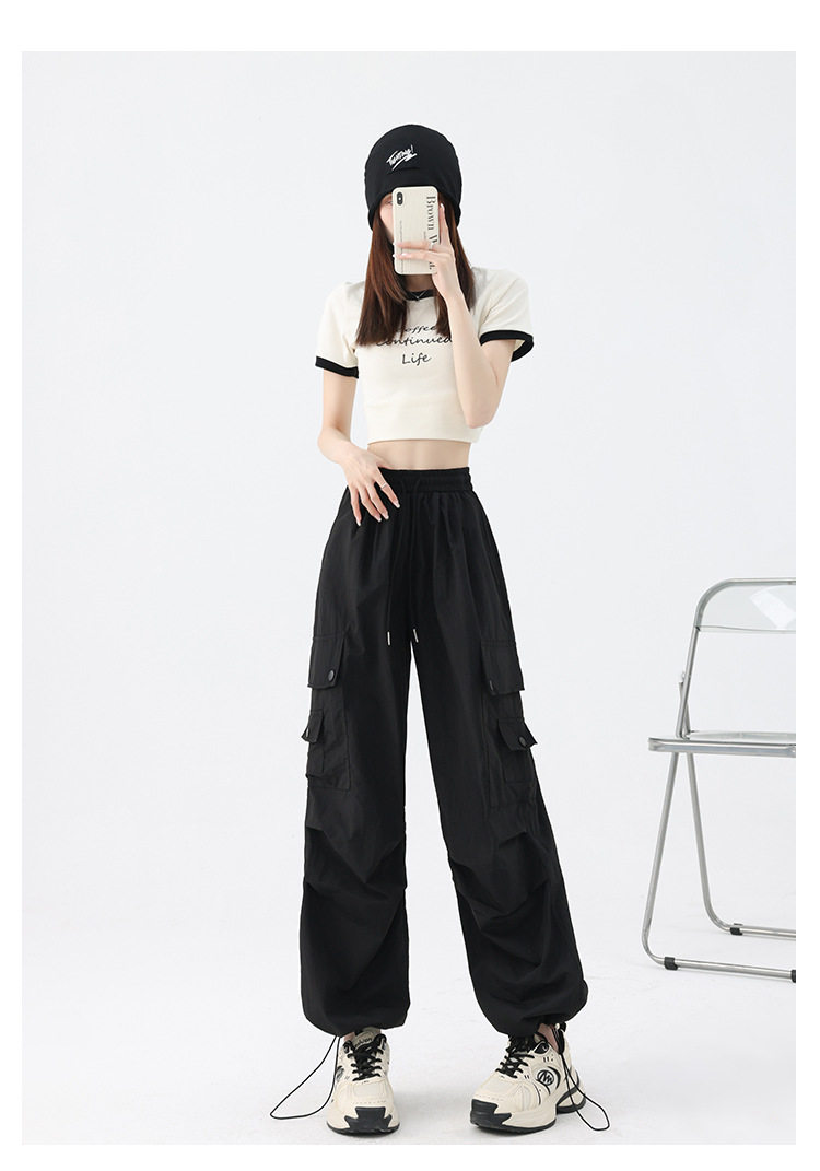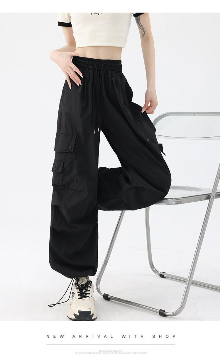 直筒运动裤女夏季薄款2026新款高腰阔腿降落伞裤子休闲显瘦工装裤 NDK-J6003