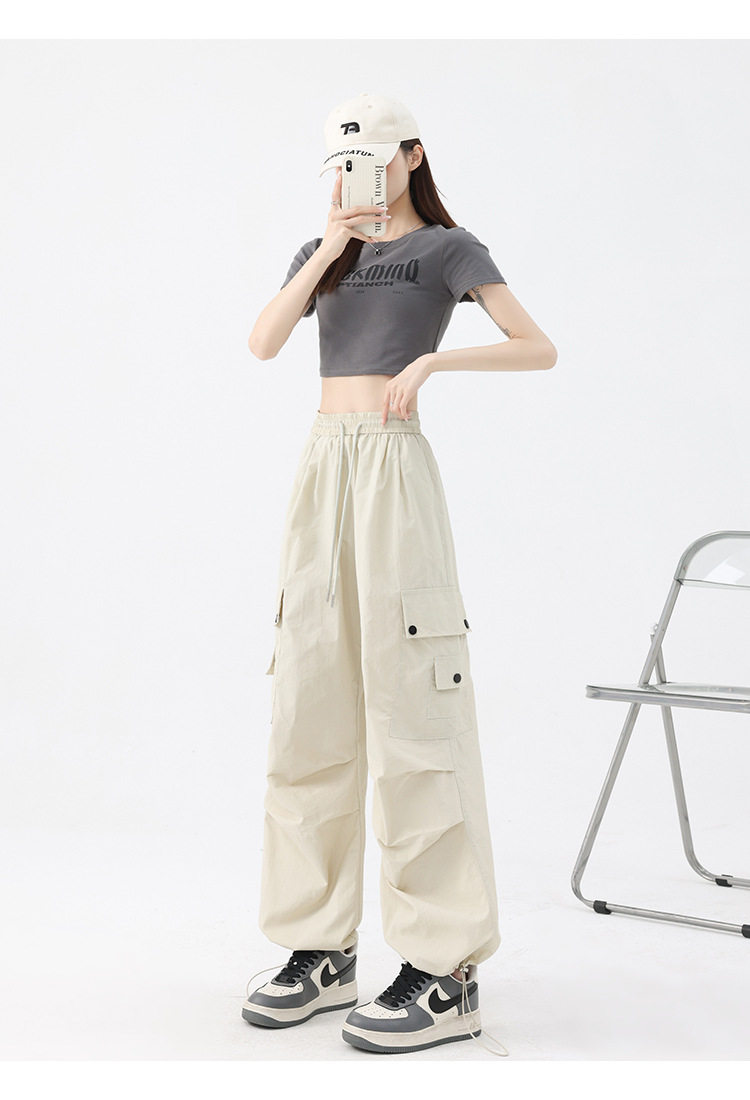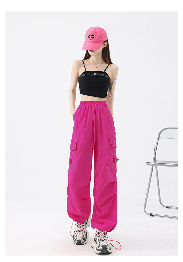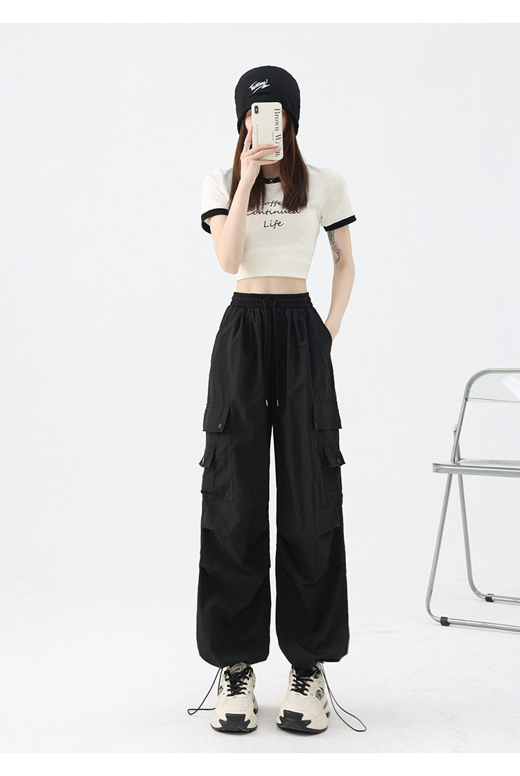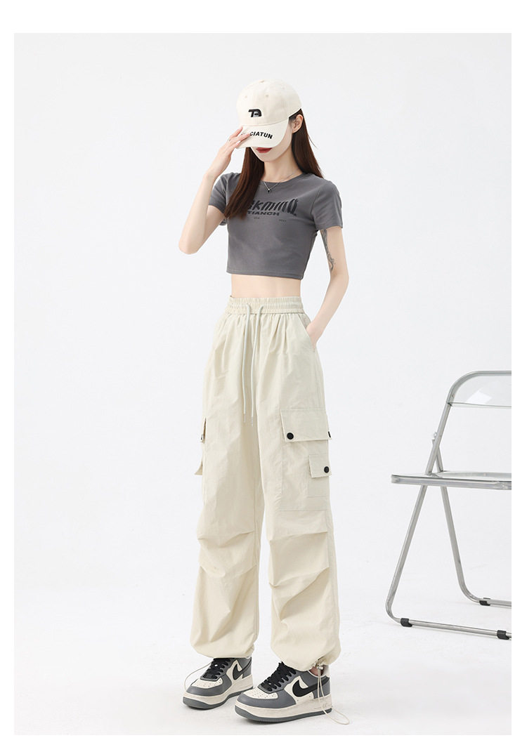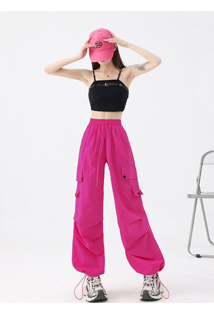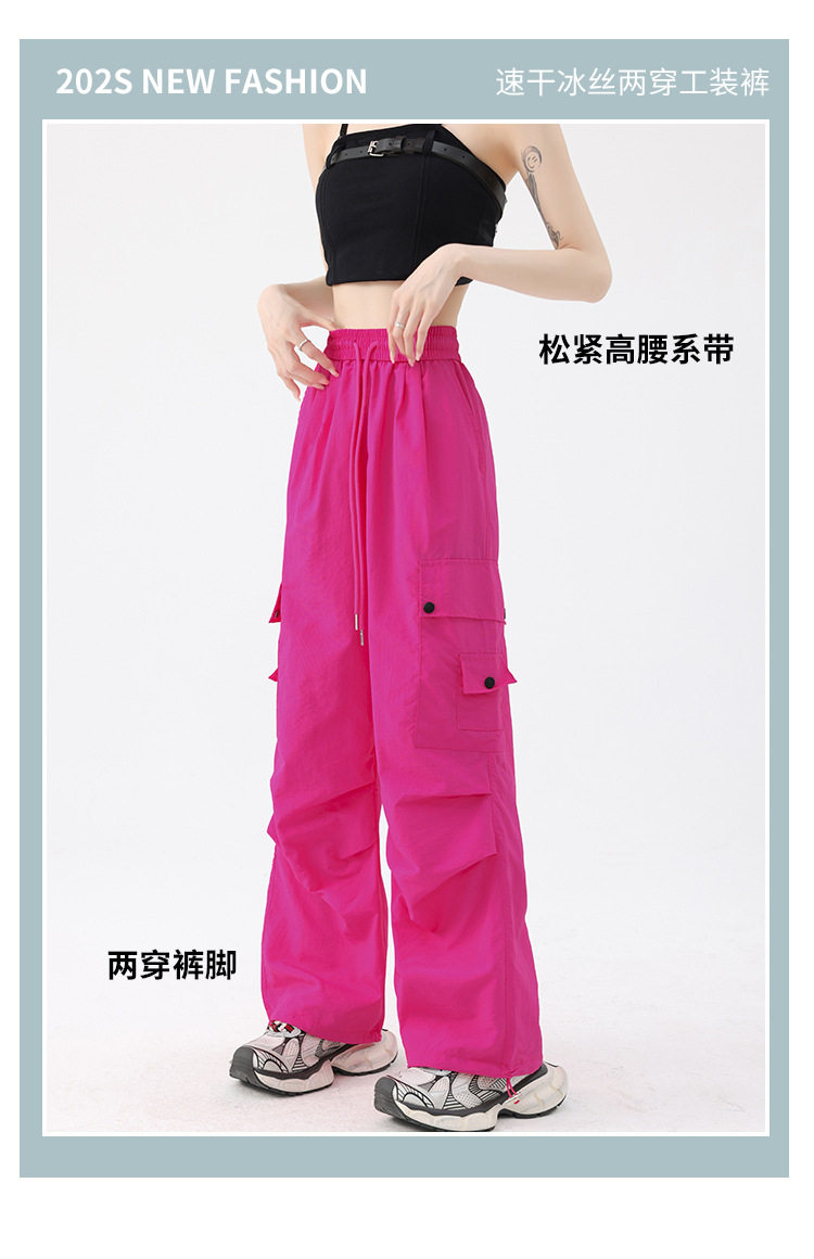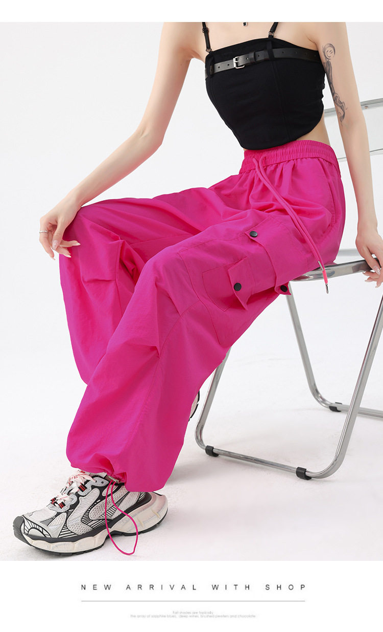 直筒运动裤女夏季薄款2026新款高腰阔腿降落伞裤子休闲显瘦工装裤 NDK-J6003