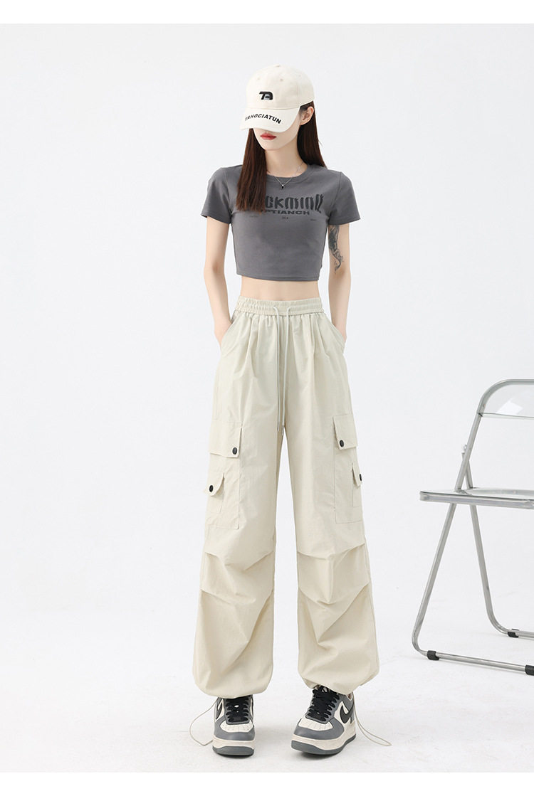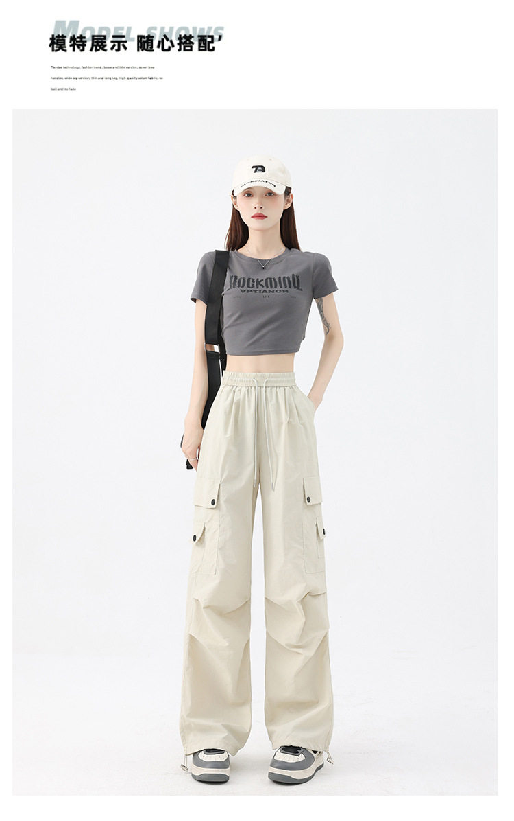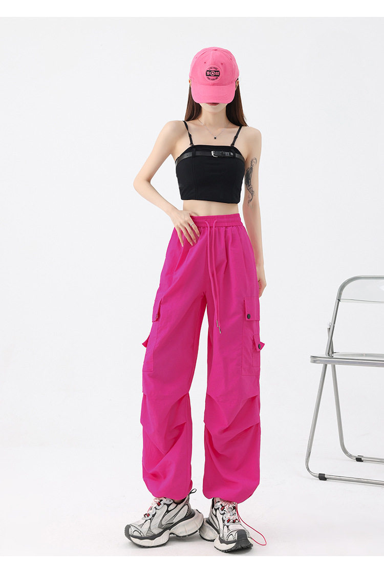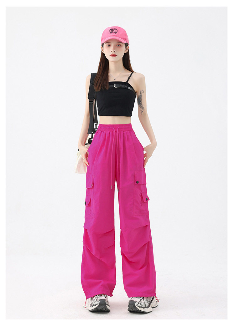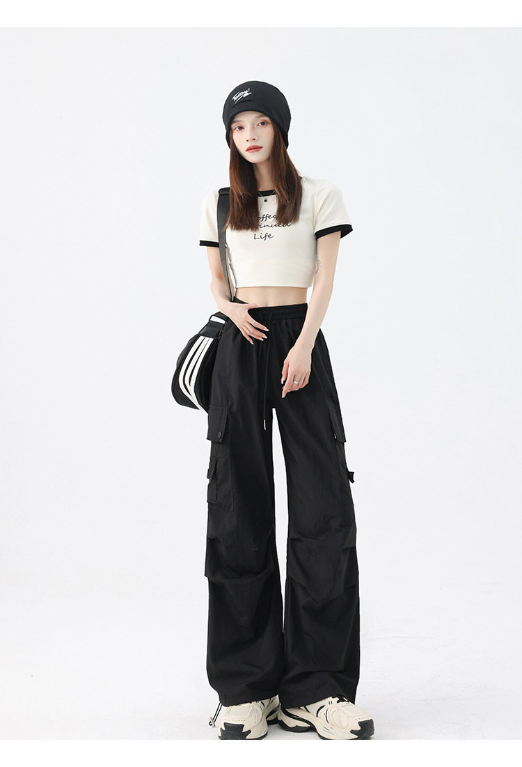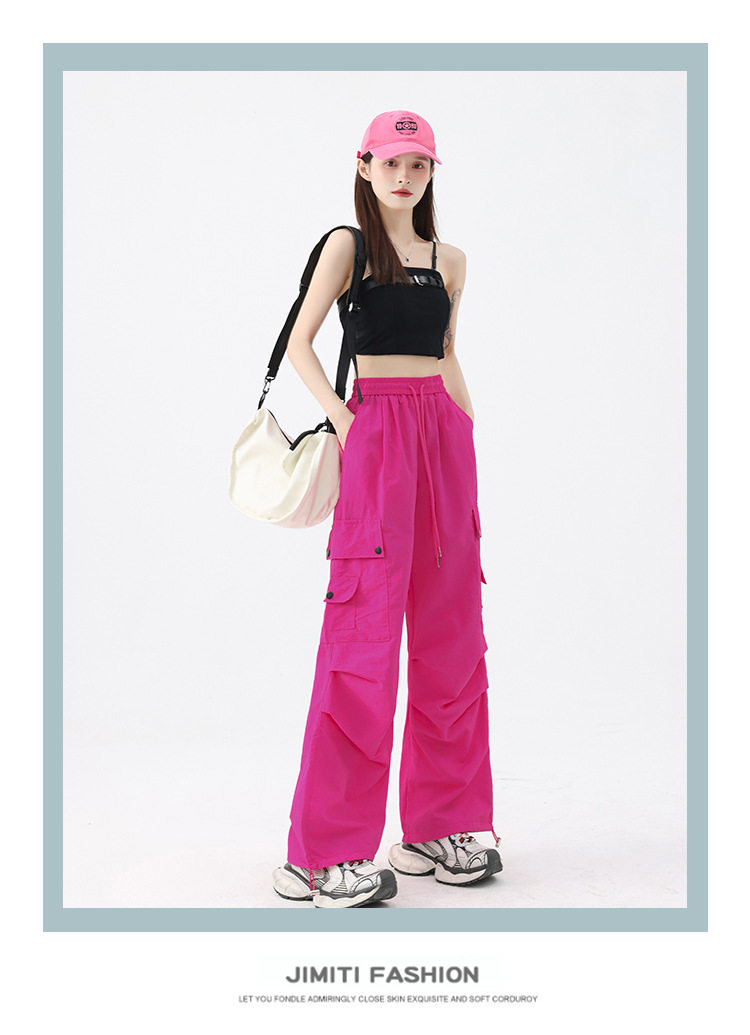 直筒运动裤女夏季薄款2026新款高腰阔腿降落伞裤子休闲显瘦工装裤 NDK-J6003