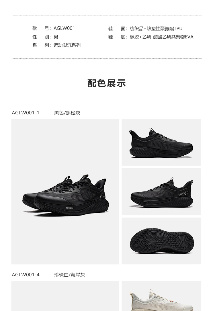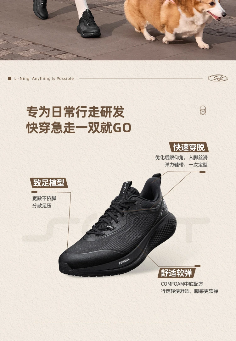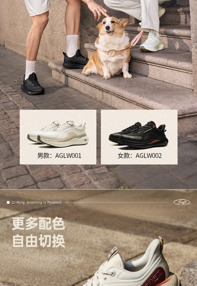 李宁SOFT GO 3男子反光柔软舒适潮流休闲鞋AGLW001