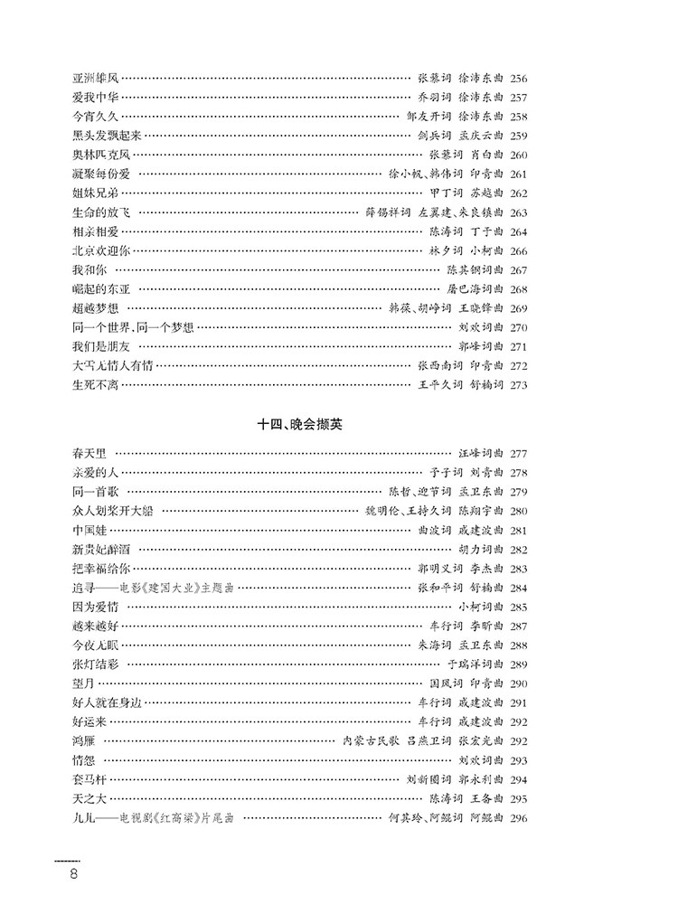 为检阅中华流行歌曲的创作成就,勾勒中华流行歌曲的发展轨迹,书中集结的300首流行歌曲,是从几千首名歌里优中选优“海选”而来。关于书名的定位,所谓“中华”即所选歌曲汇集两岸三地的优秀作品;“流行歌曲”指歌曲风格,不是传唱状态;“精选”一方面注重流行歌曲的合格身份,一方面体现流行歌曲的风格类型,从而得以敲定。