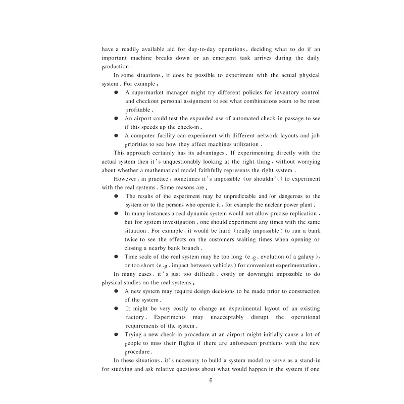 本书为浙江大学机械类本科教材。主要涉及生产系统或服务系统的建模及其仿真理论和方法,通过计算机建模和仿真工具进行建模和仿真,以便对系统进行计算机环境的模拟运行以及系统性能分析优化。