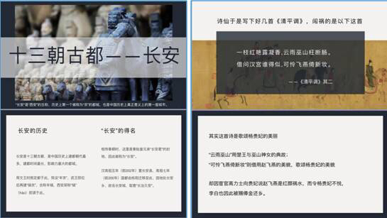 为让孩子们更清楚唐诗背后的人文故事,我们制作了唐诗音频课的精美课件,内容包括音频课里涉及的故事、诗词、人物等。让孩子边看边听,真正把唐诗刻进脑海里。