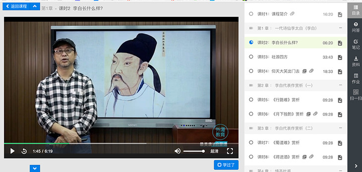 含22课时唐诗讲读音频,使用外滩云课堂授课,可反复回听。