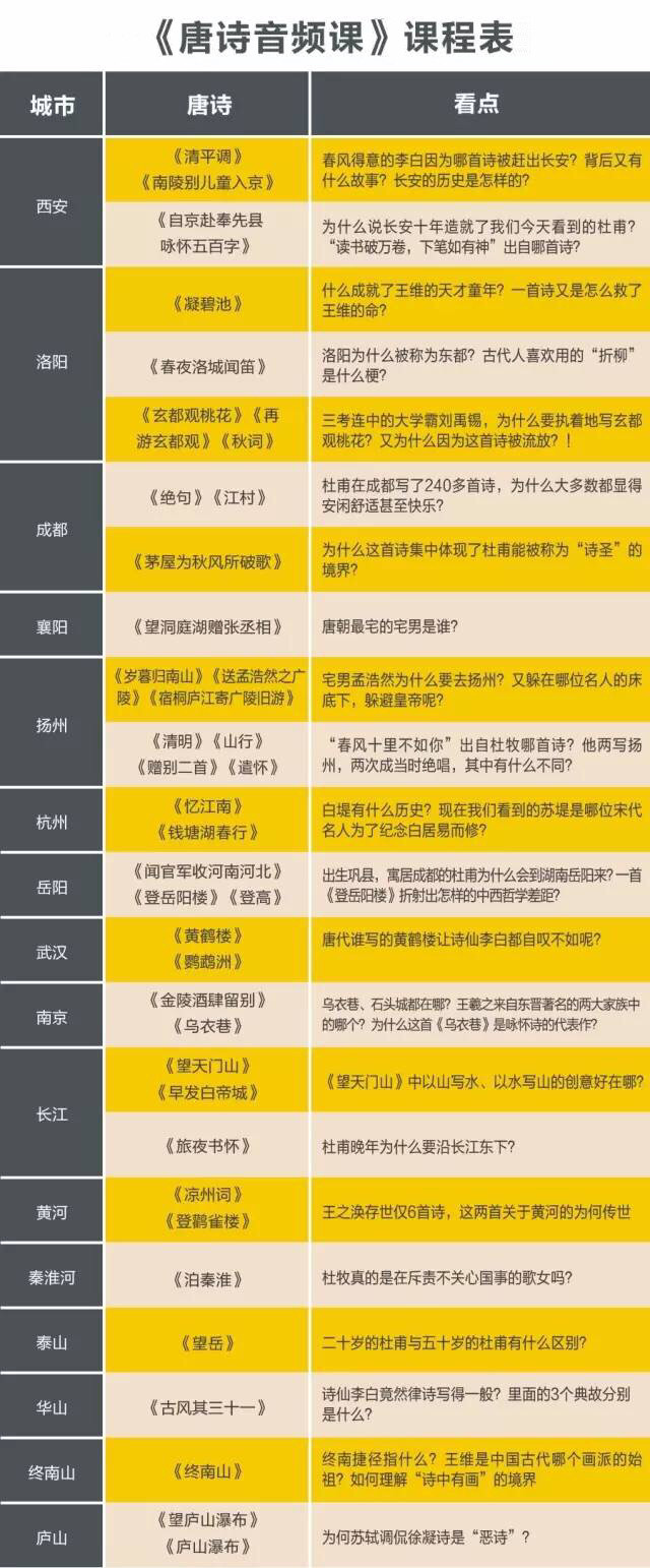 2.《暑假唐诗音频课》(22堂音频课)是一门旅行和唐诗相结合的音频课。音频解读全国的九座人文城市,六处山川河流,一个历史景点的诗歌。