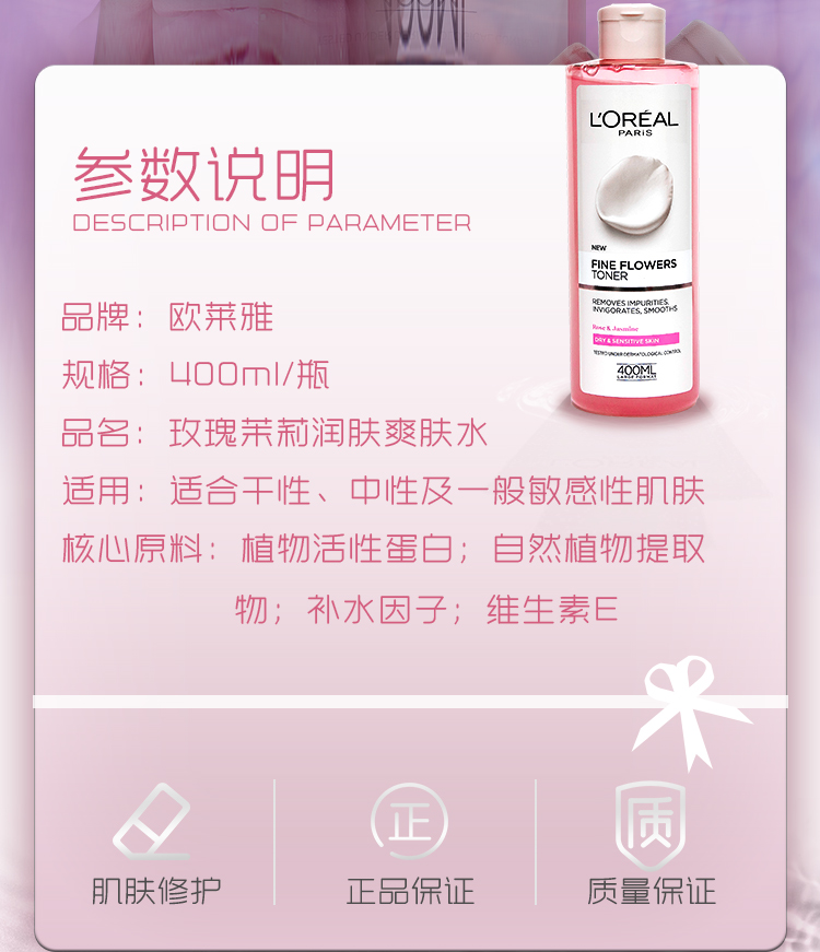 【保税仓】欧莱雅玫瑰柔肤水400ml
