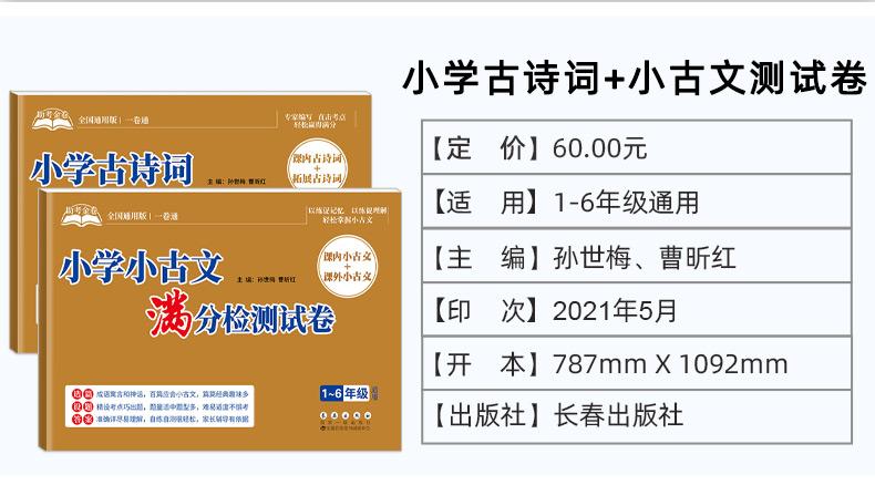 小学古诗词满分检测试卷课内课外古诗词阅读理解专项助考金卷