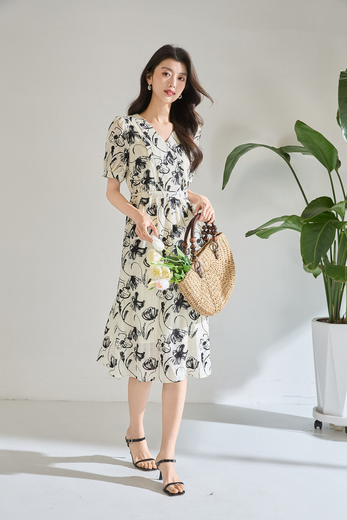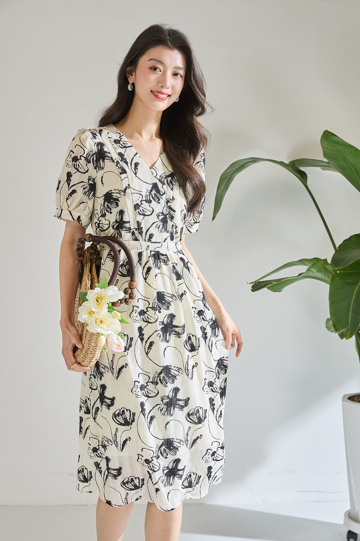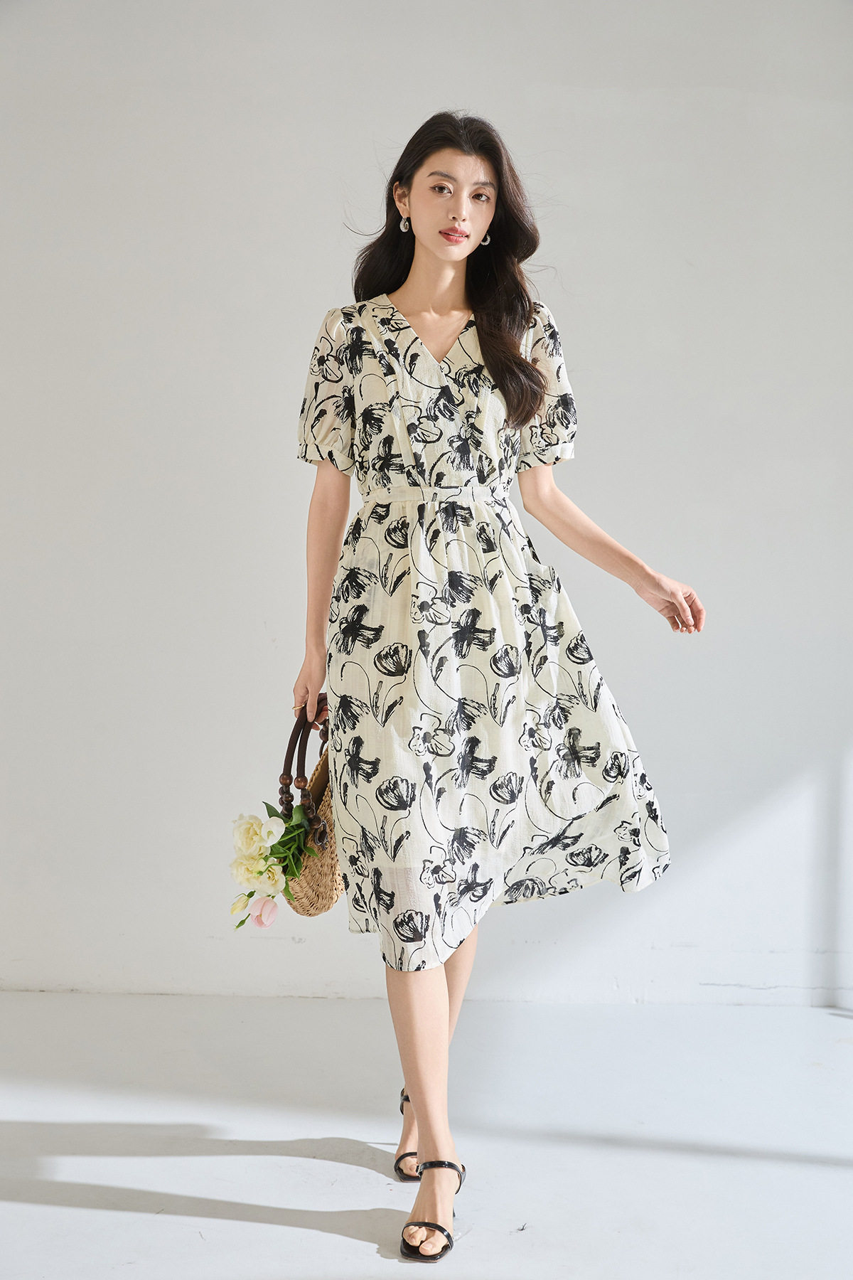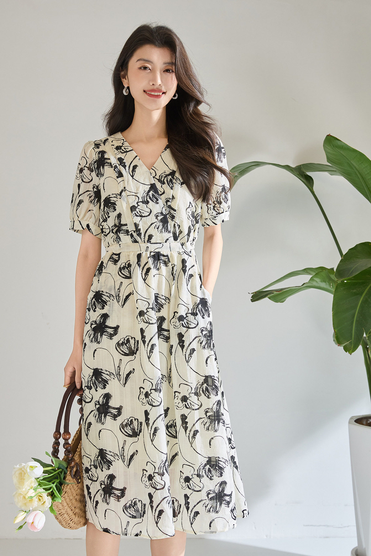 「高货wl」全新升级【铂金会员247/天猫329/差价82】(11841)洛诗琳复古国风水墨印花连衣裙2026新款气质显瘦中长裙