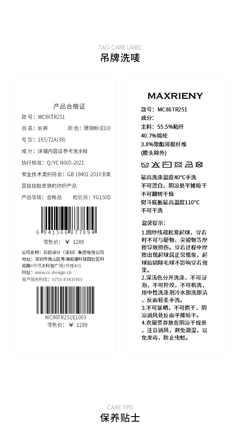 【商场同款】MAXRIENY日常松弛微喇毛针织长裤拖地裤女高级气质(货号:MC86TR251)