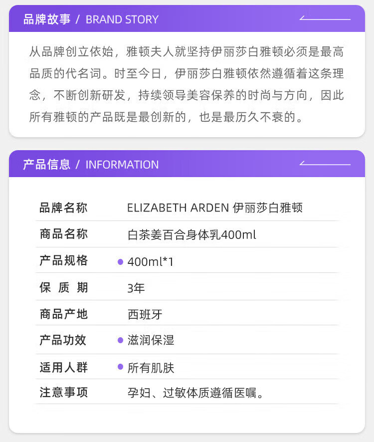 伊丽莎白雅顿白茶身体乳400ml+白茶香水30ml礼盒