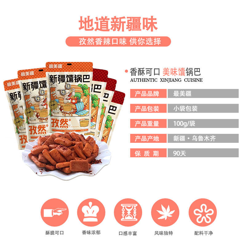 最美疆·香辣孜然馕锅巴100g新疆炒馕条网红零食烤馕条 规格口味任选