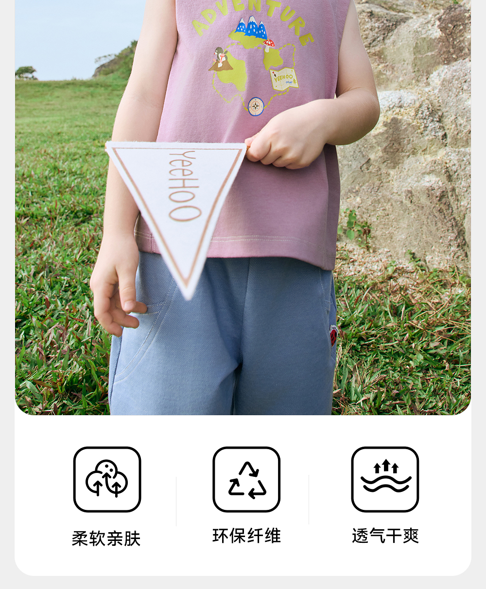 英氏儿童背心夏季透气休闲上衣男童女童背心2025新款