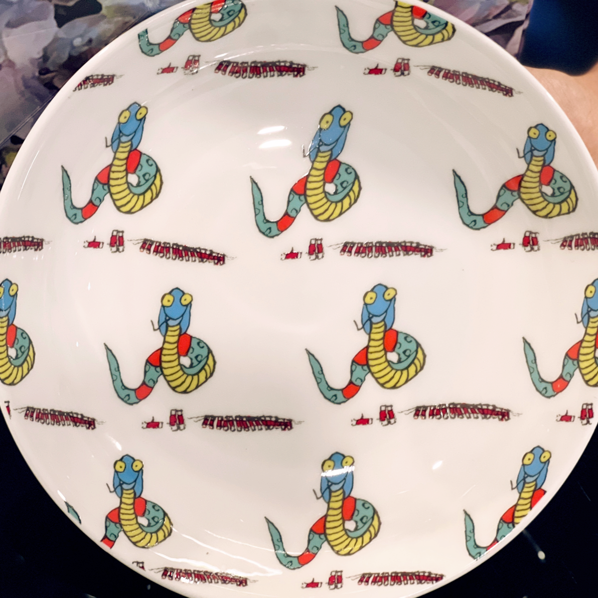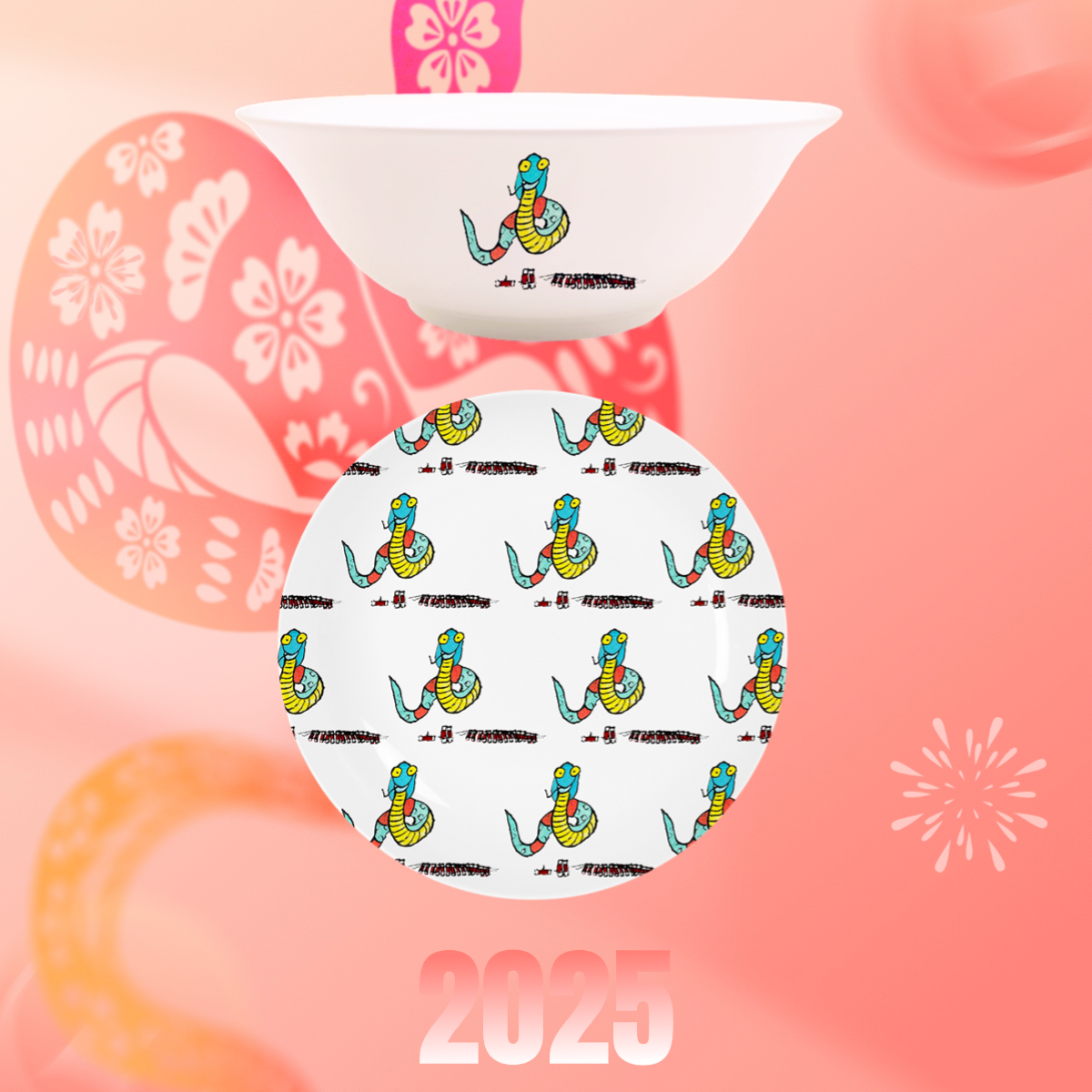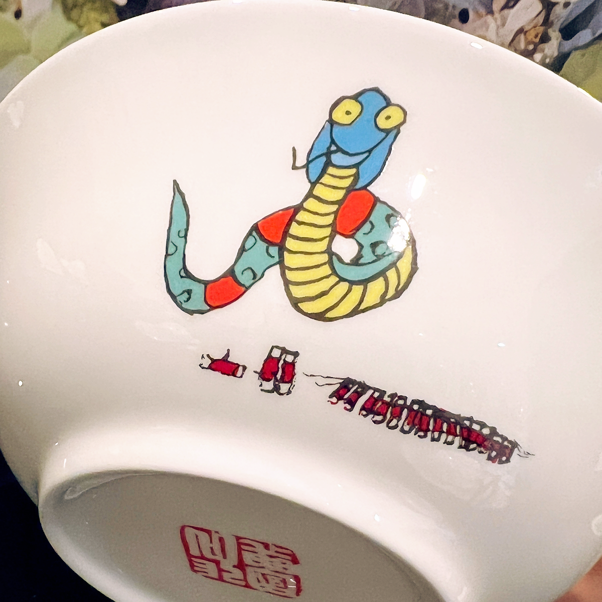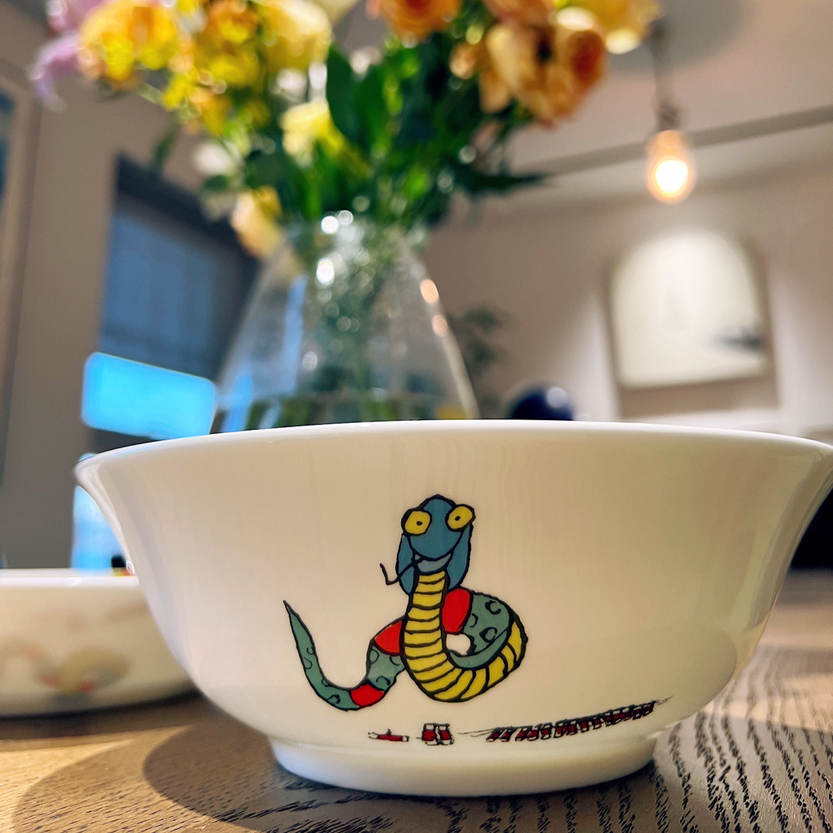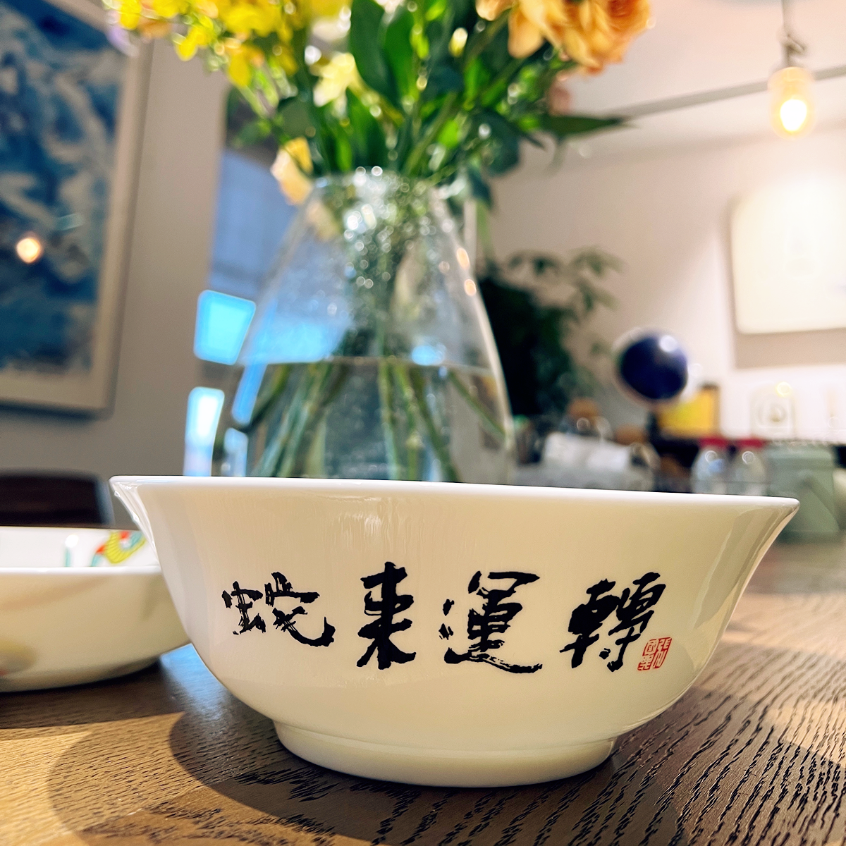 我们将张国兴先生的“蛇来运转”图与景德镇陶瓷一起烧制,限量发行“蛇年转运碗”和“蛇年转运盘”。