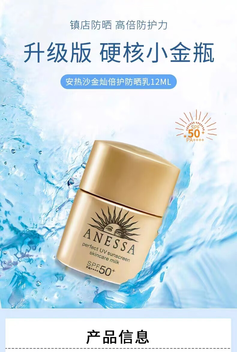 【旅行热卖】安热沙(Anessa)小金瓶金灿倍护防晒乳12ml/瓶小样
