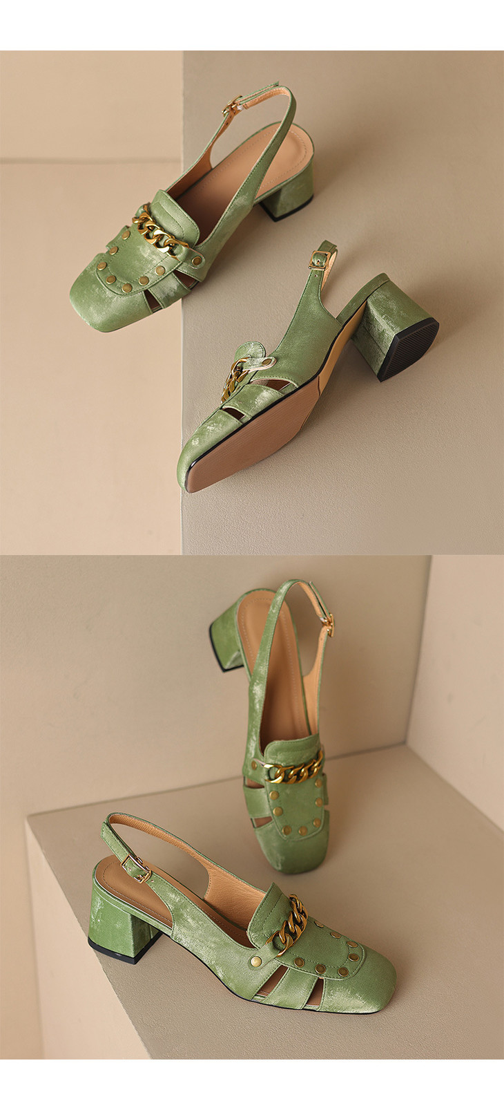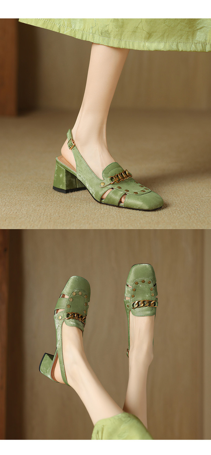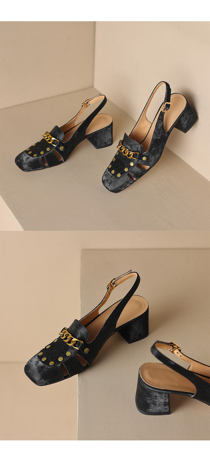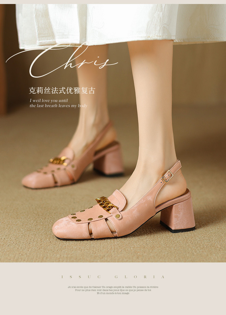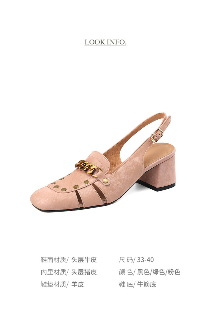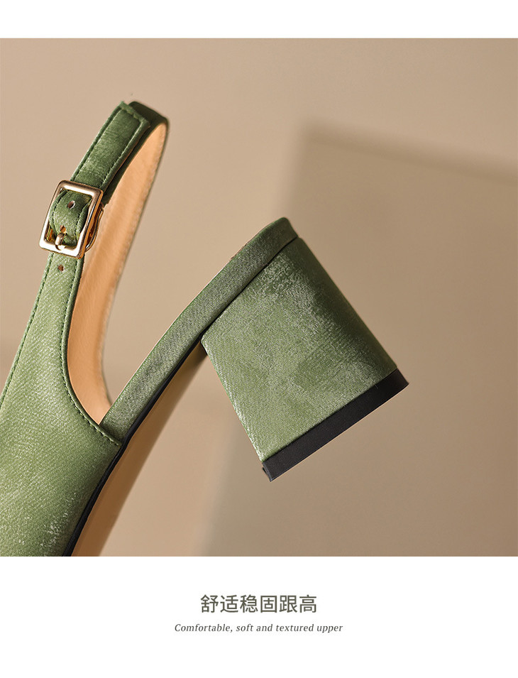 【预售5天】包头凉鞋新款粗跟百搭后空单鞋尖头浅口高跟鞋法式鞋子