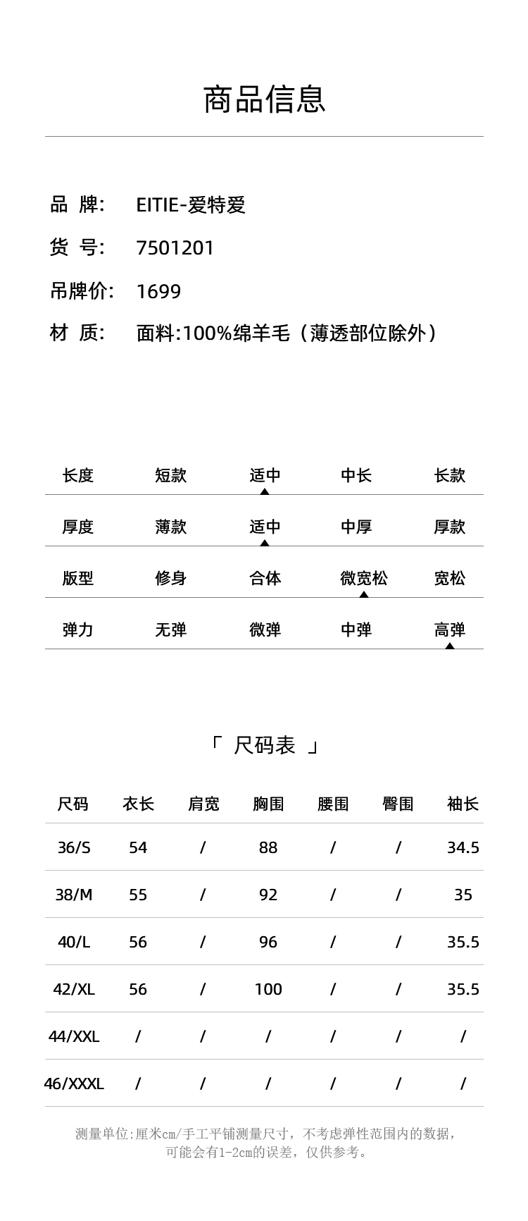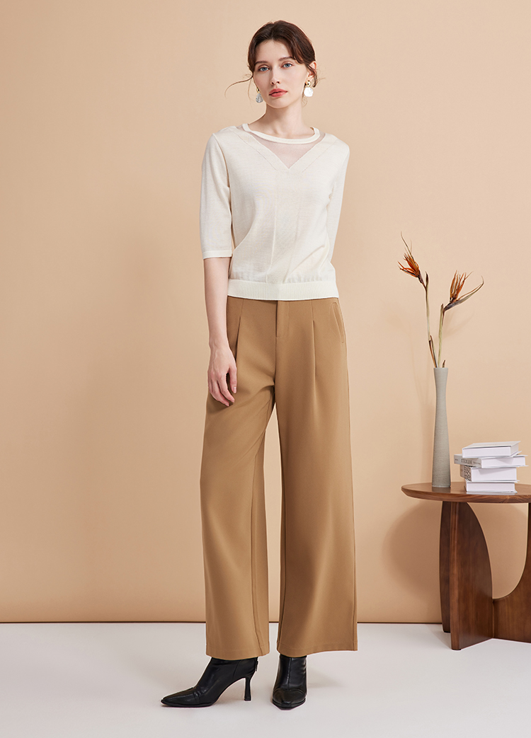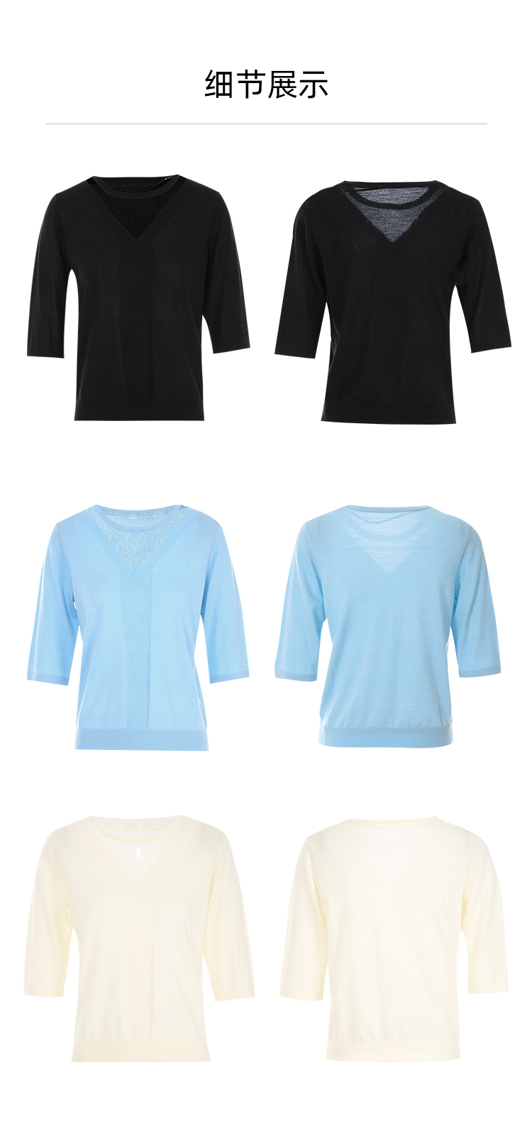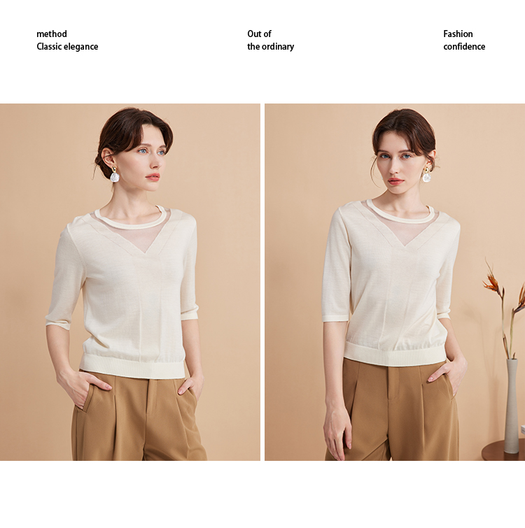 EITIE爱特爱秋季新款网纱拼接黑色修身显瘦百搭针织衫7501201