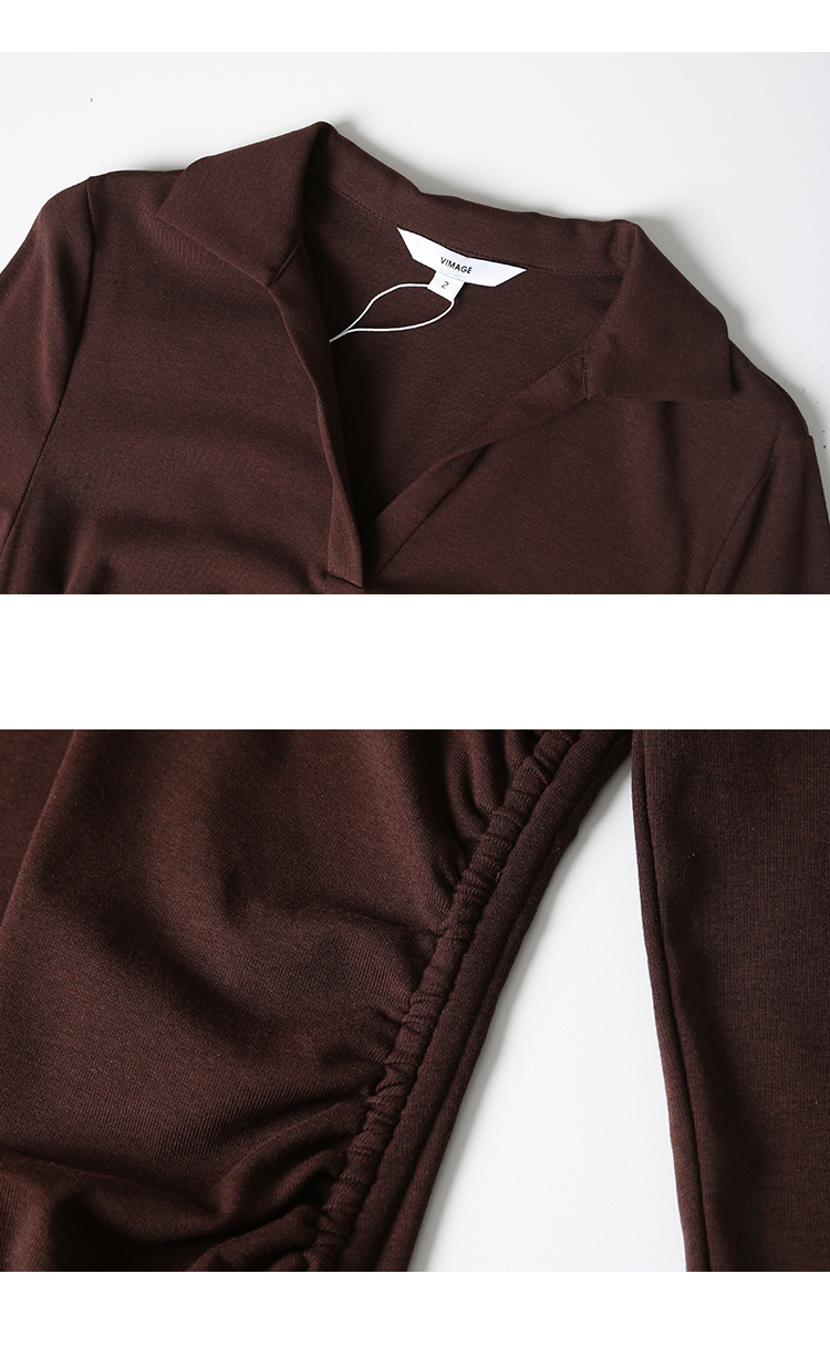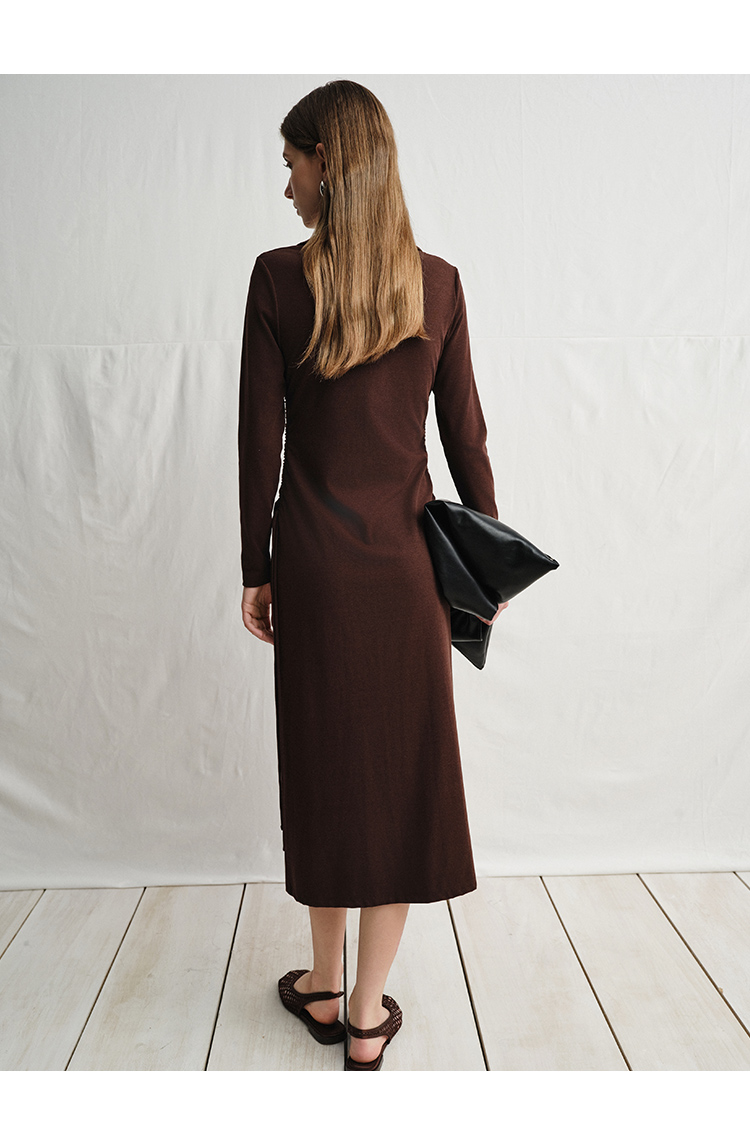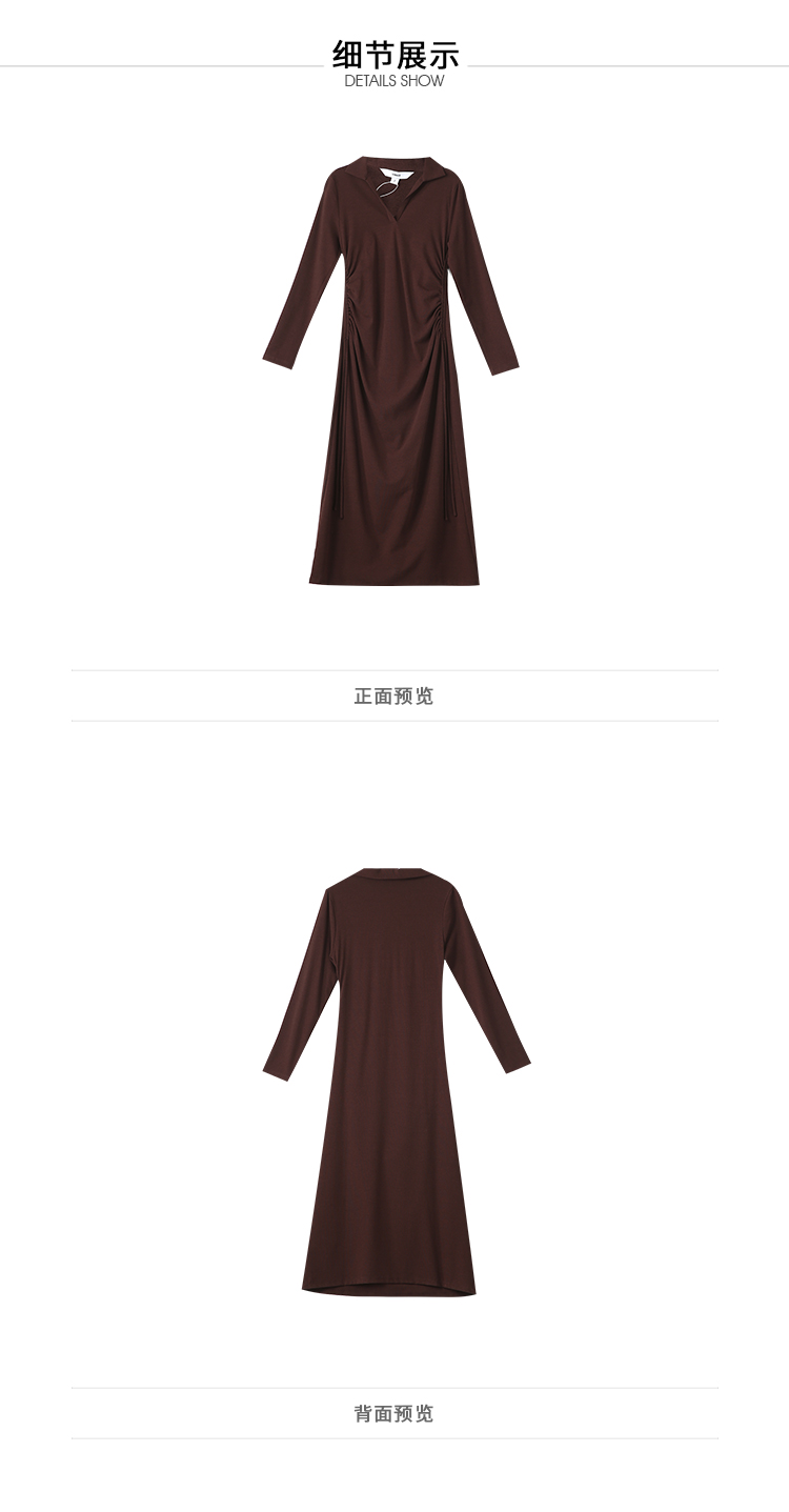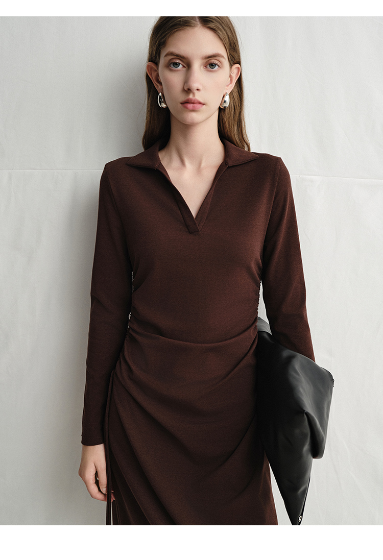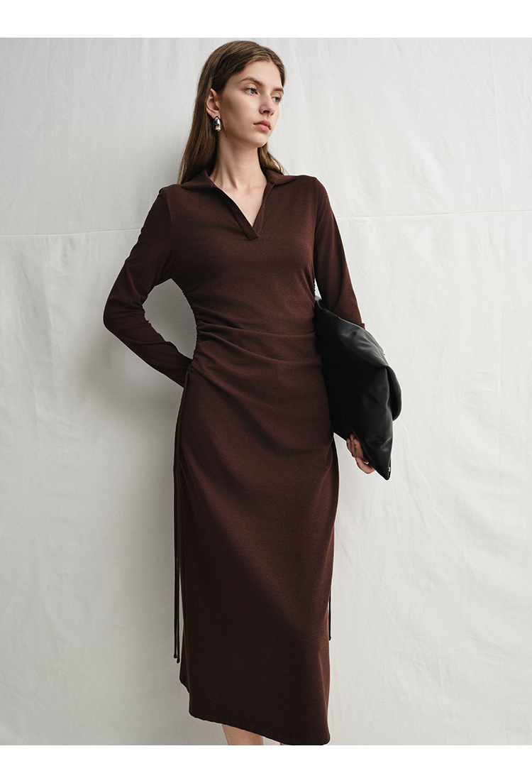 VIMAGE纬漫纪气质女神垂坠修身高腰显瘦深卡其连衣裙2025春季新款V2307920