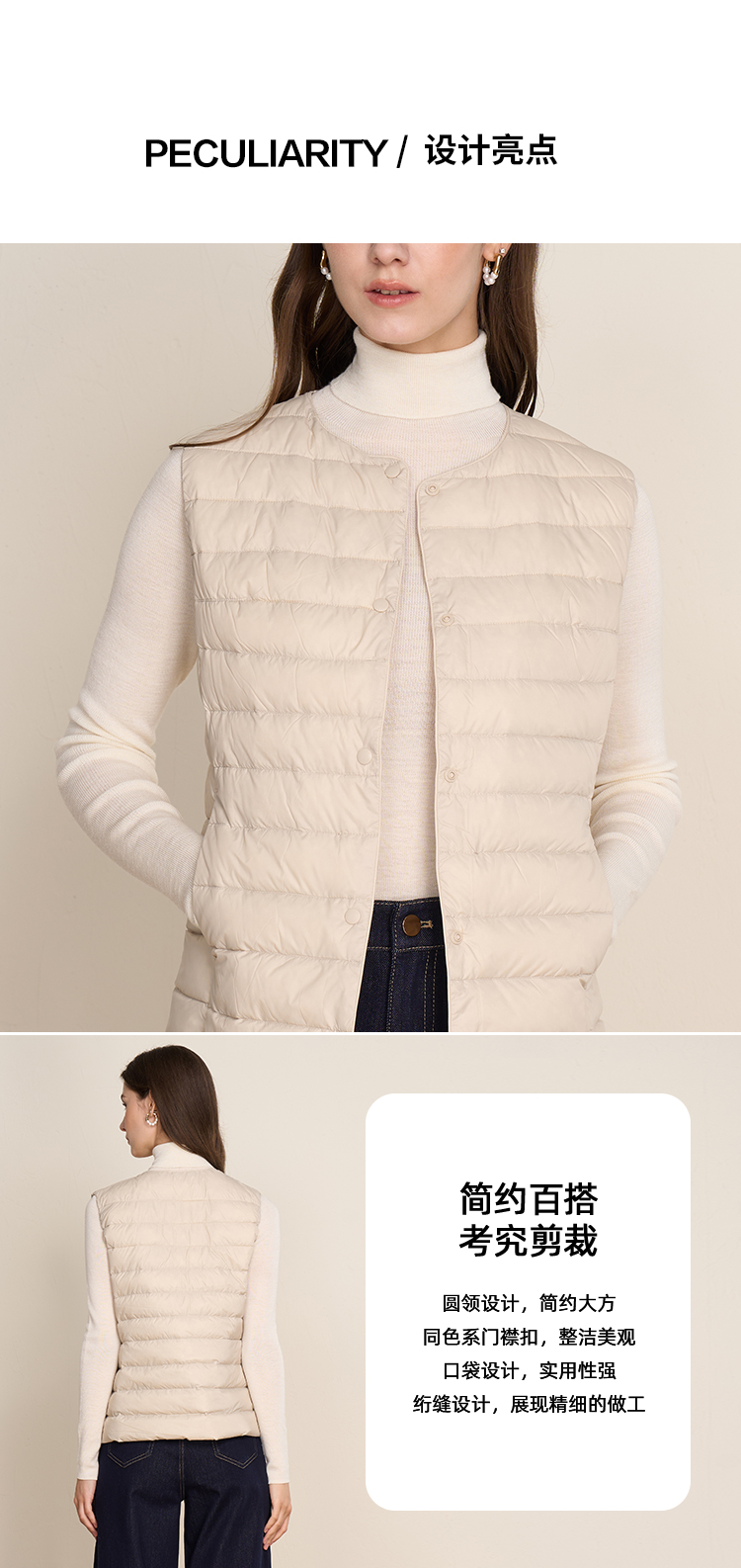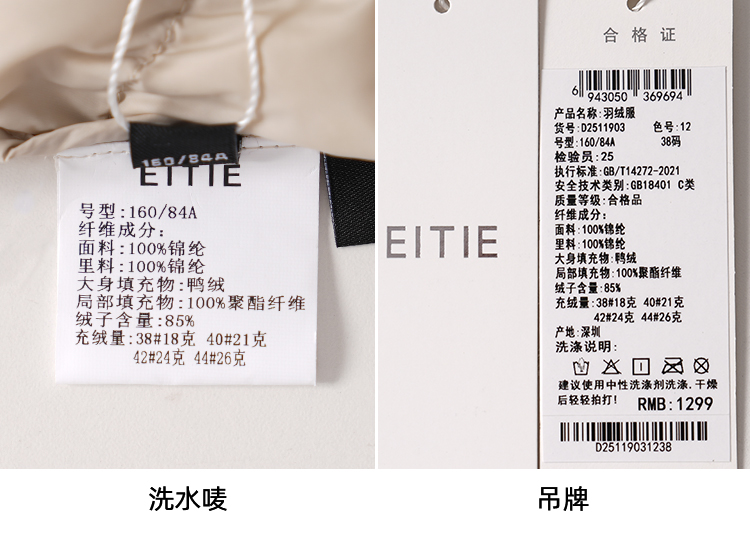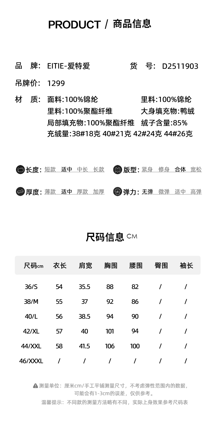 EITIE爱特爱舒适柔软打底贴身保暖内胆马夹短款羽绒服冬新款D2511903