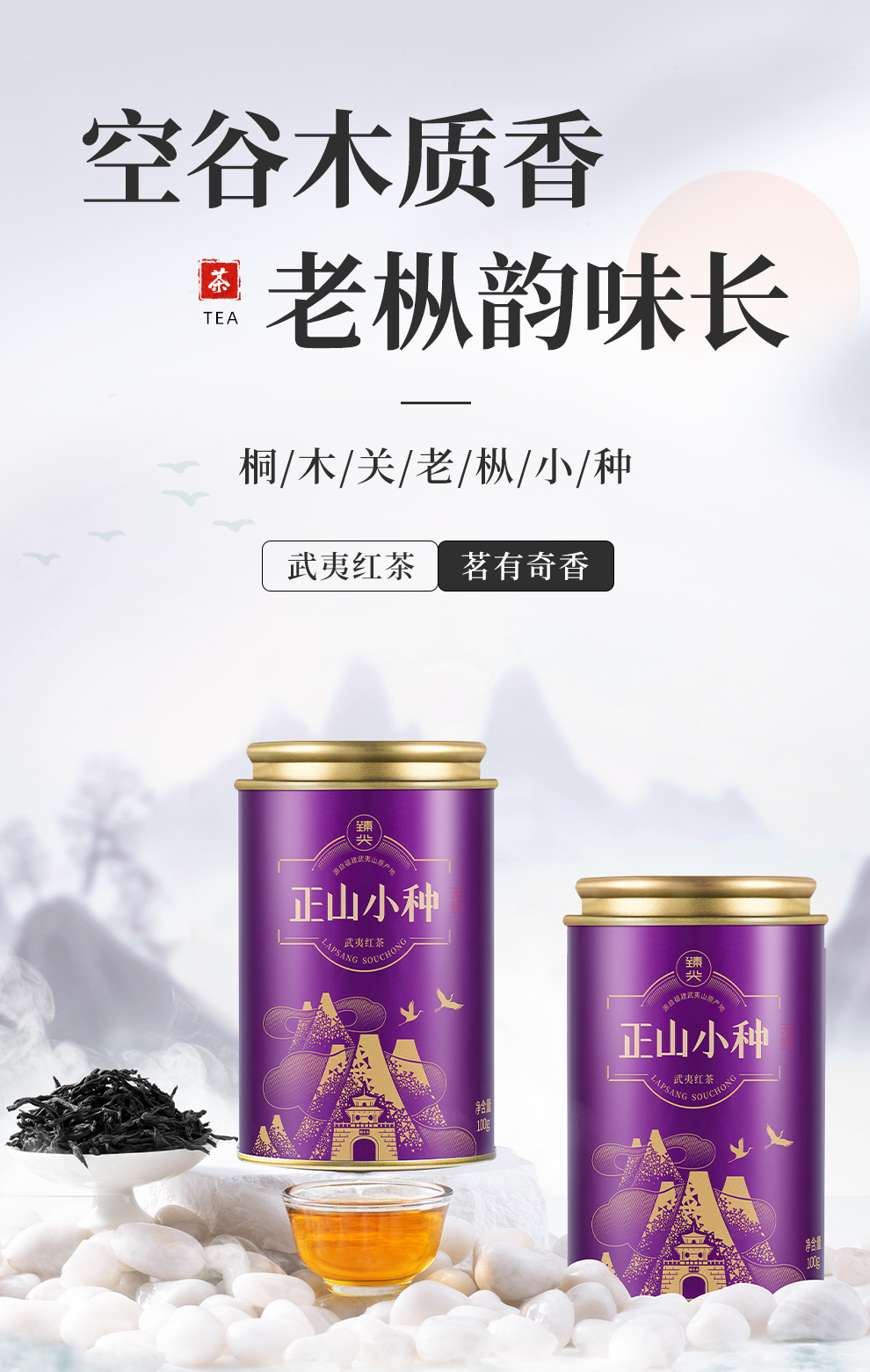 【臻尖-正山小种大成】特级桐木关红茶老枞茶叶自己喝100g*2罐